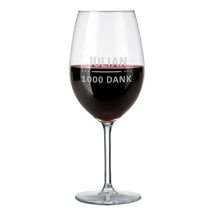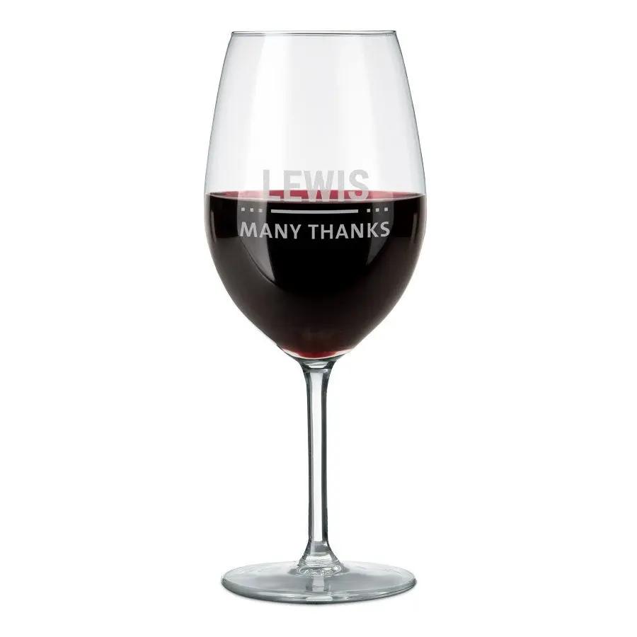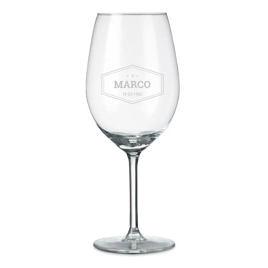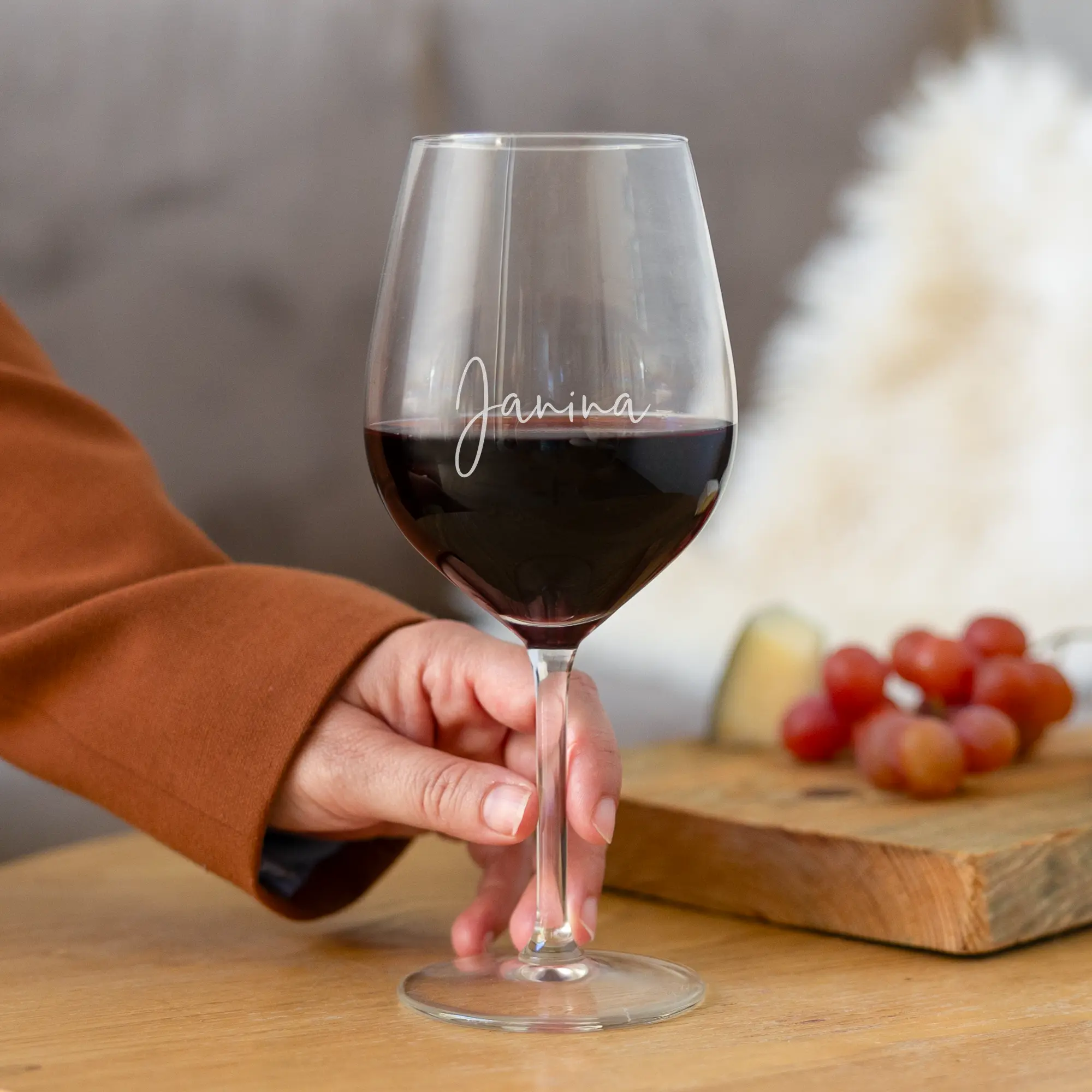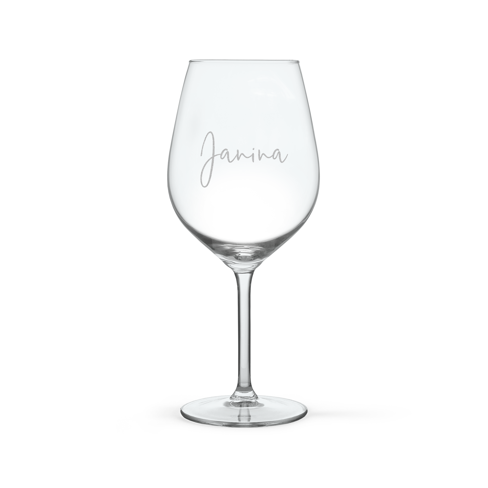 Beautiful wine glasses engraved with your own text or name.Additional information:Brand: Royal Leerdam Type: L'Esprit Engravement: white, the end-result may differ from the image shown Glass Diameter: 9cm Glass Height: 22cm Weight: 180 gram Volume: 53cl Wine: red Personalisation: name or textPersonalisation method: high quality laser engravingExtra: Dishwasher safeDo you want to engrave a logo on a glass, or order 18 or more glasses? Please contact our fantastic B2B team