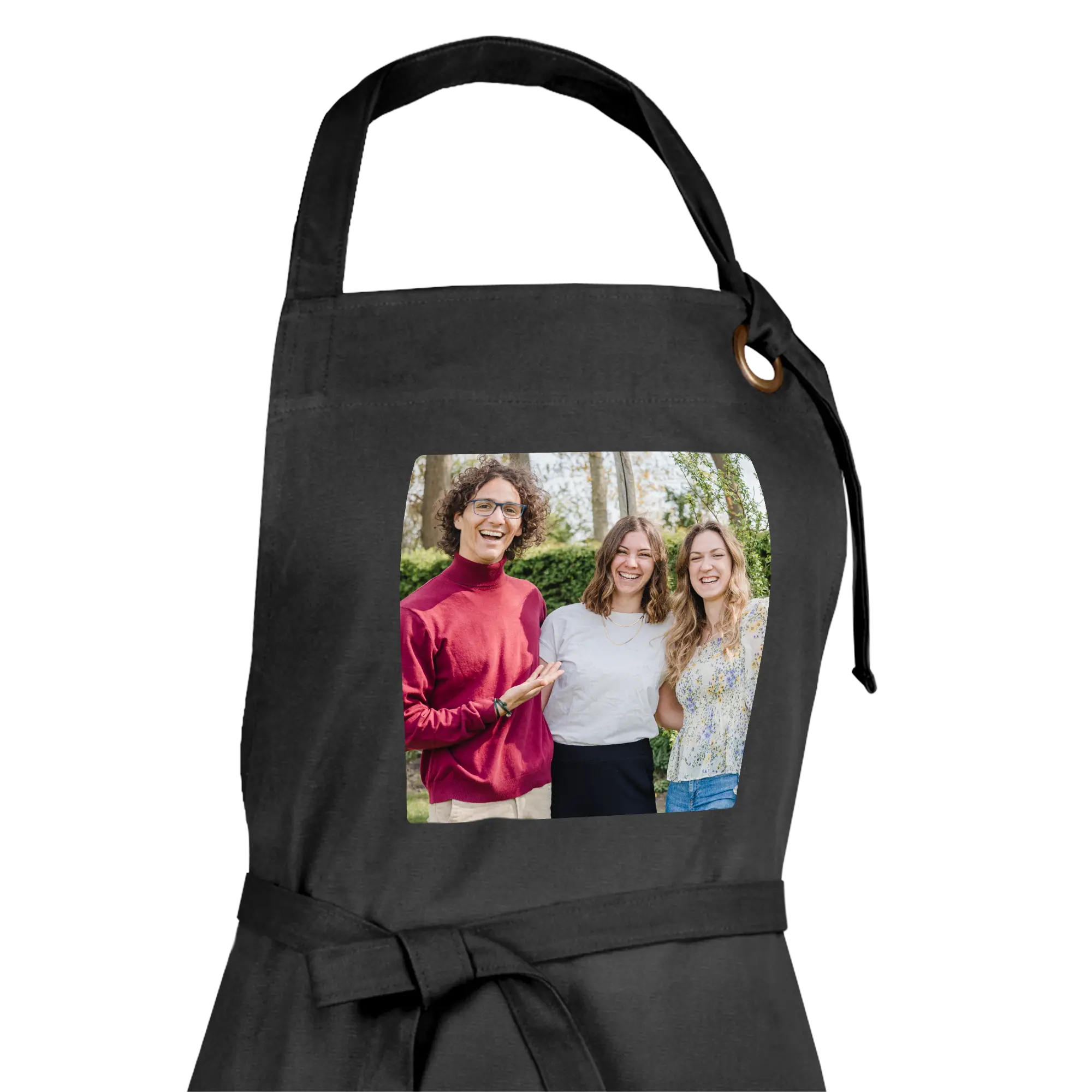 A great BBQ apron with your own photo and text! Give the barbecue chef a unique apron!More information on the personalised BBQ apron:Colour: blackMaterial: 100% cottonDimensions: 80 x 70 cmPersonalisation: with photo and/or textPrint: 20 x 20 cm, full colour in HD qualityExtra: a little mess is allowed! The apron can be washed at 40°C