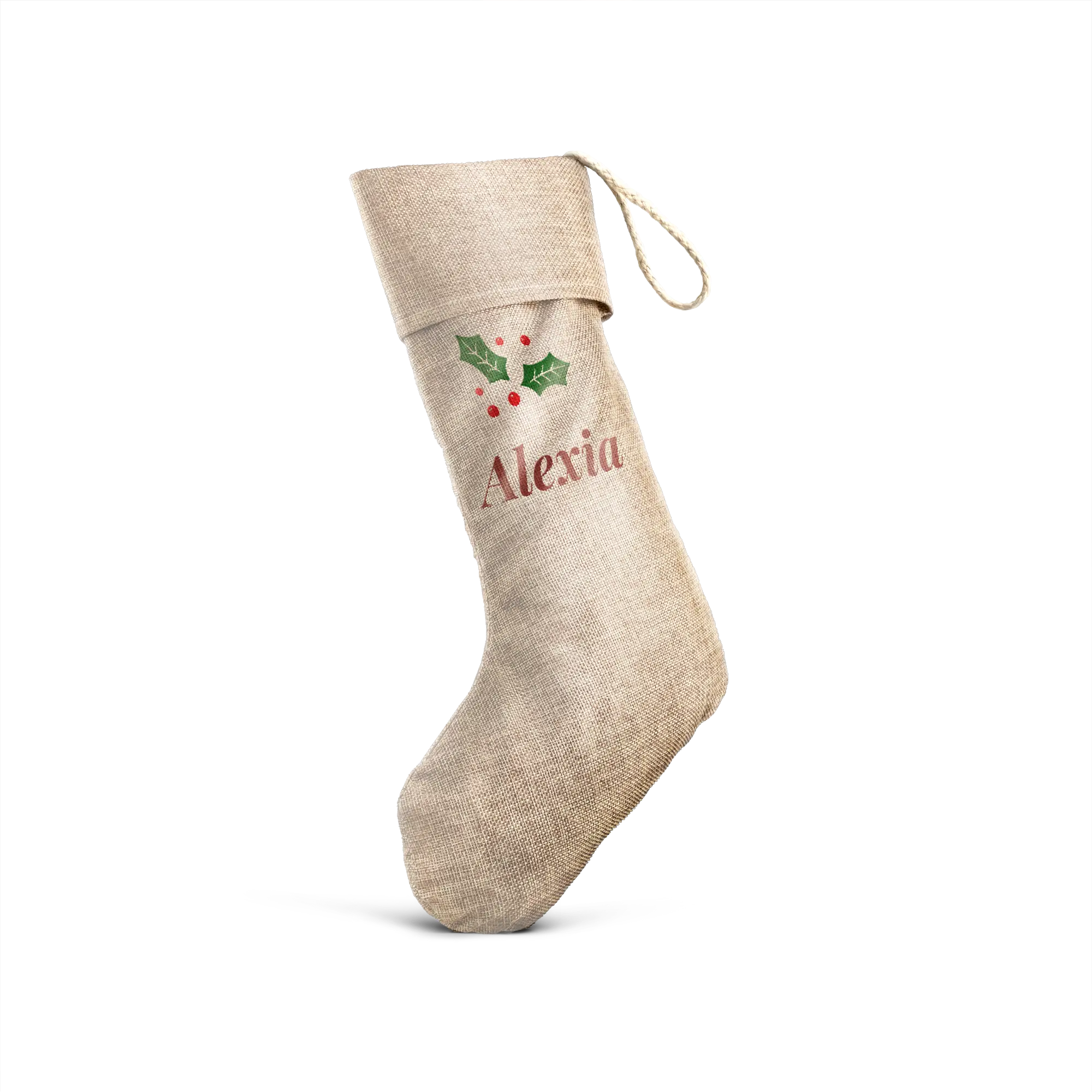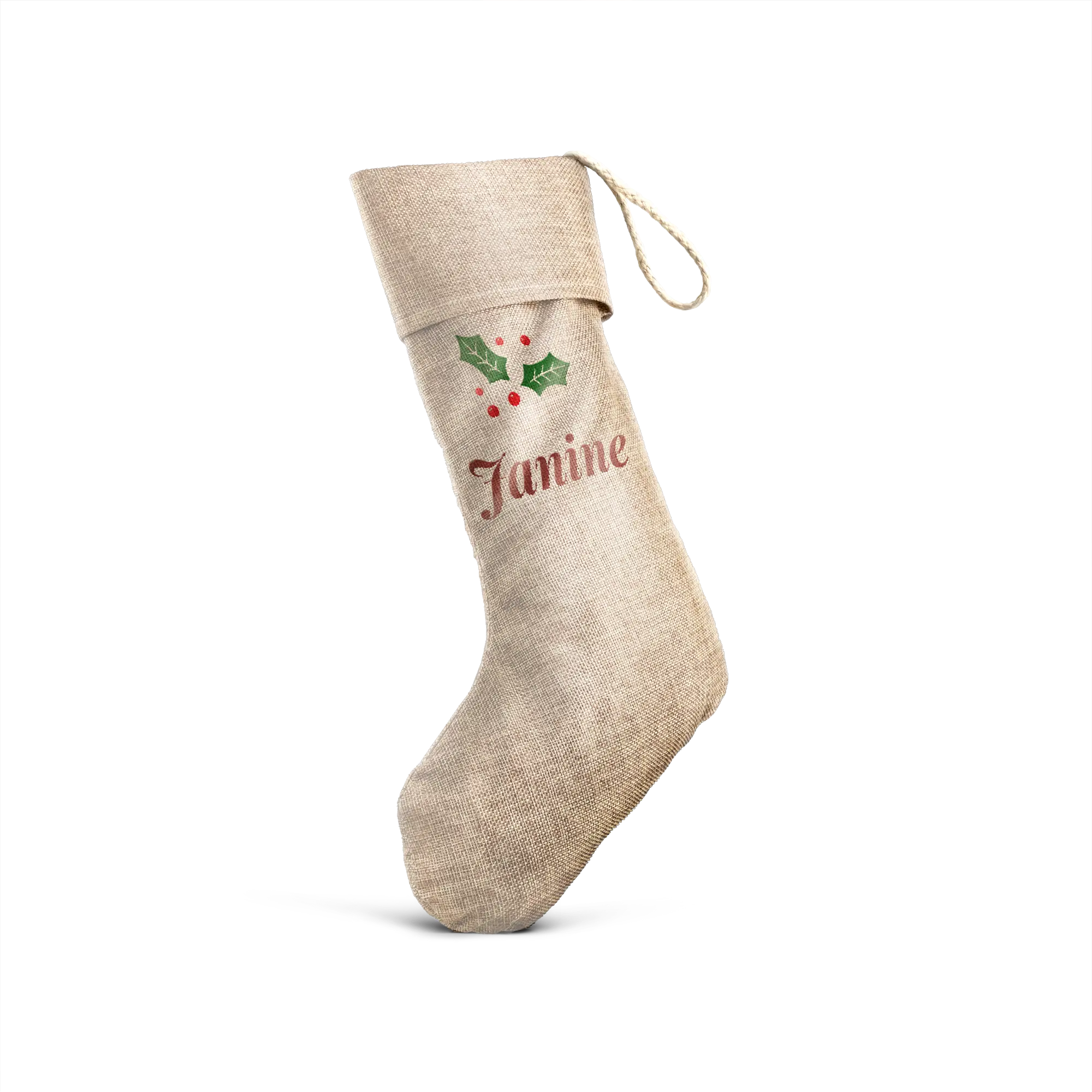 Christmas isn't Christmas without a fun personalised Christmas stocking featuring the name or text of your choice. Ho ho ho!More information on the Christmas stocking:Material: burlap with a polyester liningLength: 44 cmWidth: 17 cmFoot length: 27 cmPrint: picture perfect and in full colourPersonalisation: with name or text