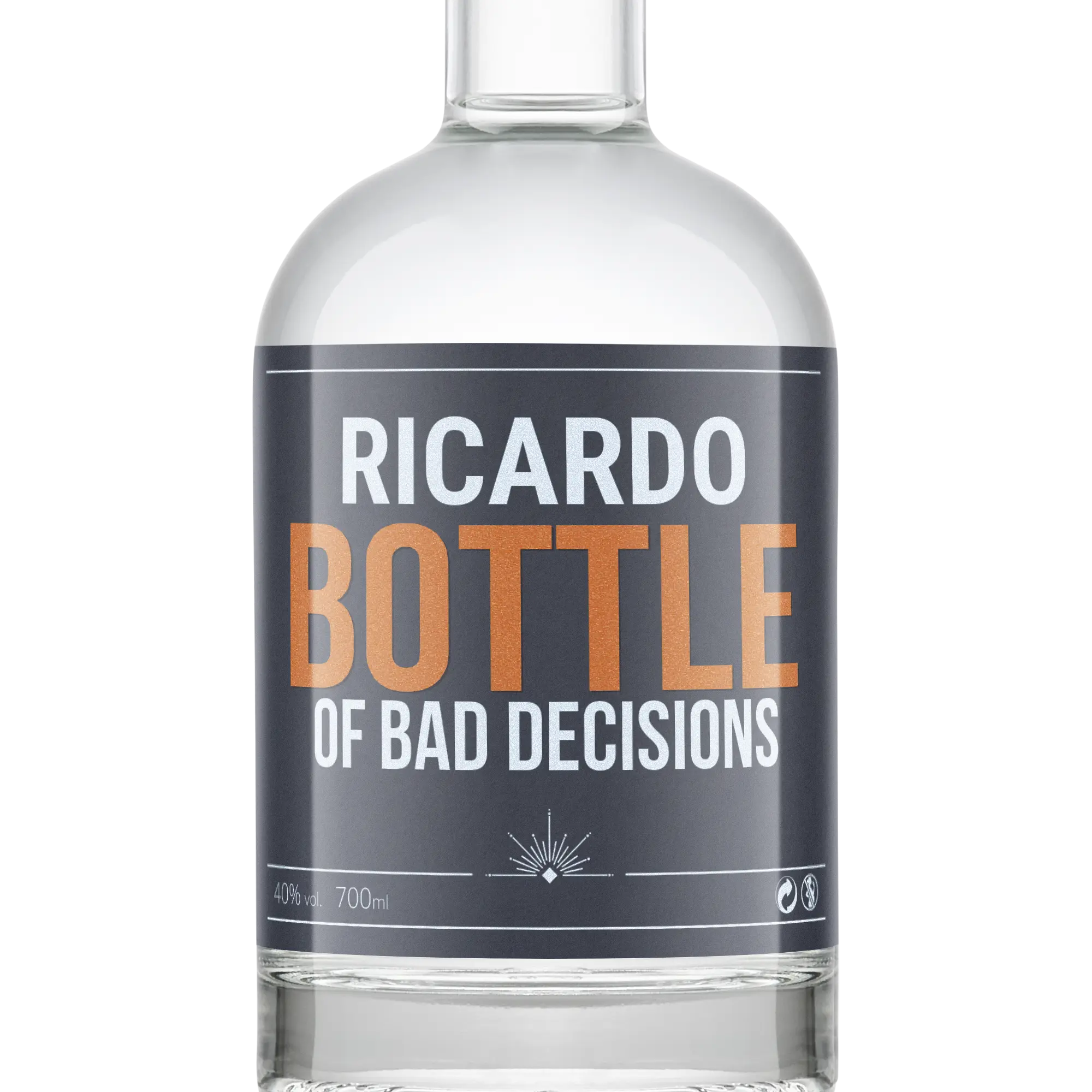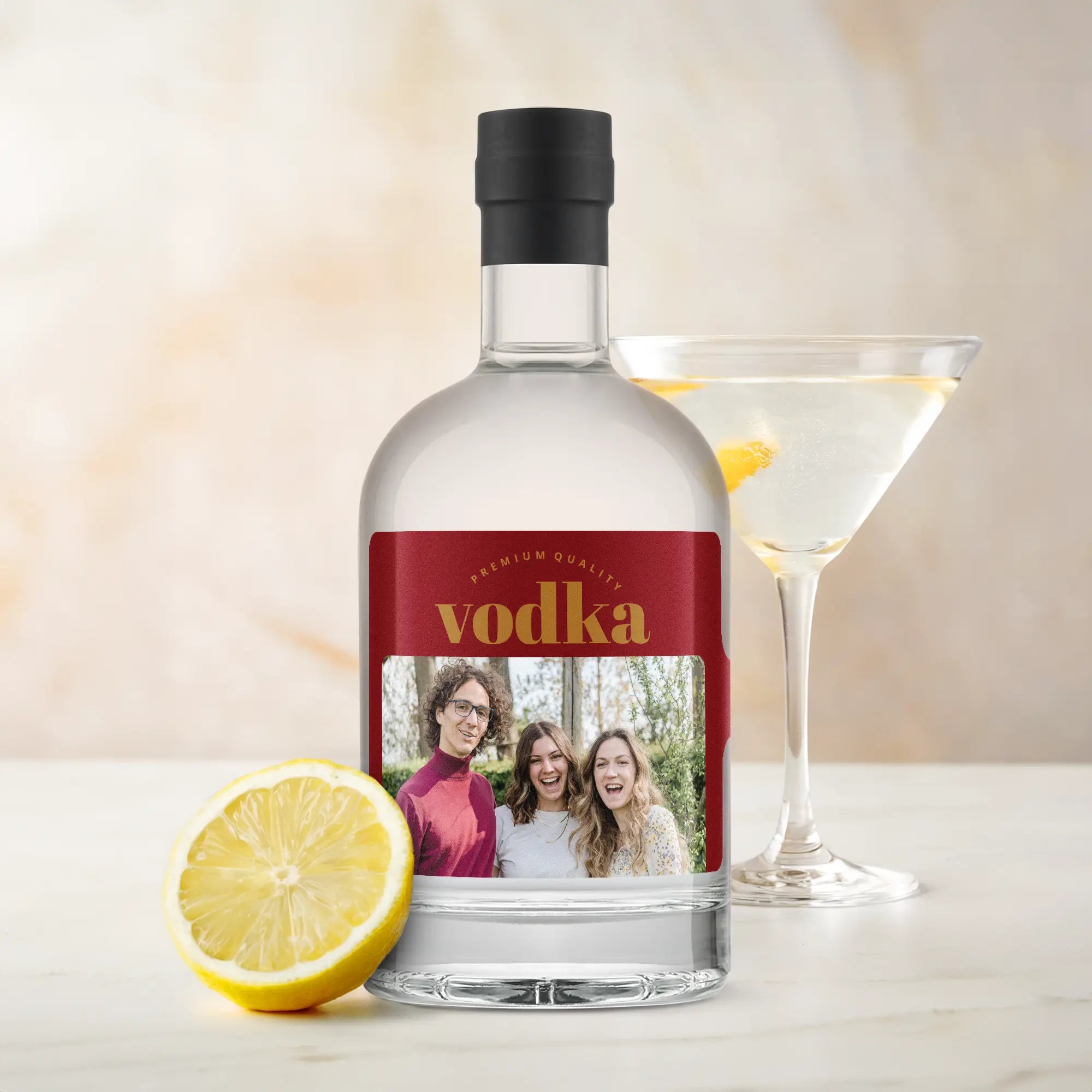 YourSurprise own brand vodka with printed label. Your personal design with photo, name, logo or collage. For true vodka-lovers!More information on the personalised label:Personalisation: with photo, name, collage or logoPersonalisation placement: fully printed labelPrint: razor-sharp and in the most beautiful coloursLabel dimensions: 14 x 9 cmMore information on the vodka:Brand: YourSurpriseContents: 700 mlAlcohol percentage: 40%Country of origin: The NetherlandsCharacter: YourSurprise vodka is a premium small batch vodka. Silky smooth and perfect on its own. Also delicious with ice or as a mixer.