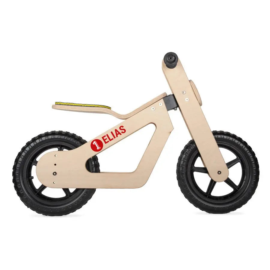 Wooden balance bike with name. Unique children’s gift. High-quality beech with shiny sticker. The perfect gift for real racers!