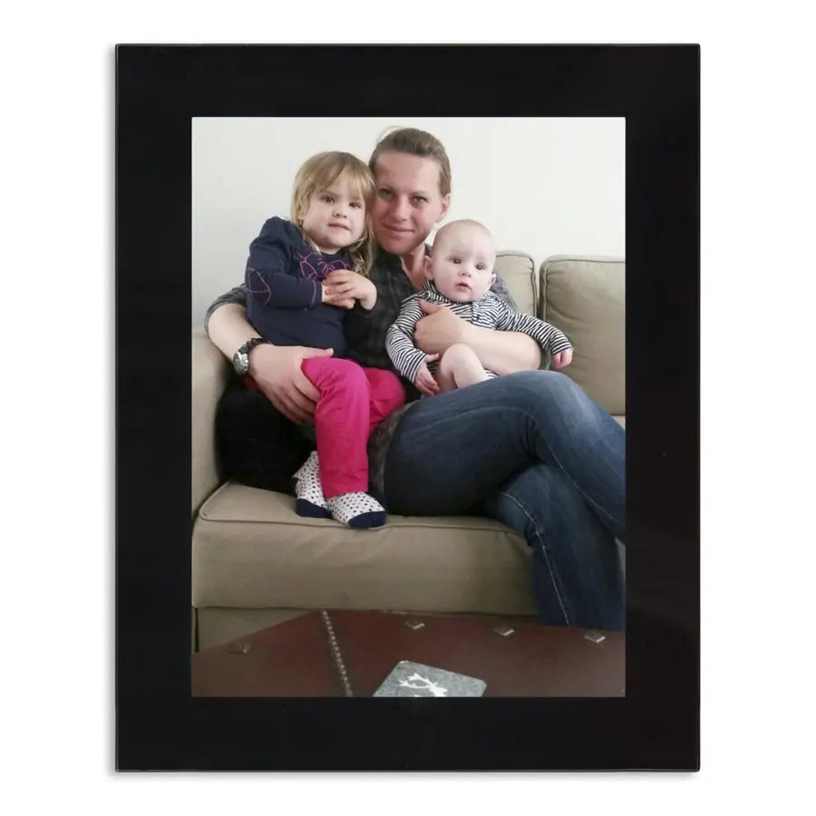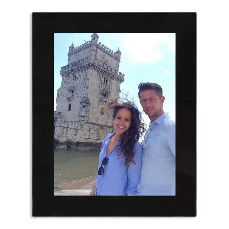 Keep reliving the best moments with a luxurious glass photo frame. Premium glass with a chic black frame and a handy mounting system!More information on the glass photo frames with a photo: Material: premium glass with a black frameDimensions: 13 x 18 cm Thickness: 7 mm Print: picture perfect full colour photo printMounting system: interchangeable synthetic mounting block Extra: you can easily clean your photo frame with a dry cloth and glass cleaner