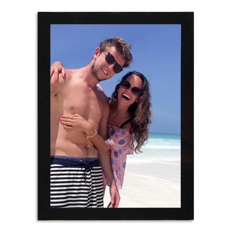 Keep reliving the best moments with a luxurious glass photo frame. Premium glass with a chic black frame and a handy mounting system!More information on the glass photo frames with a photo: Material: premium glass with a black frameDimensions: 30 x 40 cm Thickness: 7 mm Print: picture perfect full colour photo printMounting system: interchangeable synthetic mounting block Extra: you can easily clean your photo frame with a dry cloth and glass cleaner