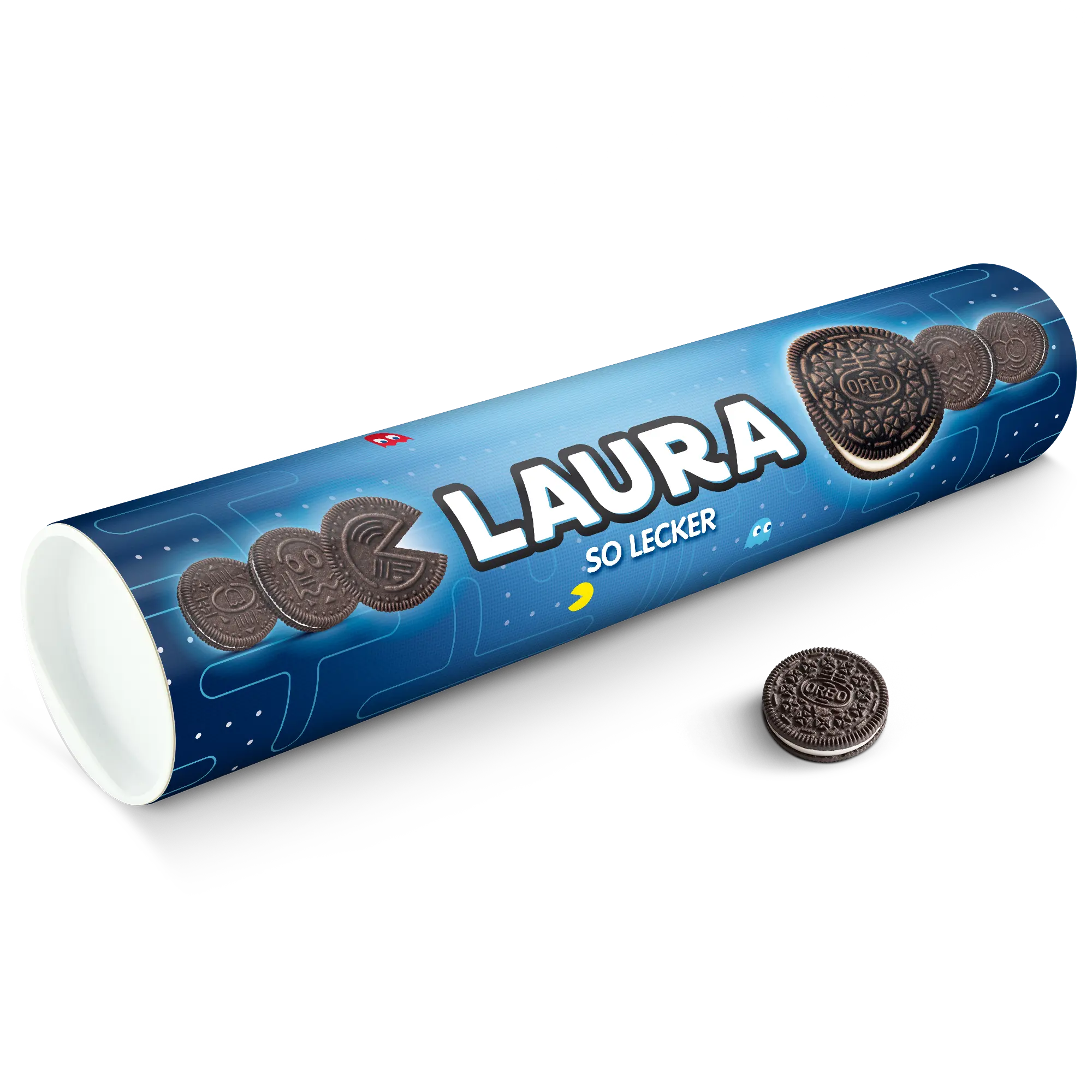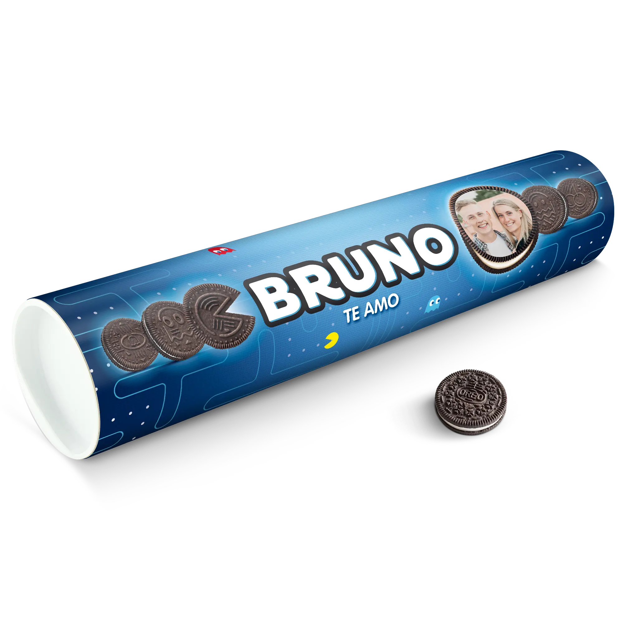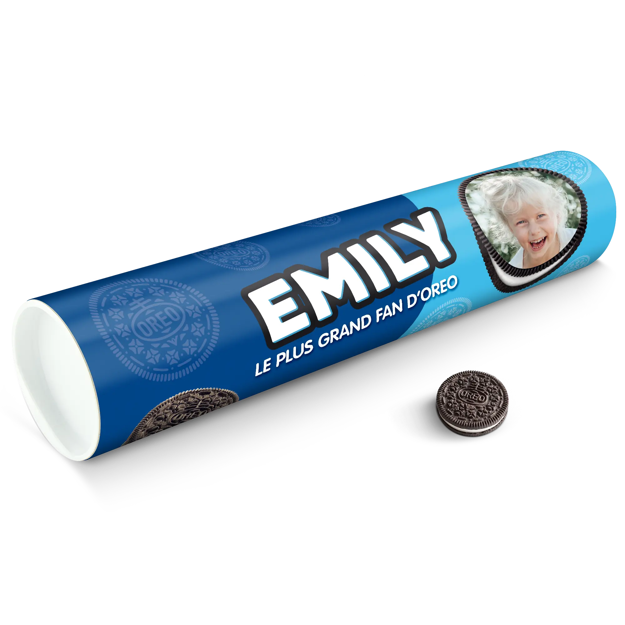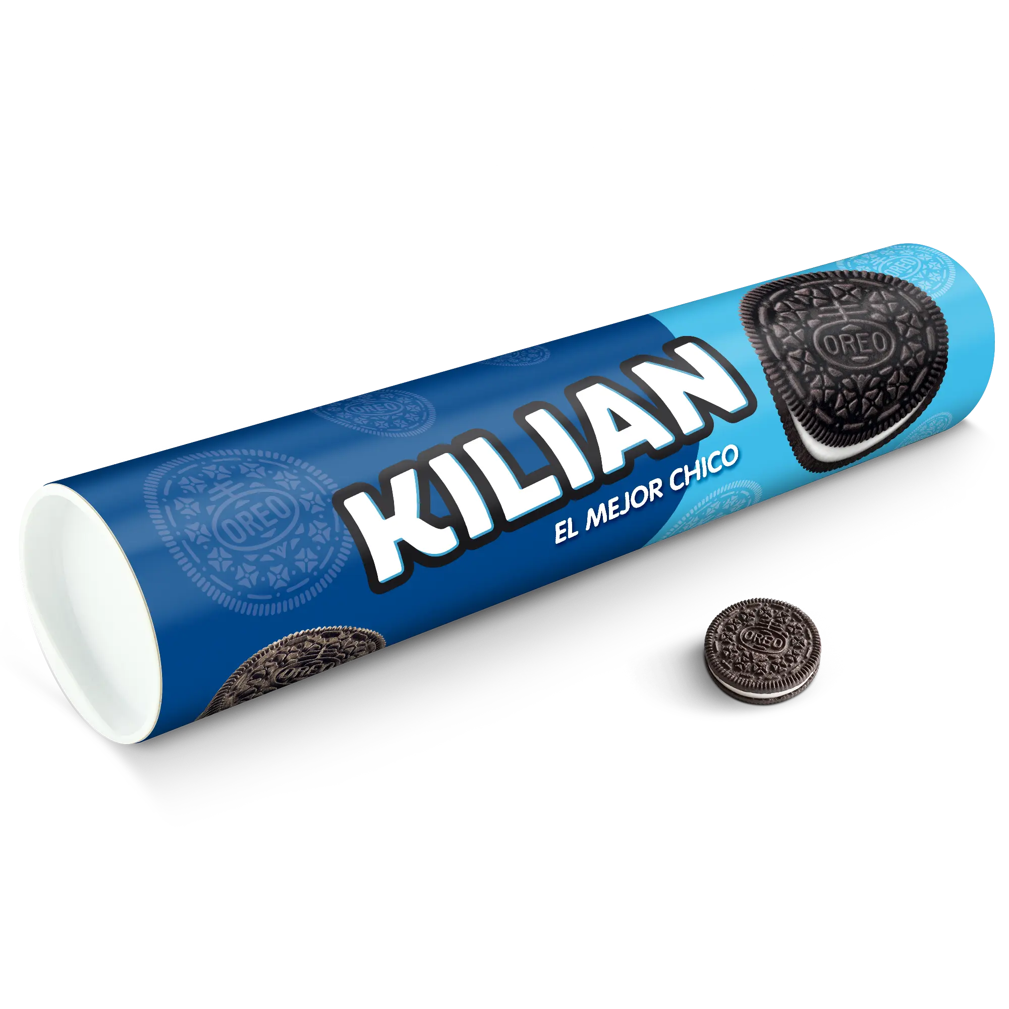 Personalised XXL Oreo Gift Tube featuring your photo, name & personal message. Full of delicious Oreo cookies!More information on the XXL Oreo Gift Tube:Number of packets included: 6 packets of Oreo Original (14 cookies in each packet)Tube dimensions: 38.2 x 10.4 cmWeight: 1000 gramsPersonalisation: photo, name and/or personal messagePrint: picture-perfect and in full colourCHOCOLATE FLAVOUR SANDWICH BISCUITS WITH A VANILLA FLAVOUR FILLING (29%). Ingredients: wheat flour, sugar, palm oil, rapeseed oil, fat reduced cocoa powder 4,3%, wheat starch, glucose-fructose syrup, raising agents (ammonium carbonates, potassium carbonates, sodium carbonates), salt, emulsifier (soy lecithin), acidity regulator (sodium hydroxide), flavouring.Allergen information:Contains soy, gluten-containing cereals, wheat. May contain traces of milk. Please note:For technical reasons, it is not possible to use Cyrillic, Asian, Greek or special characters.
