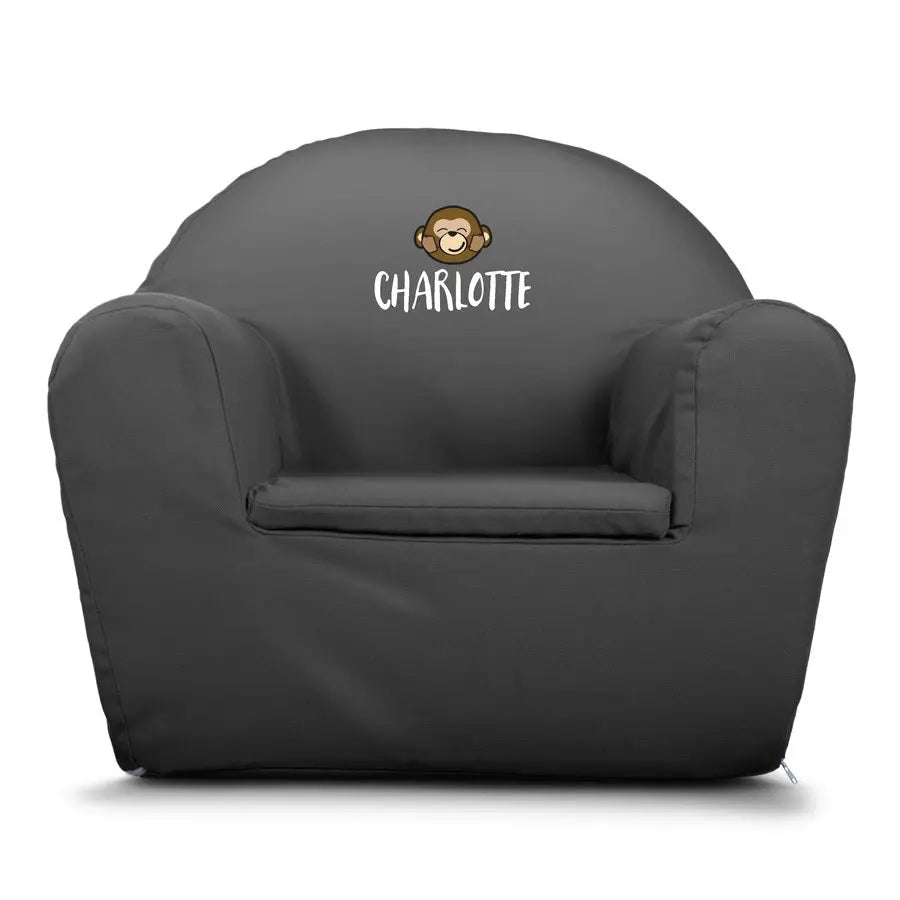 Have this lovely chair printed with your child's name or a nice text. The cover is easy to wash and keep clean. In various colours.More information on the personalised children’s chair: Colour: greyDimensions: 52 x 35 x 46 cm / 20.5” x 13.8” x 18.1”Seat height: 18 cm / 7.1”Seat width: 28 cm / 11”Material: 100% cotton, 230 gr/m2Filling: soft, squishy durable foam rubberAge: 1 - 5 yearsPersonalisation: with name or textWashing instructions:Either clean the chair with a damp cloth or remove the cover and wash at 30°C. Do not turn the cover inside-out.