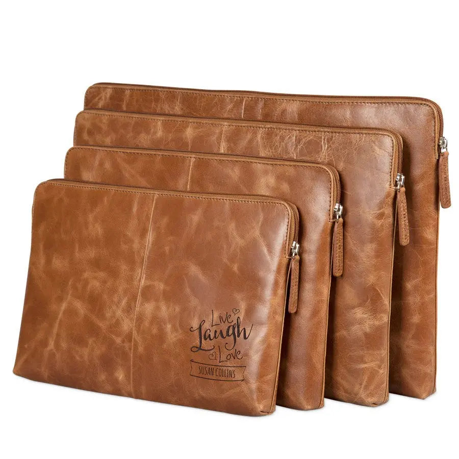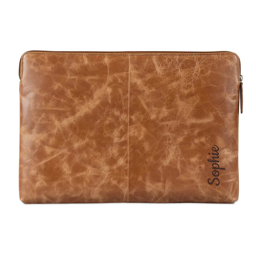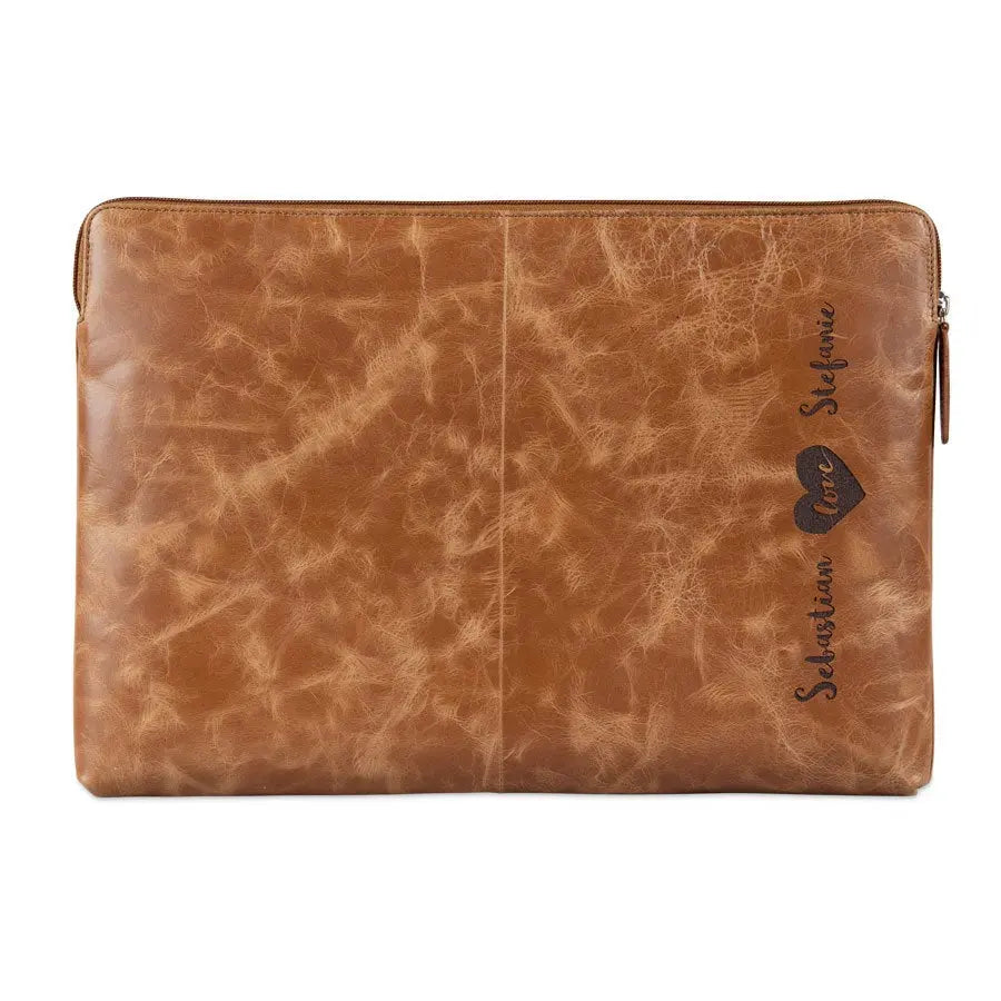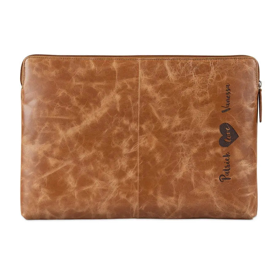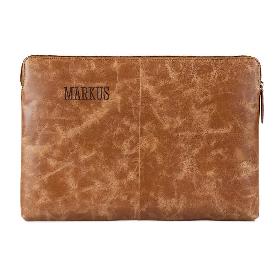 Protect your laptop in a luxury leather laptop sleeve. Unique and personalized with your name or text in a luxury engraving. The finest quality leather!