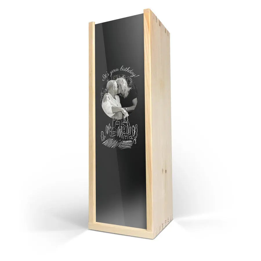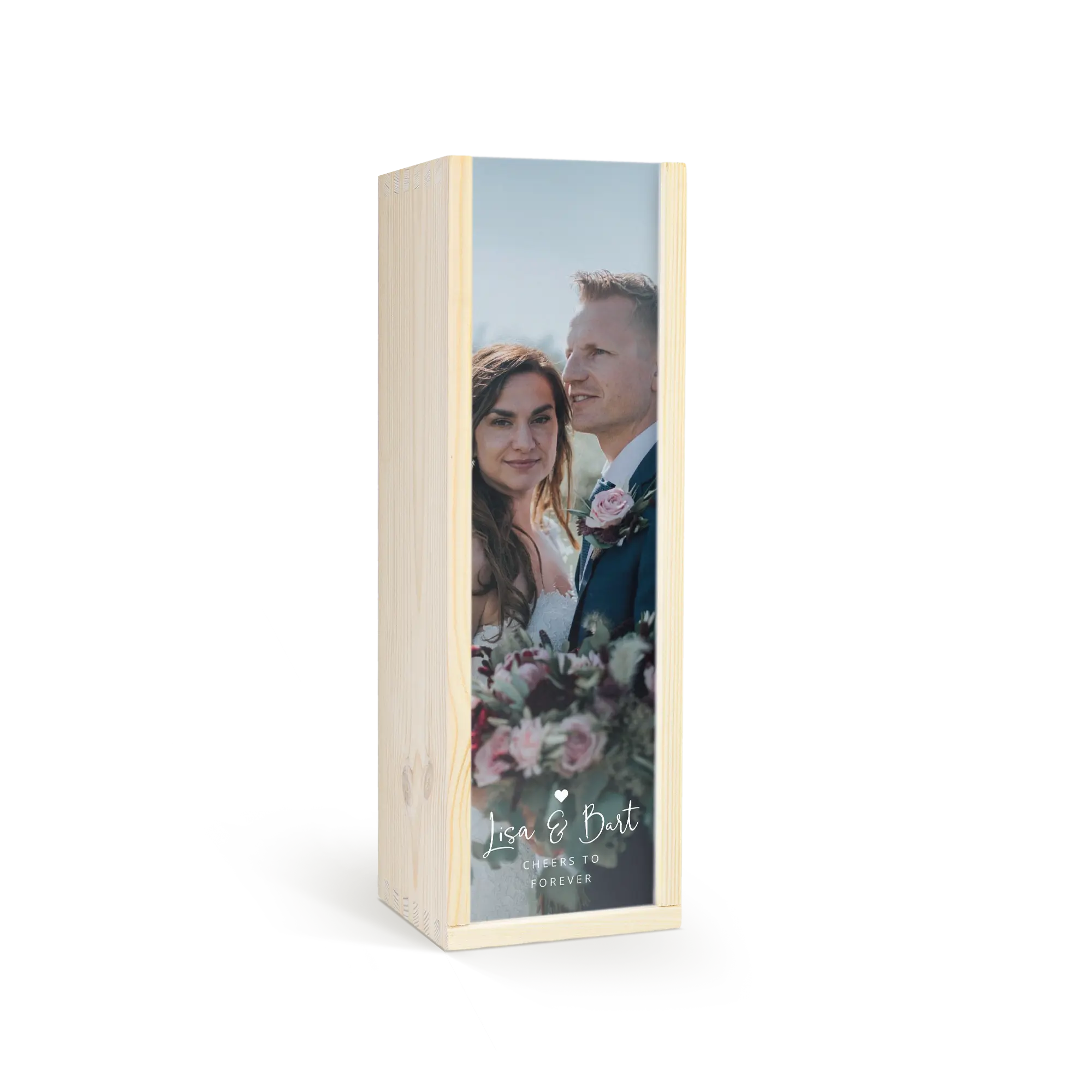 Delicious Maison de la Surprise wine in deluxe wooden case featuring the photo, logo and/or text of your choice. Create yours now!More information on the deluxe wooden case:Personalisation: with photo, text and/or logoPersonalisation placement: on wooden case lidPrint: picture-perfect and in full colourCase dimensions: 36.5 x 12 x 11 cmLid dimensions: 35.6 x 10.2 x 0.3 cmAdditional information: the deluxe wooden case is made with FSC-certified woodMore information on the wine:Brand: Maison de la SurpriseType: redContents: 750 mlCountry of origin: FranceGrape: MerlotCharacter: Maison de la Surprise Merlot has notes of dark fruit and a hint of vanilla. Pairs well with poultry and roasted meat.