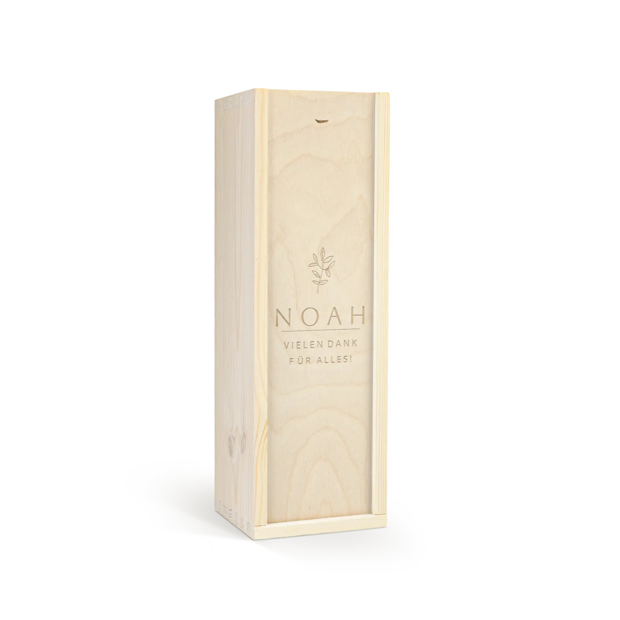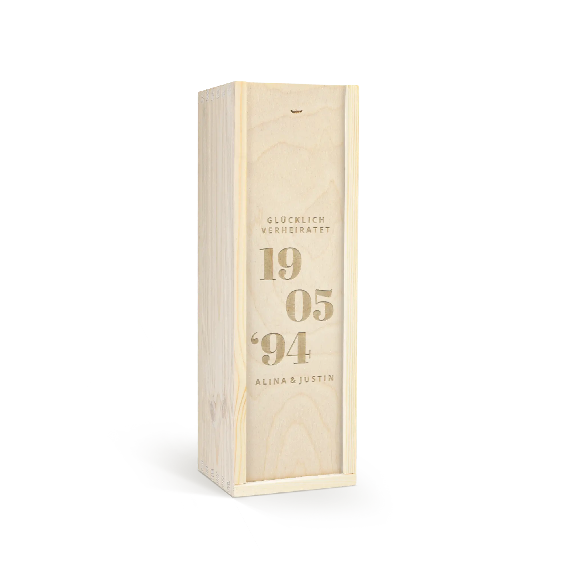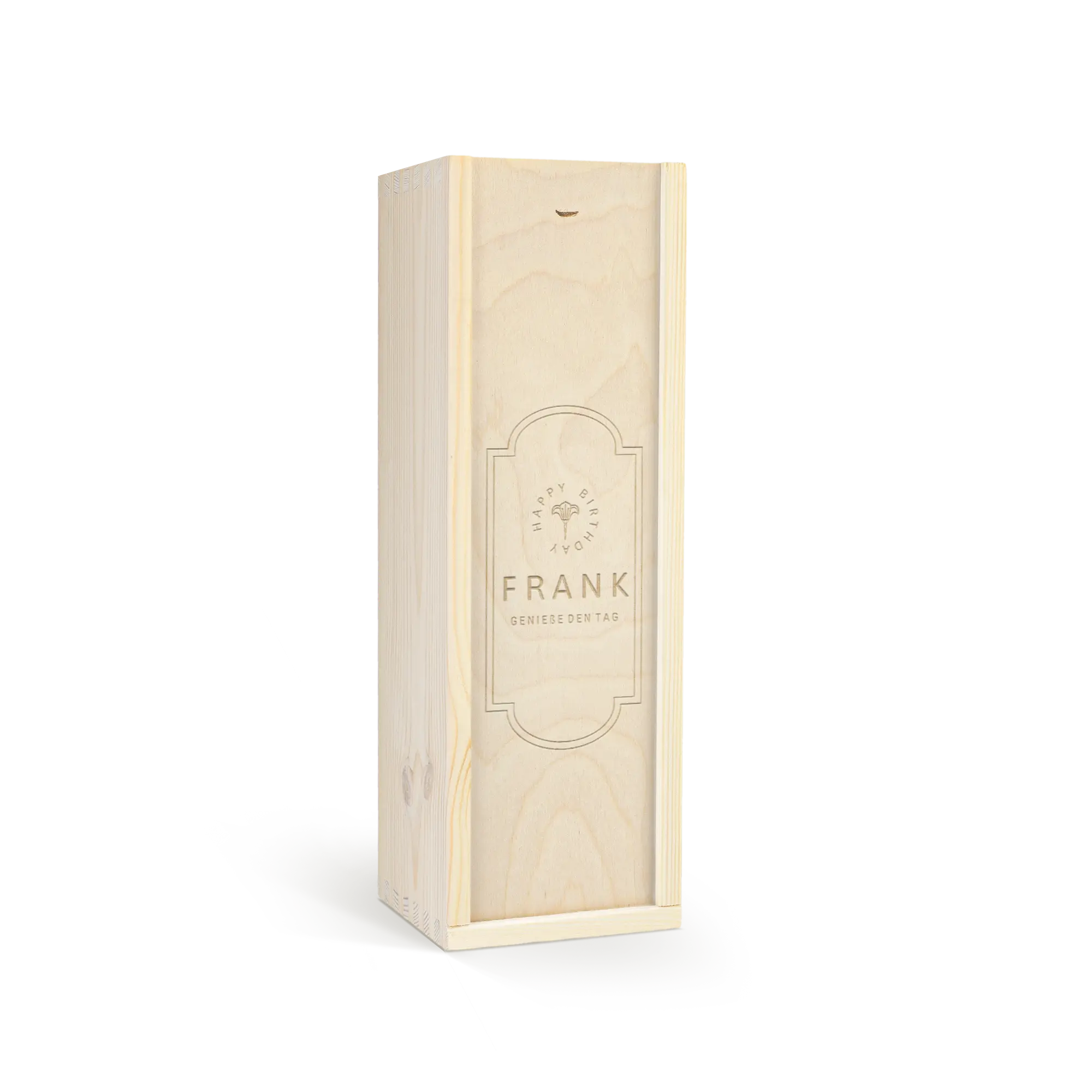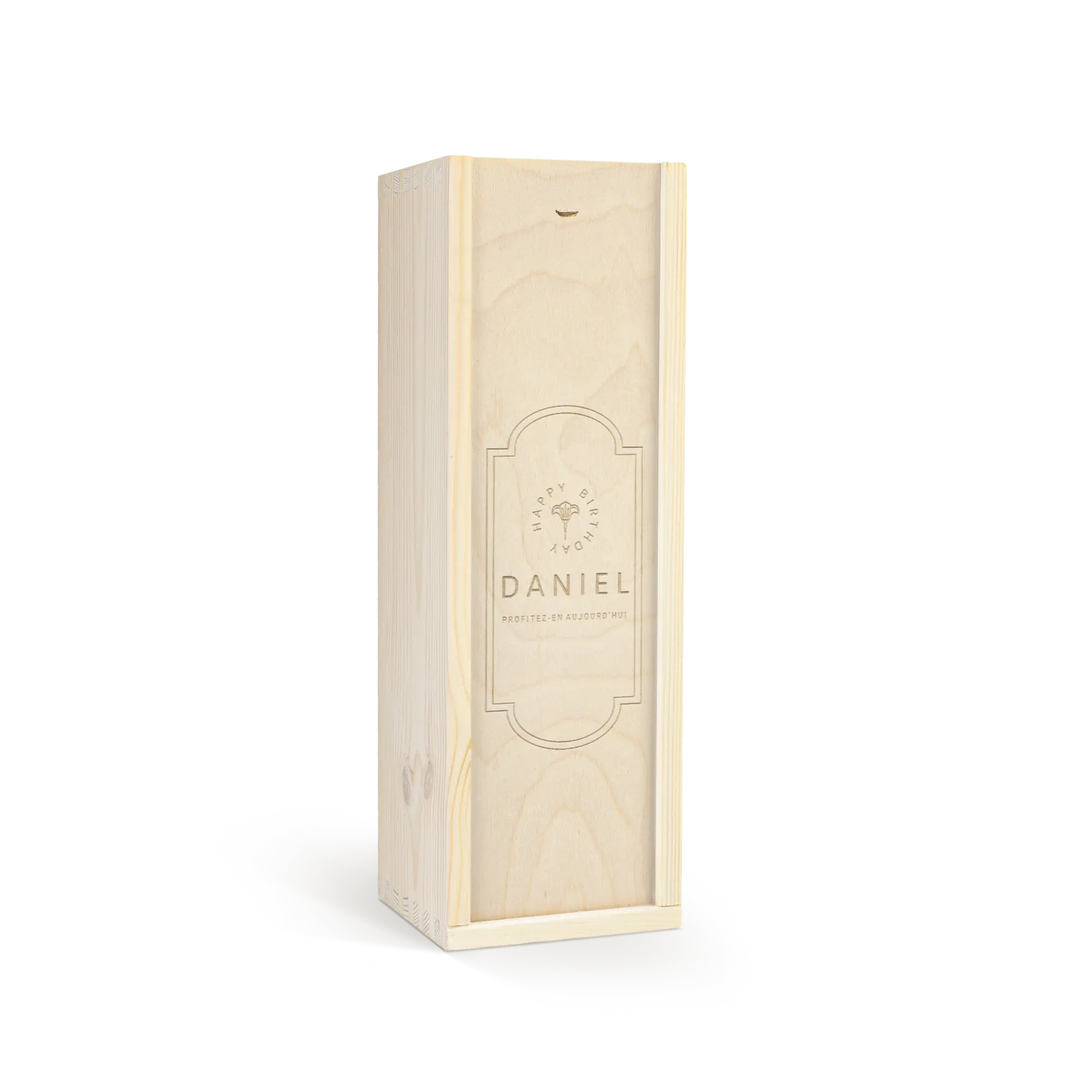 Delicious Maison de la Surprise wine in deluxe wooden case featuring the name and/or text of your choice. Create yours now!More information on the deluxe wooden case:Personalisation: with name and/or textPersonalisation placement: on wooden case lidPersonalisation method: high-quality laser-engravingCase dimensions: 36.5 x 12 x 11 cmLid dimensions: 35.6 x 10.2 x 0.3 cmAdditional information: the deluxe wooden case is made with FSC-certified woodMore information on the wine:Brand: Maison de la SurpriseType: redContents: 750 mlCountry of origin: FranceGrape: Cabernet SauvignonCharacter: Maison de la Surprise Cabernet has notes of fruit, leather and cedar wood. Pairs well with poultry and cheeses.