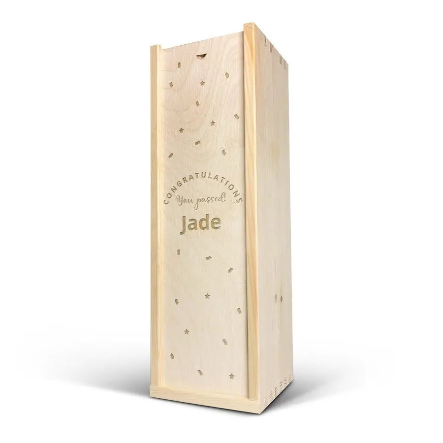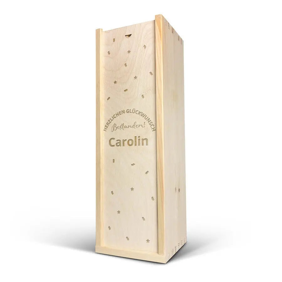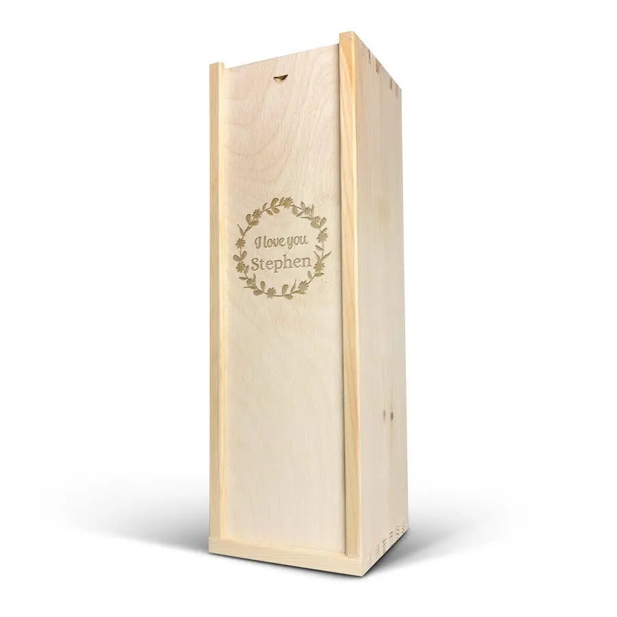 A delicious bottle of Palau Semi-Seco cava in a luxurious wooden case engraved with your name and/or text. Original gift!