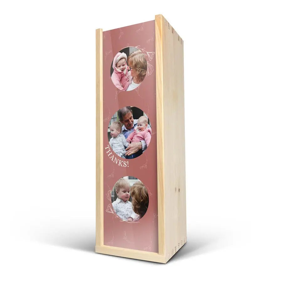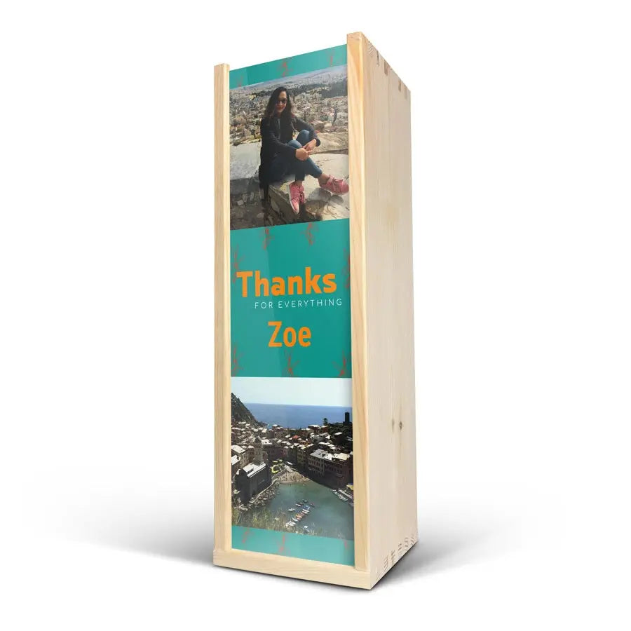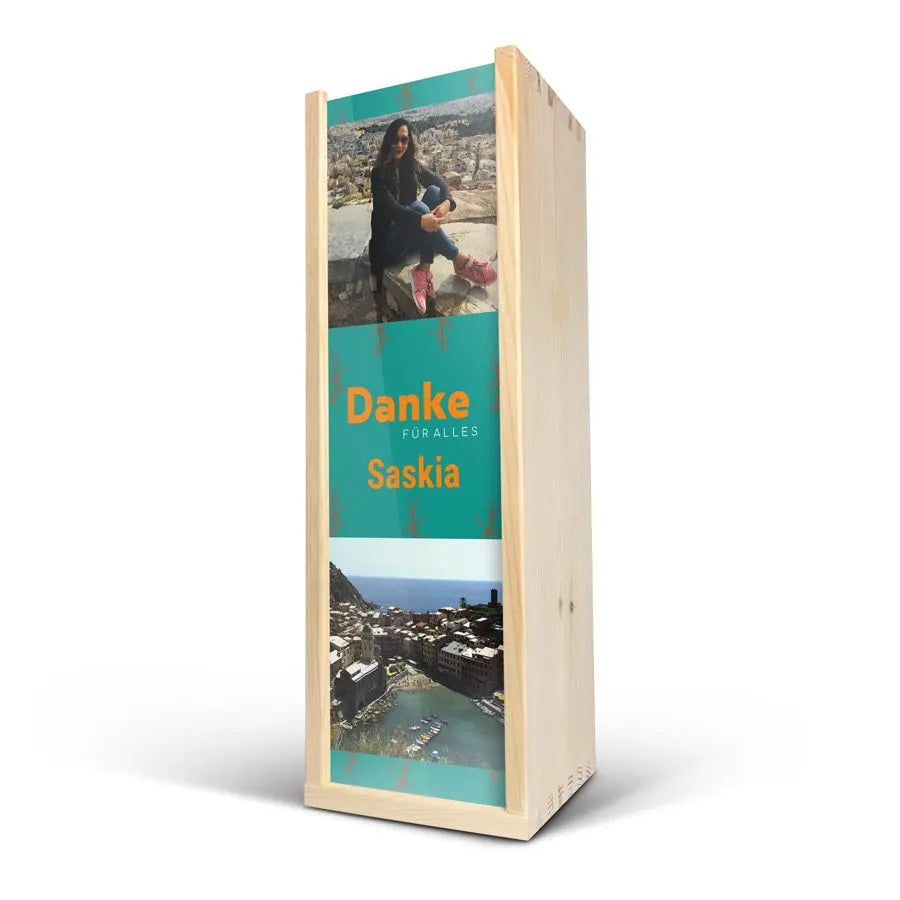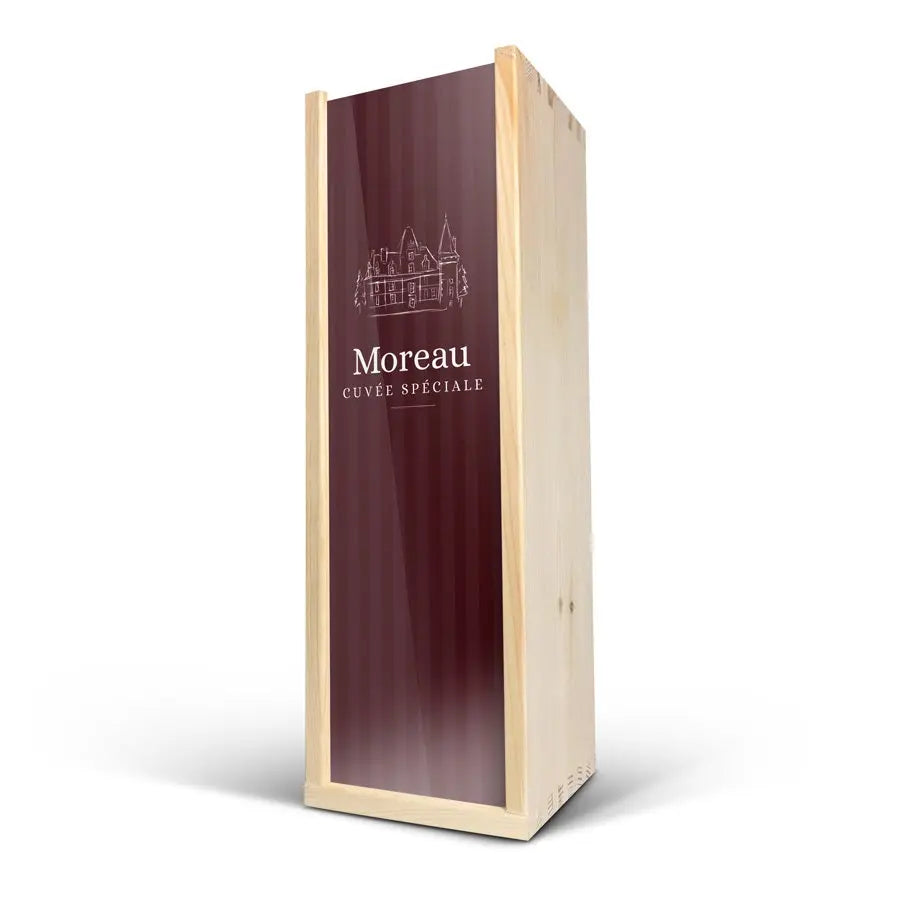 A delicious bottle of Cava Palau Gazo sparkling wine in engraved case. Personalise as you wish with your text in a unique design!More information on the luxurious wine case:Personalisation: with photo, name, logo or collagePersonalisation placement: on the cover of the wooden casePersonalisation method: high-quality engraving in the most beautiful coloursDimensions of the wooden case: 36,5 x 12 x 11 cmDimensions of the wooden lid: 35,6 x 10,5 x 0,3 cmThe wood of the case is FSC certified.More information about this champagne: Name: Cava Palau GazoWine type: CavaContent: 750 mlCountry: SpainGrape: Parellada, Macabeo, Xarel-LoCharacter: Fine bubbles, a soft, fruity flavour featuring aromas of green apples. A smooth, rounded aftertaste. Ideal for parties and receptions.