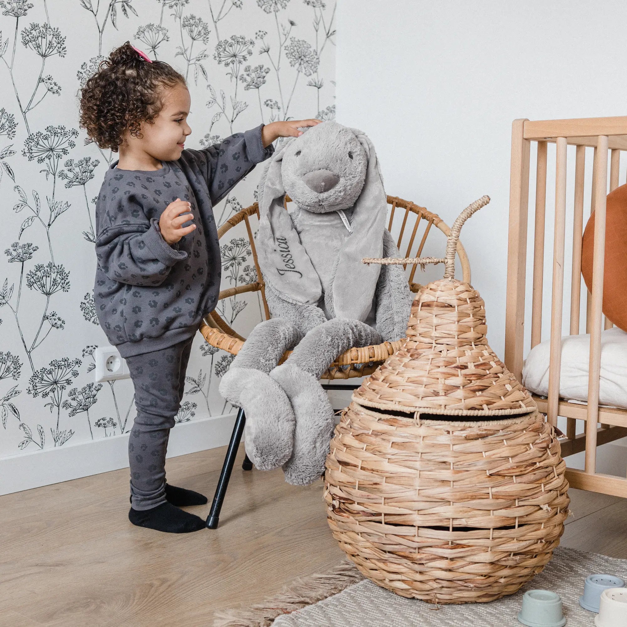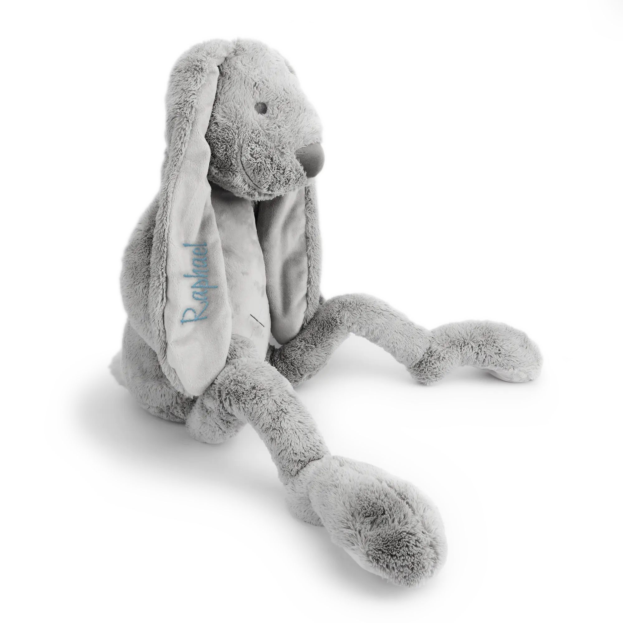 Surprise your little one with this soft personalised Big Rabbit Richie plush, embroidered with the name(s) of your choice.More information on the personalised cuddly toy:Material: soft and cuddlyToy dimensions: 92 cmPersonalisation: with name or textPersonalisation method: high-quality embroideryCE-certification: this toy meets all of the legal requirements for children's toys, making it completely safeBrand: Happy HorseAdditional information: the left ear can be personalised at an additional costWashing: do not dry clean. Wash at 30°C and air dryPlease note that the embroidery thread is visible on the outside of the embroidered ear.