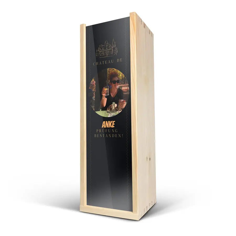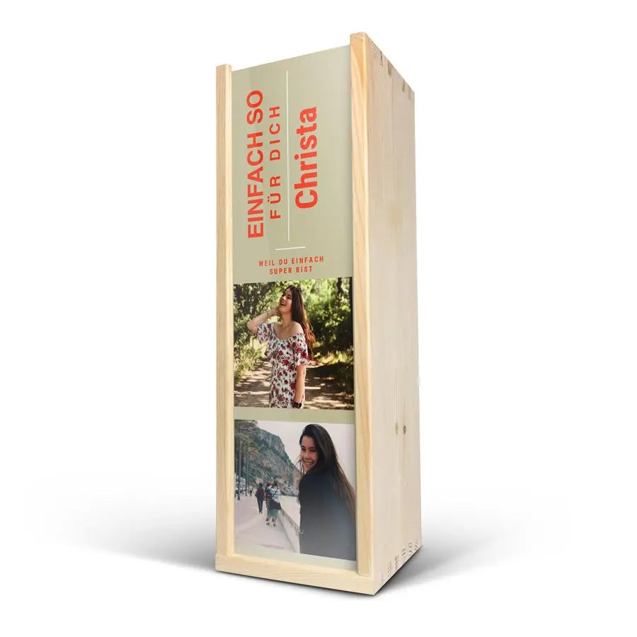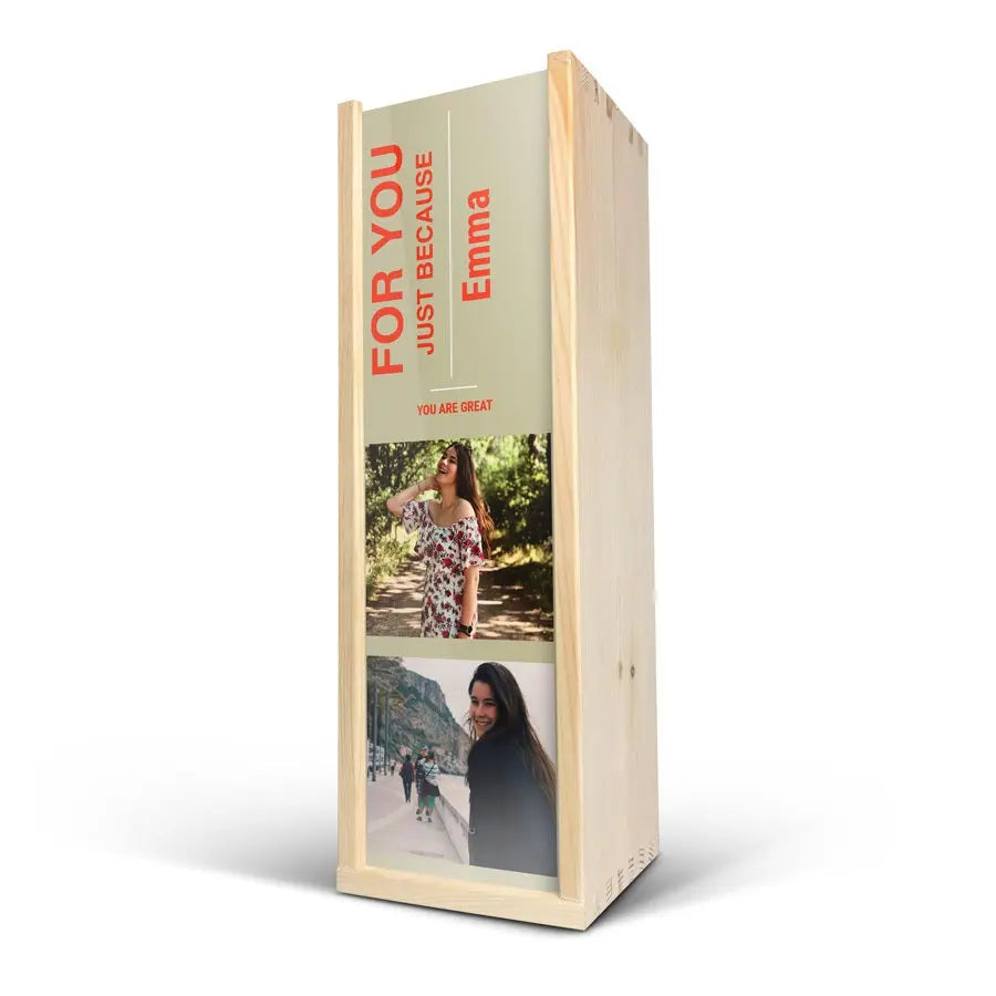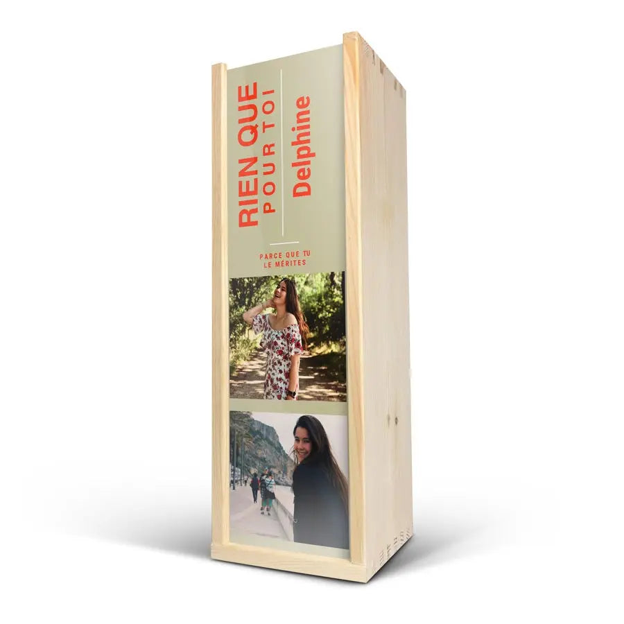 A delicious bottle of real Moët & Chandon champagne in an engraved wooden case with your name or text. Various bottle sizes available!