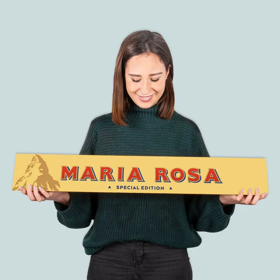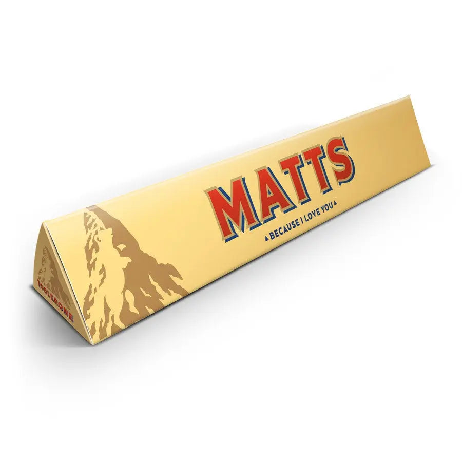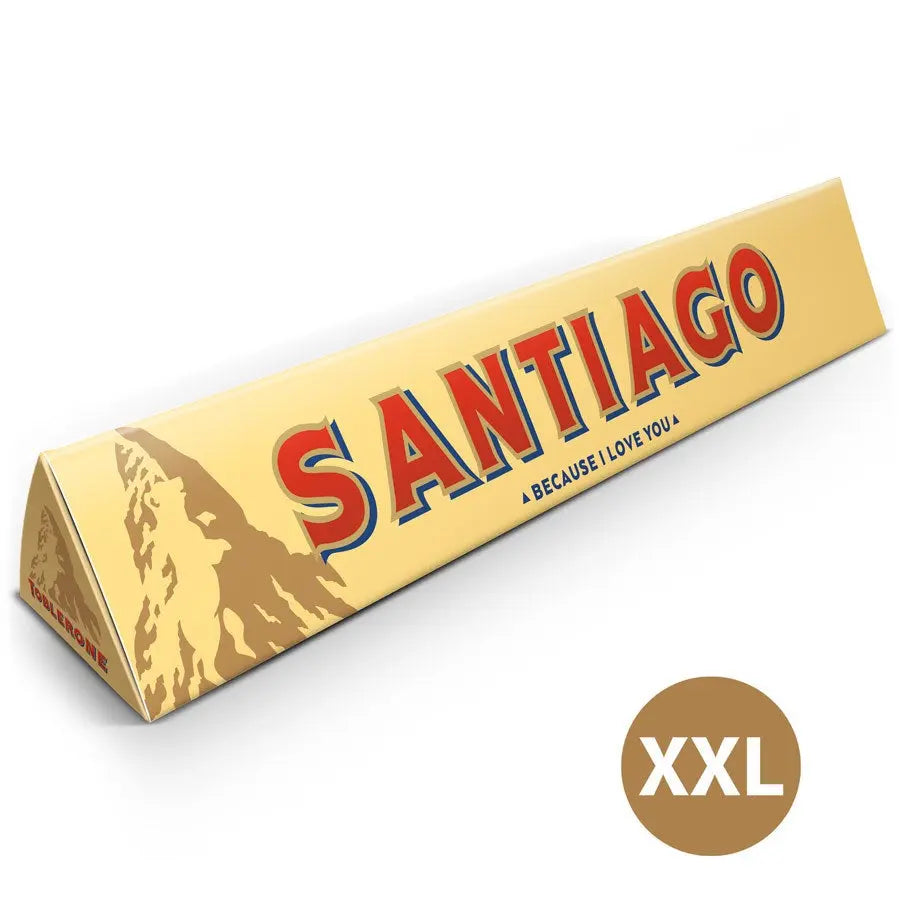 Surprise your favourite Toblerone fan with this huge XXL milk chocolate bar. Classic wrapper with a personal twist in the form of the recipient's name!