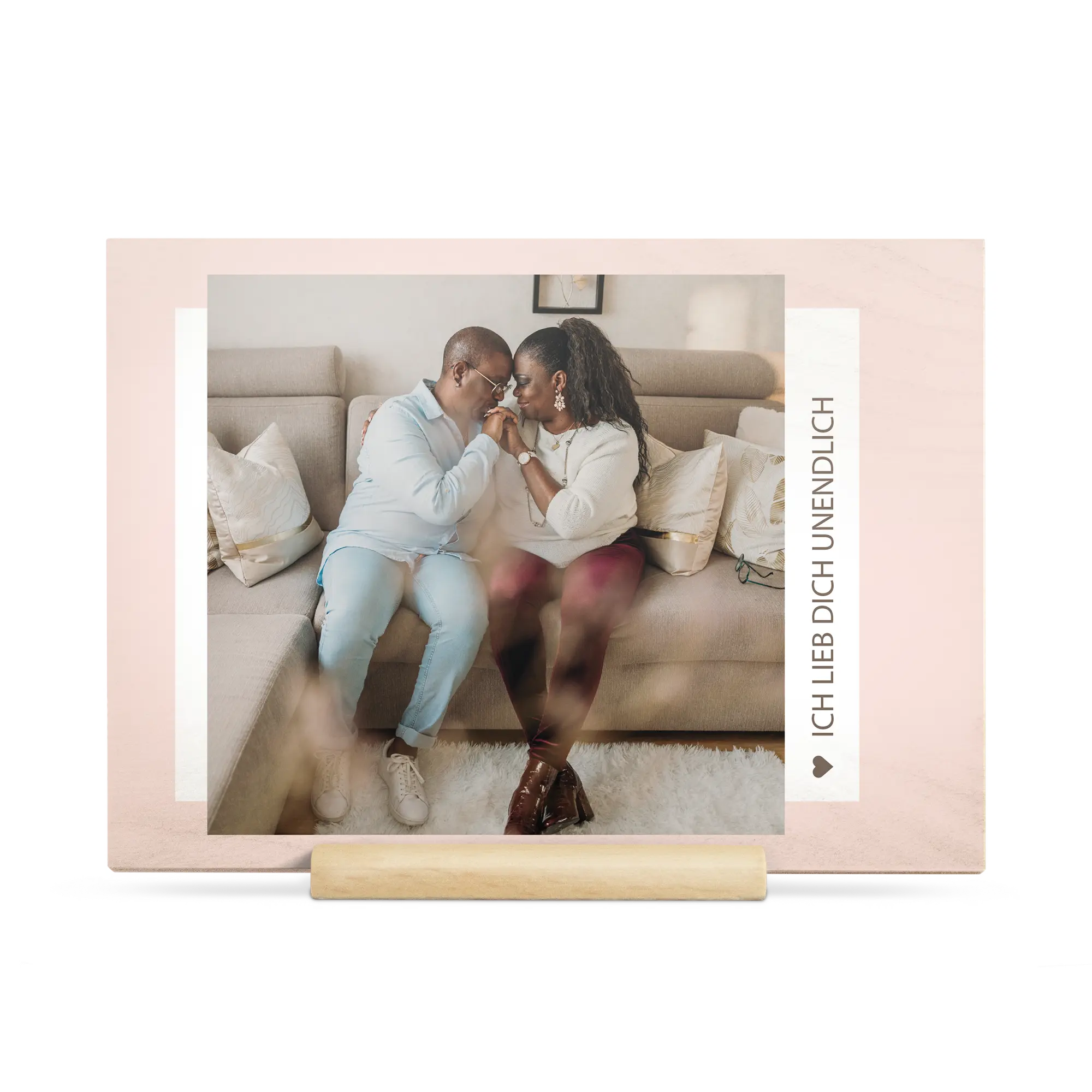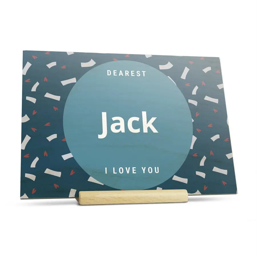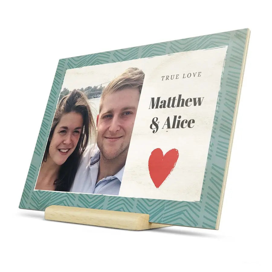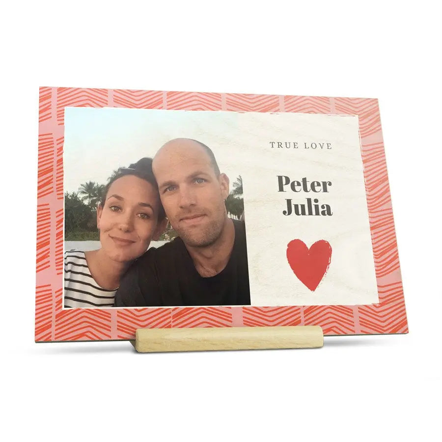A Valentines day card on wood, designed specially by you. Full color print on super strong plywood, including a convenient stand. Have a super Valentines day!More information on the wooden Valentines day card:Material: splinter free wood with a natural finish Size: 17 x 12 cmPrinting: picture-perfect full color UV-print Personalisation: with name, photo and/or text Extra: including a handy wooden stand The natural structure of the wood will be visible through your photo for a unique effect. So please be aware that your gift can slightly differ from the images on the website.