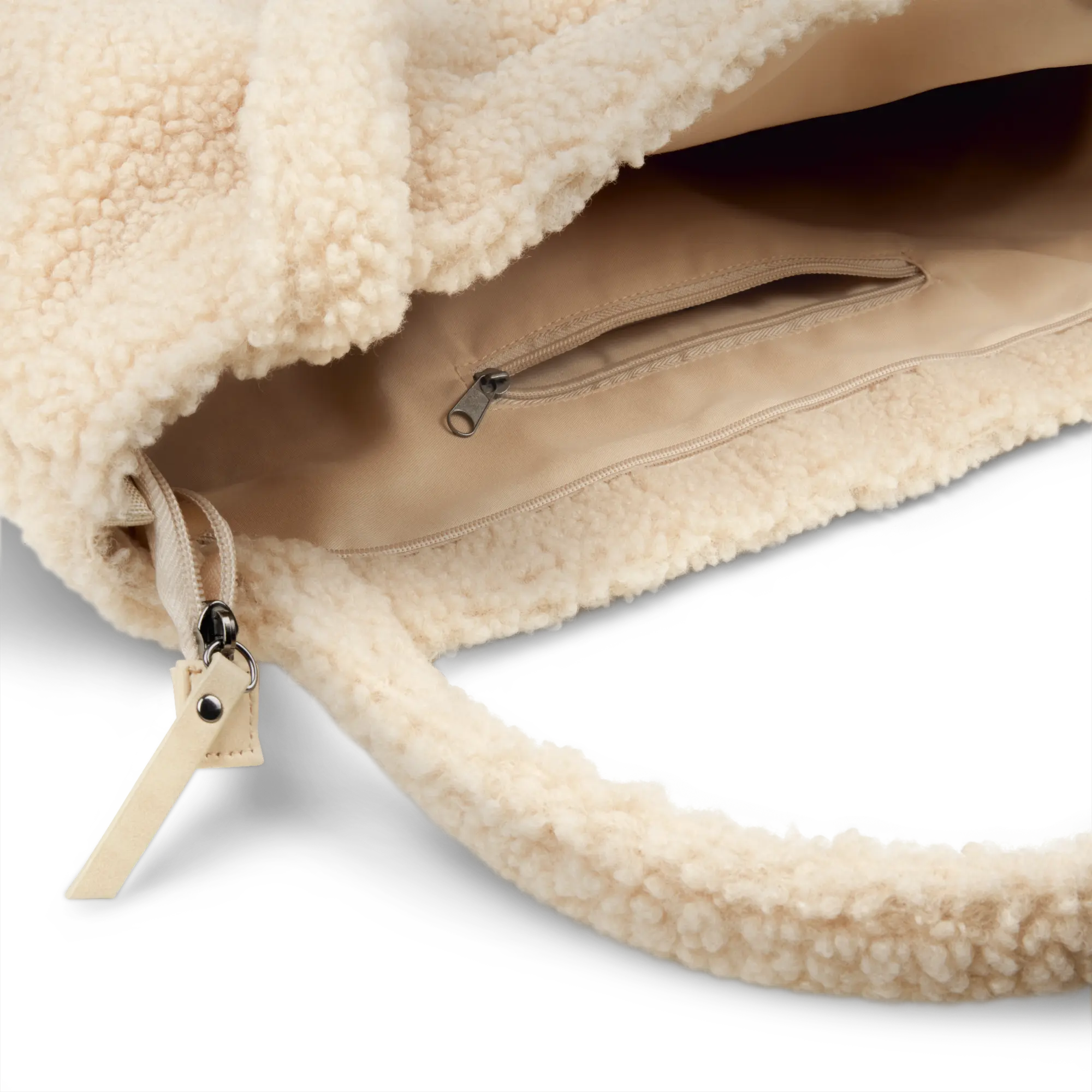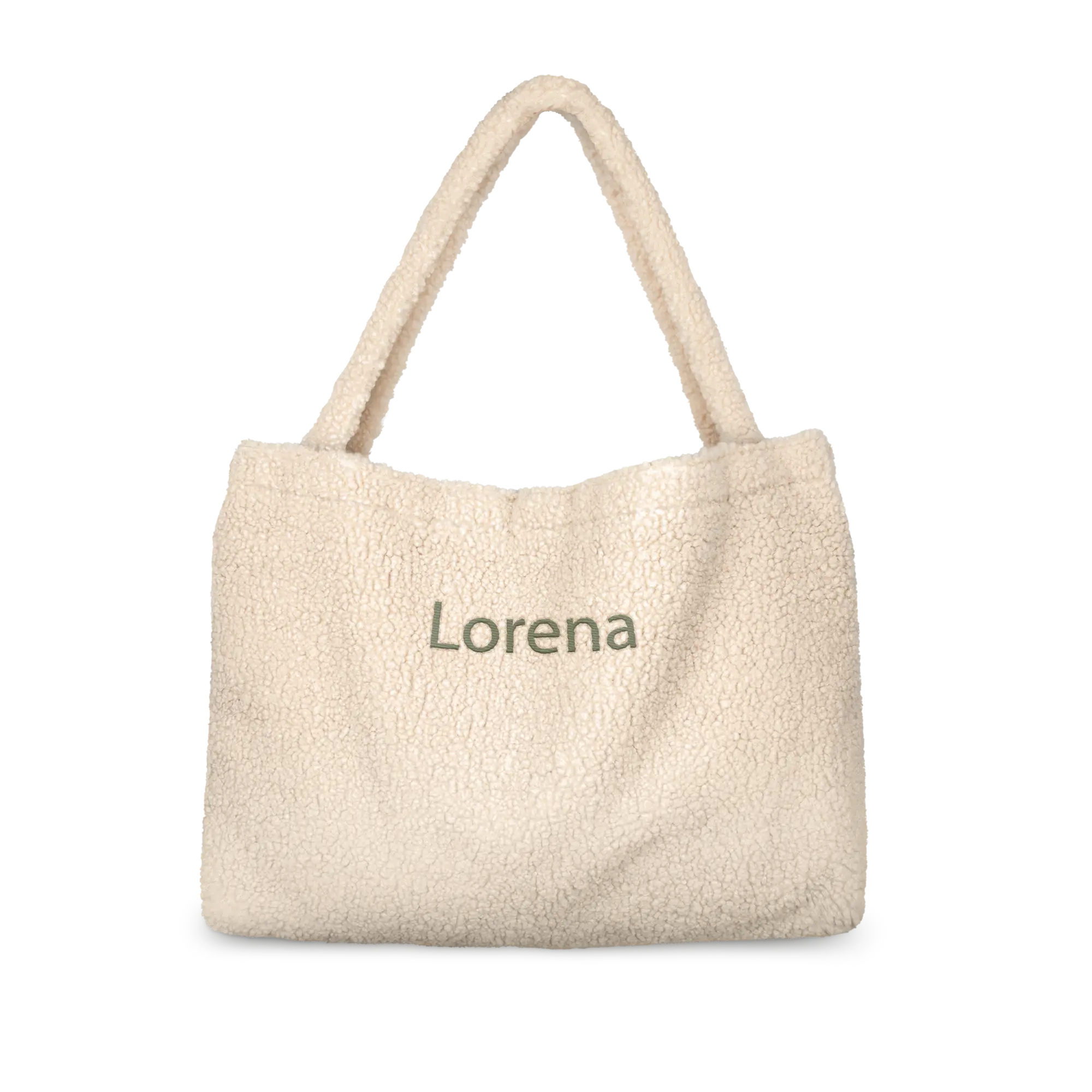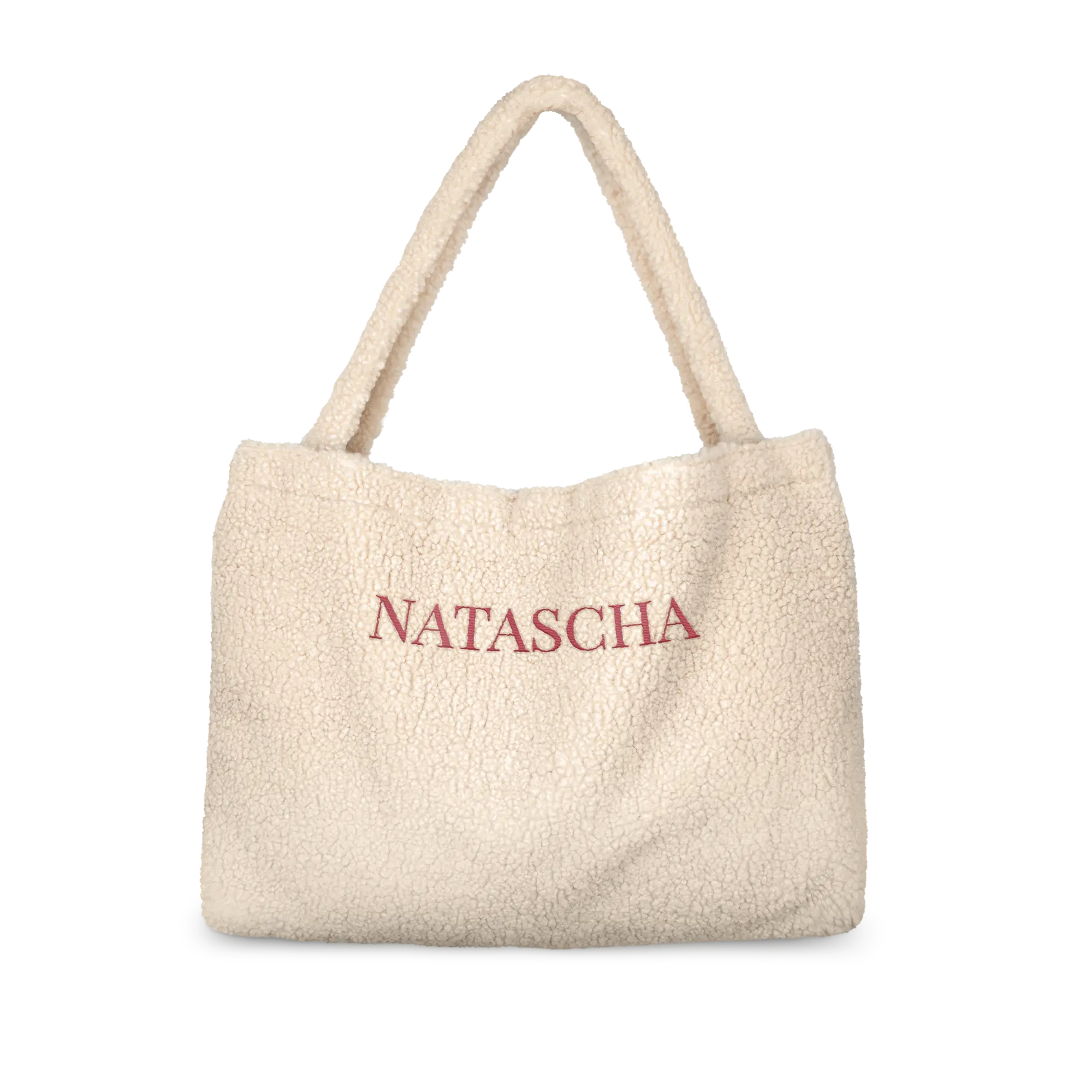 Surprise the ladies in your life with their very own teddy tote bag featuring the name, initials or text of your choice. Soft and practical!More information on the embroidered teddy tote bag:Material: 100% polyesterDimensions: 60 x 42 cmColour: beigePersonalisation: with name, initials or textPersonalisation method: high-quality embroideryAdditional information: main compartment with zip, internal compartment with zip, 2 long handlesWashing instructions: wipe down with a damp cloth, the bag is not water-resistant