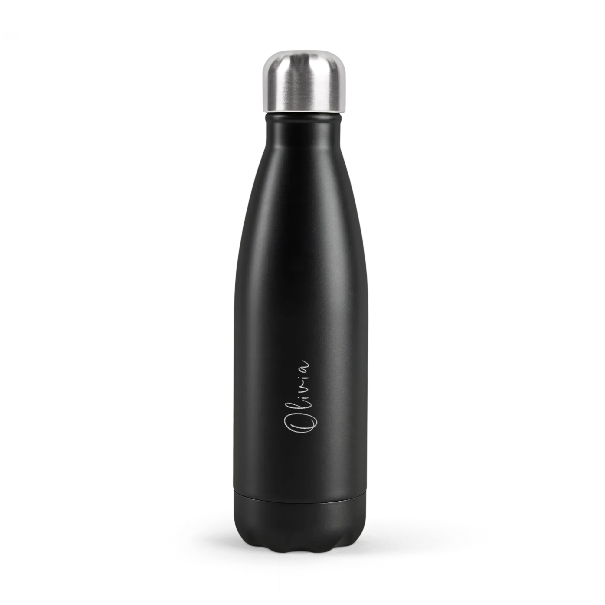 Personalised thermos flask engraved with the name and/or text of your choice. Perfect for keeping your drink hot or cold at all times.More information on the thermos flask:Material: high-quality aluminium exteriorColour: black with aluminium screw lidHeight: 25 cmDiameter: 7 cmCapacity: 500 mlPersonalisation: with name and/or textPersonalisation method: high-quality laser engravingAdditional information: hand-washing advised, not suitable for the dishwasher or microwave