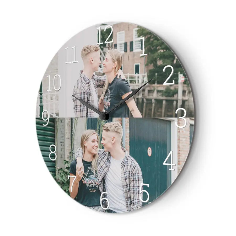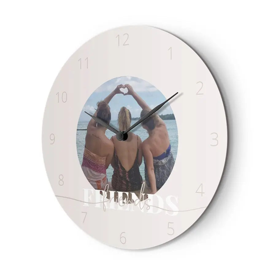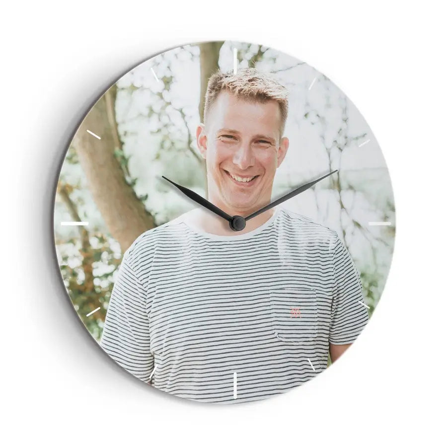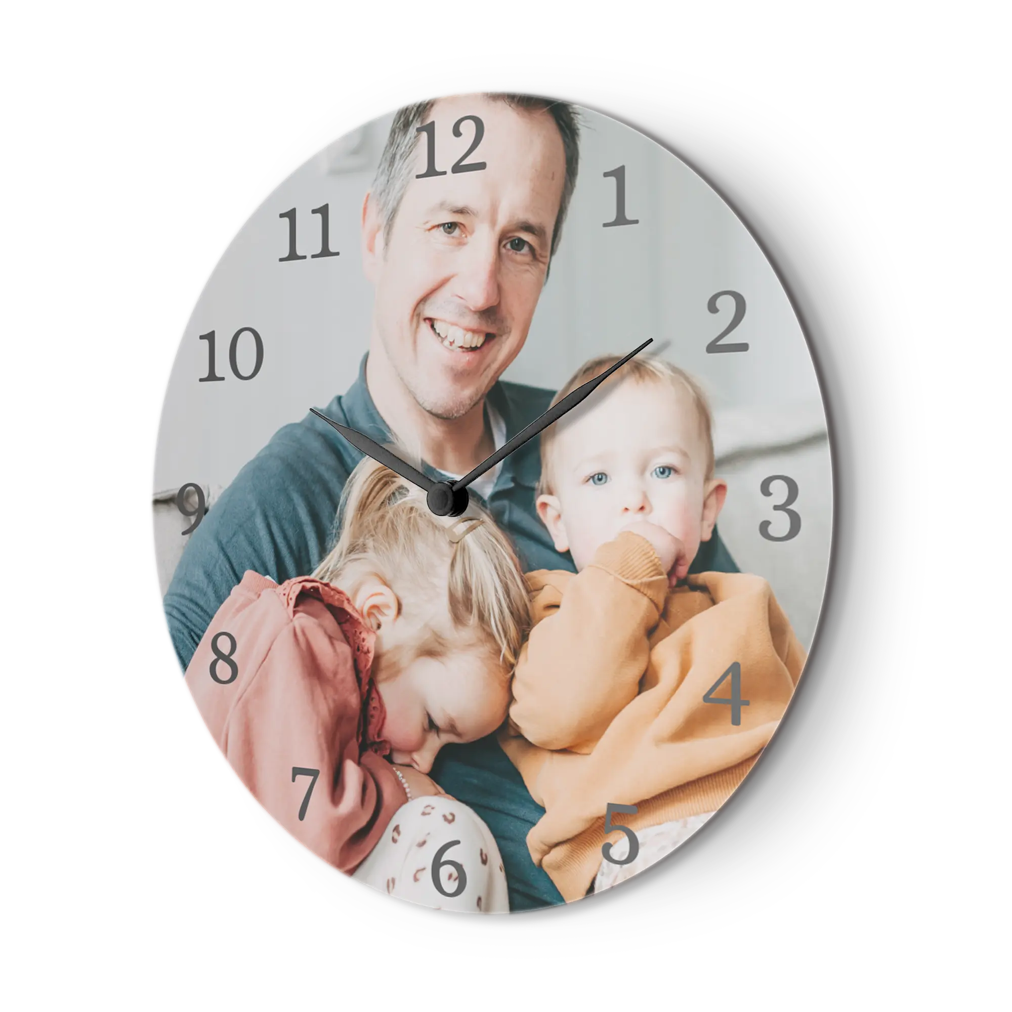 A large hardboard clock with your own photo and text! Diameter of 29 cm / 11.4".More information on the personalised hardboard clock:Shape: round Diameter: 29 cm / 11.4"Material: hardboard with hardened coatingPersonalisation: with photo and/or textPrint: full colour in HD qualityExtra: batteries included