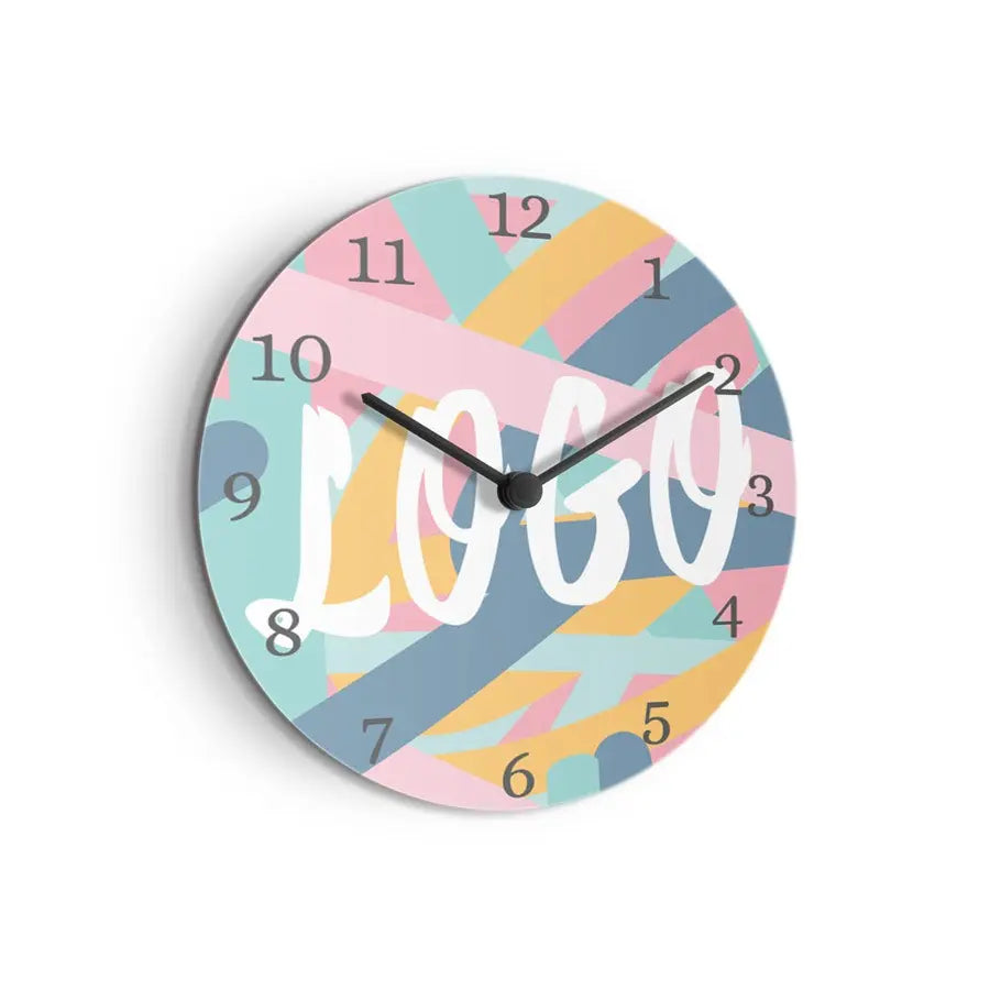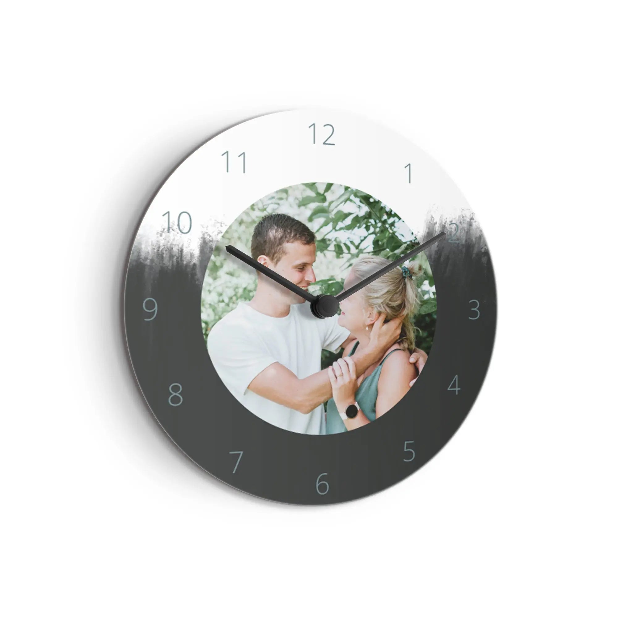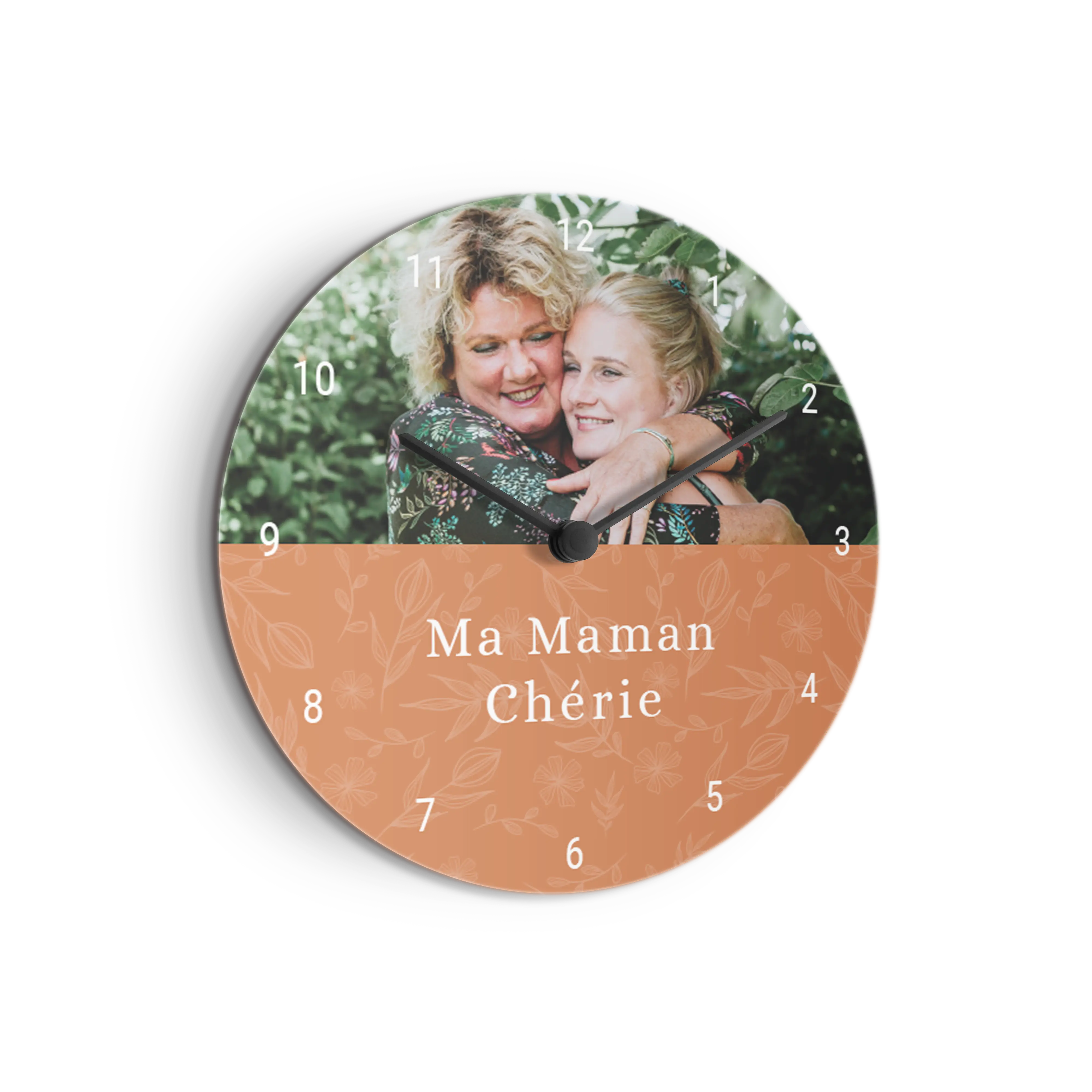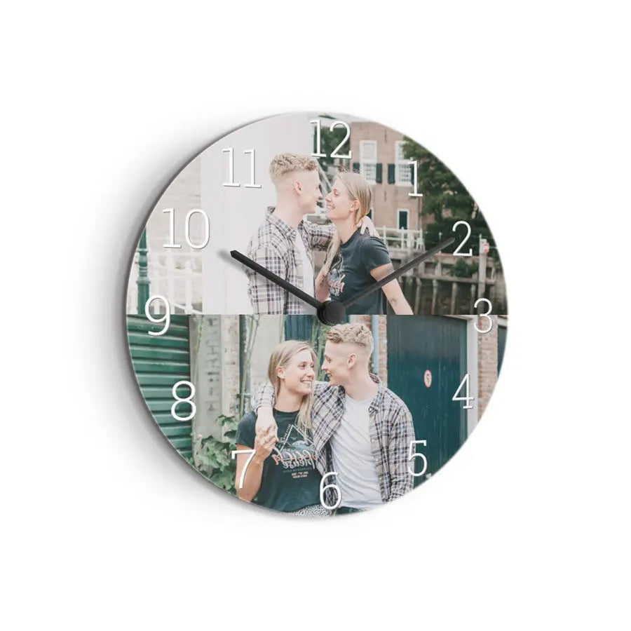 A small hardboard clock with your own photo and text! Diameter of 20,5 cm / 8.1".More information on the personalised hardboard clock:Shape: round Diameter: 20.5 cm / 8.1"Material: hardboard with hardened coatingPersonalisation: with photo and/or textPrint: full colour in HD qualityGood to know:Extra: battery included.Suspension notch on the mechanism on the back.Our clocks are silent because they do not have a second hand indicating the seconds.Personalisation tip:Keep in mind the numbers and hands of the clock when adding a photo to the clock in your design.Extra: batteries included