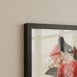 A poetic black-and-white portrait with vivid flowers, merging emotion and artistry. A sophisticated gift with quiet strength.