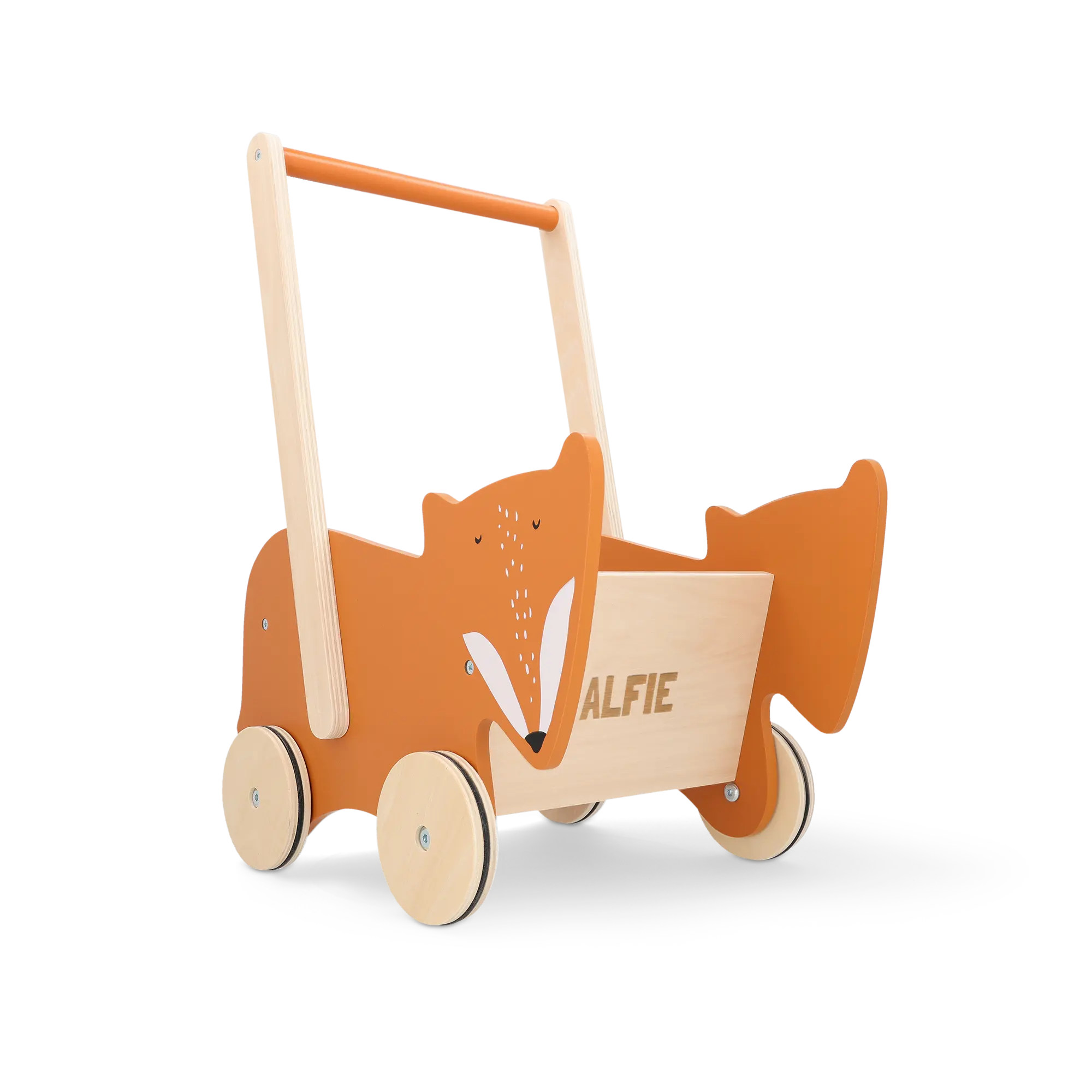 Personalised wooden baby walker by Trixie, engraved with the name or text of your choice. Sustainable, fun and truly personal!More information on the personalised wooden baby walker:Brand: TrixieMaterial: high-quality 100% FSC-certified beech woodDimensions: 36.5 x 7.5 x 29 cmWeight: 1500 gramsPersonalisation method: high-quality laser engravingPersonalisation: with name or textAdditional information: - All paints are water-based and safe for babies- Wood is a natural product, which means your gift may differ slightly from the example and preview images- Suitable for children of 18 months and overFor technical reasons, it is not possible to add Cyrillic, Turkish or special characters.