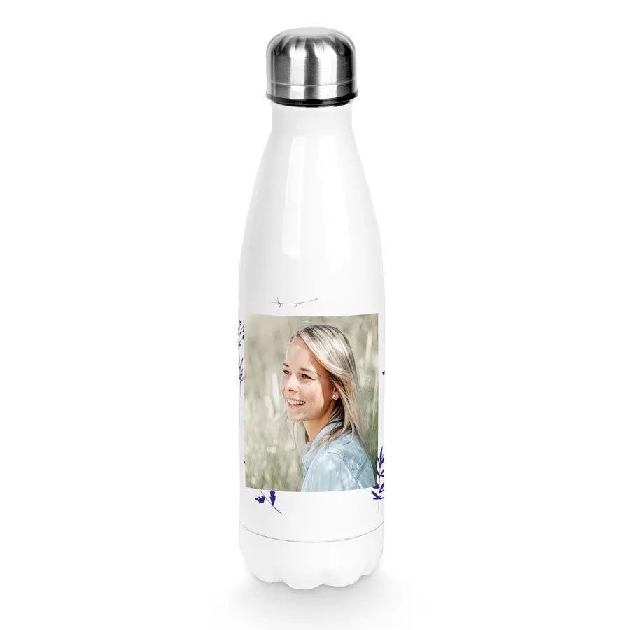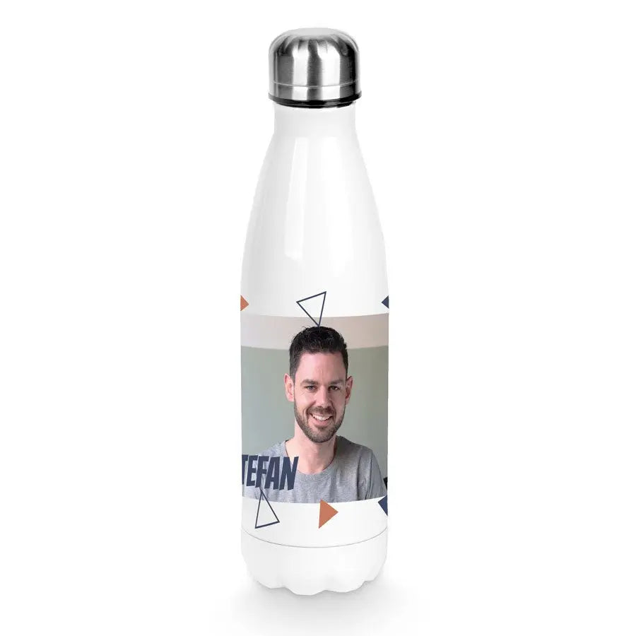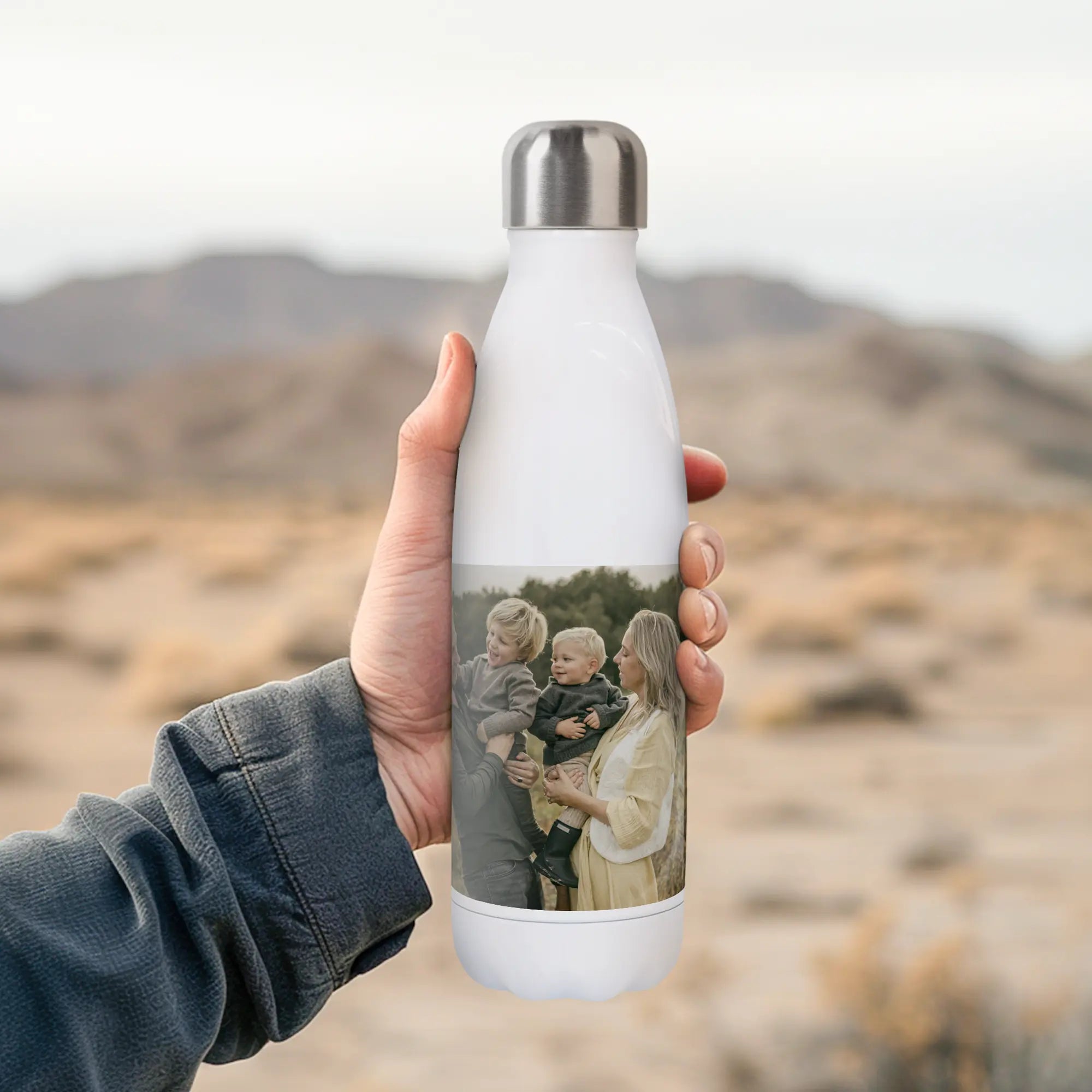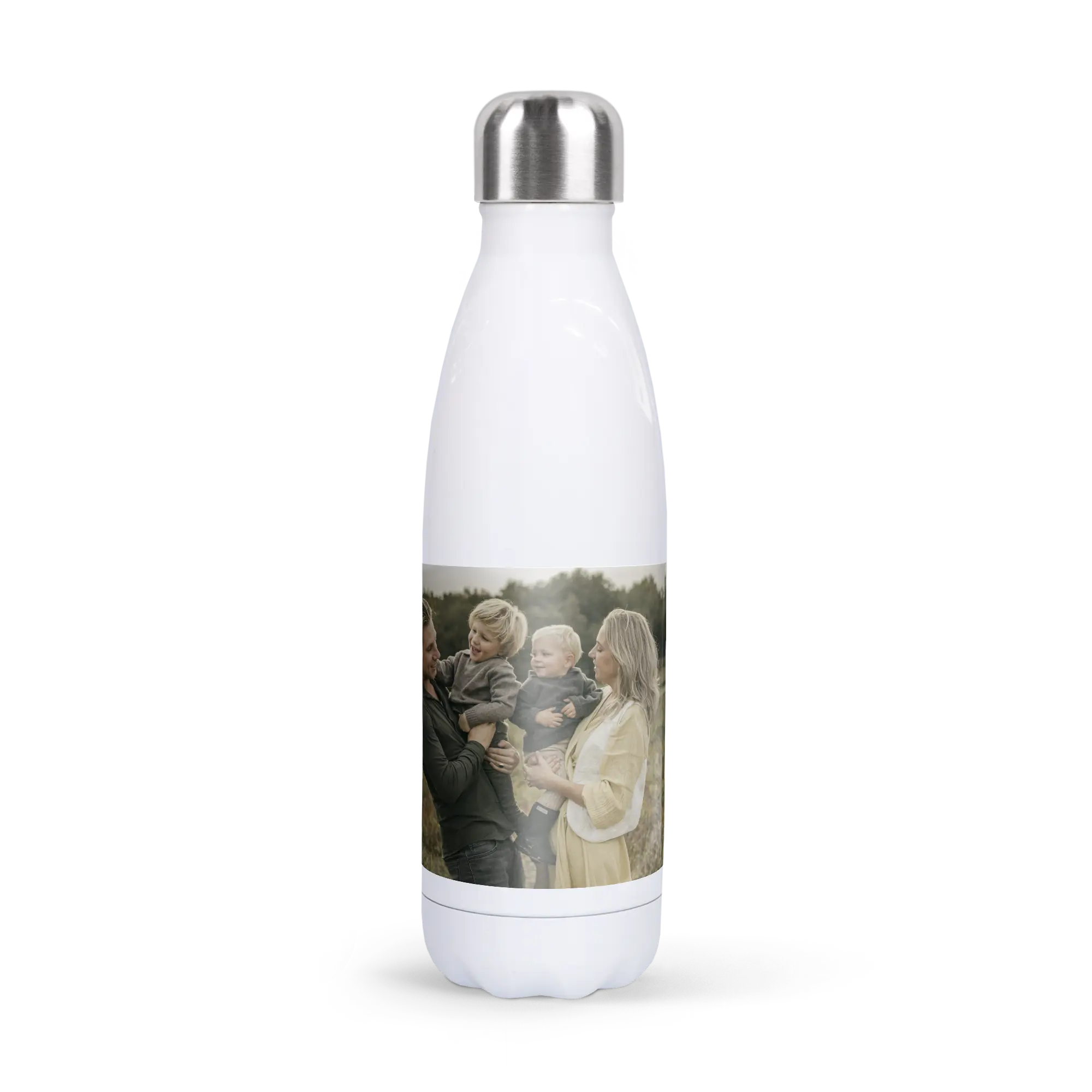 Have a stainless steel water bottle personalised with the photo, text or logo of your choice. Create yours now!More information on the personalised water bottle: Material: high-quality stainless steel and aluminium Colour: white bottle with silver lid Capacity: 500 ml Personalisation: photo, text and/or logo Print: picture perfect and in full colour Thermos: cools for up to 24 hours, keeps warm for up to 12 hours Extra: leak-proof and insulated, hand-washing advised The bottle is BPA-free.