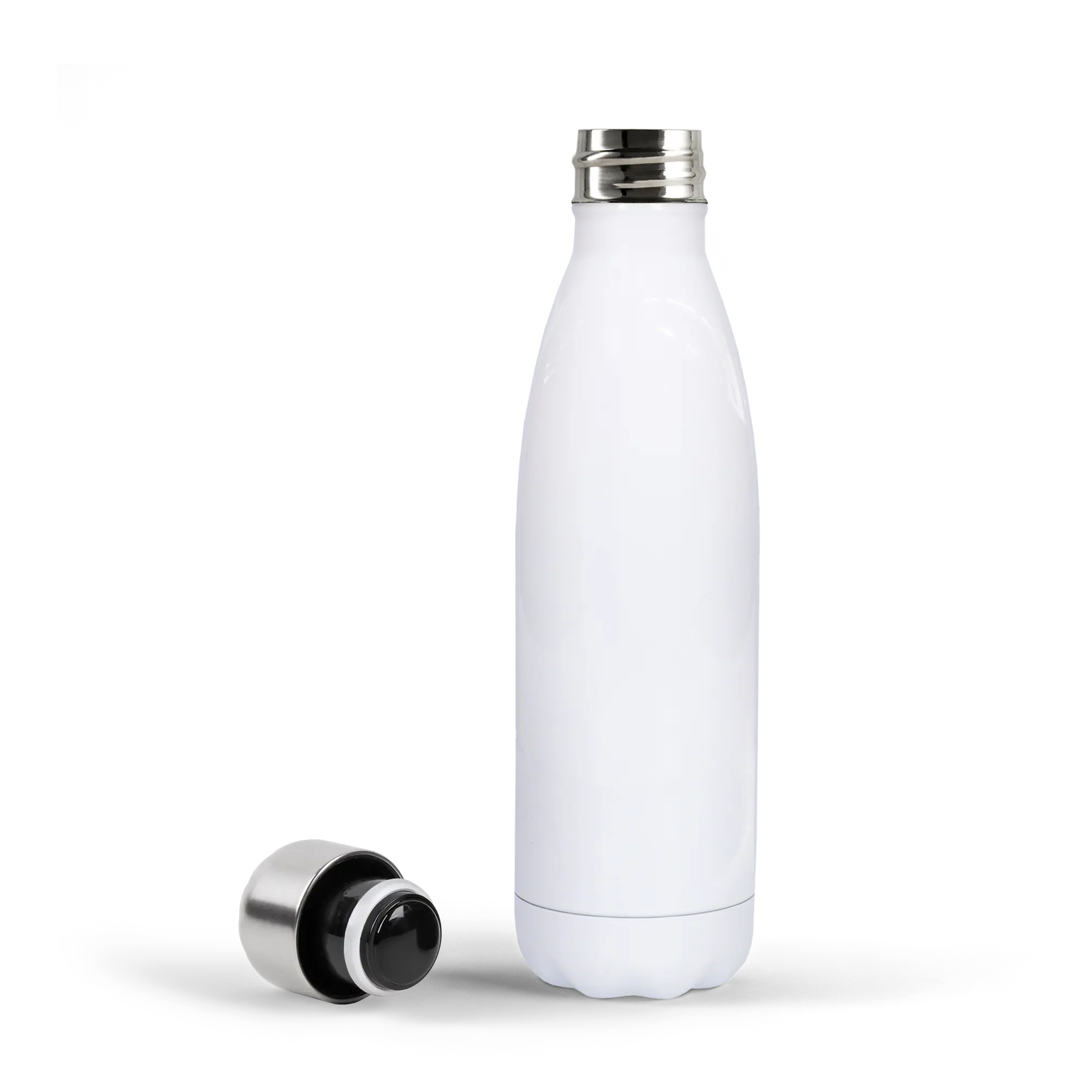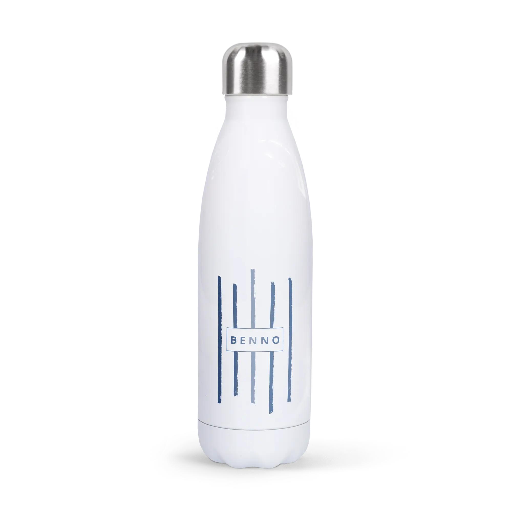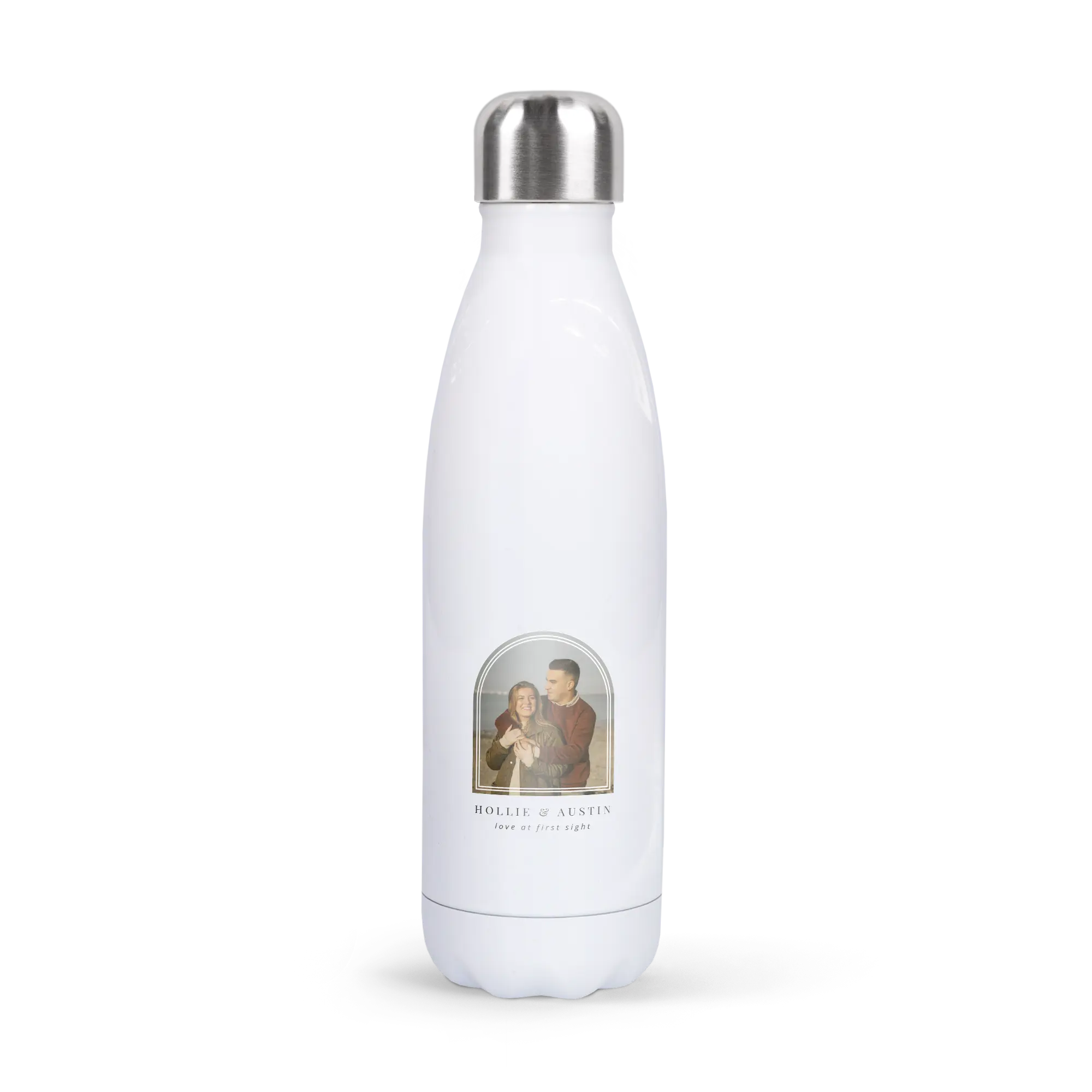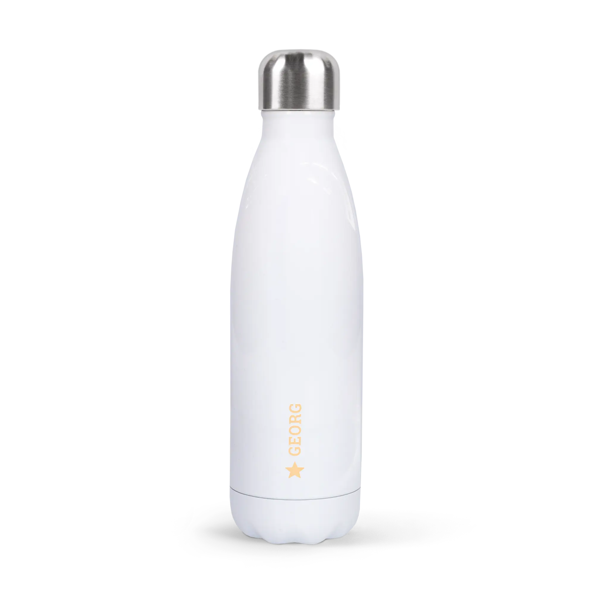 Have a stainless steel water bottle personalised with the photo, text or logo of your choice. Create yours now!More information on the personalised water bottle: Material: high-quality stainless steel and aluminium Colour: white bottle with silver lid Capacity: 500 ml Personalisation: photo, text and/or logo Print: picture perfect and in full colour Thermos: cools for up to 24 hours, keeps warm for up to 12 hours Extra: leak-proof and insulated, hand-washing advised The bottle is BPA-free.