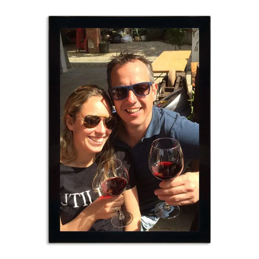 More information on the glass photo frames with a photo: Material: premium glass with a black frameDimensions: 21 x 30 cm Thickness: 7 mm Print: picture perfect full colour photo printMounting system: interchangeable synthetic mounting block Extra: you can easily clean your photo frame with a dry cloth and glass cleaner
