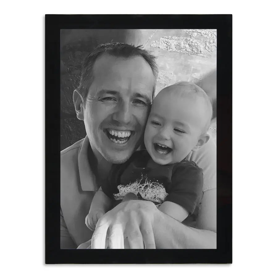 Keep reliving the best moments with a luxurious glass photo frame. Premium glass with a chic black frame and a handy mounting system!More information on the glass photo frames with a photo: Material: premium glass with a black frameDimensions: 30 x 40 cm Thickness: 7 mm Print: picture perfect full colour photo printMounting system: interchangeable synthetic mounting block Extra: you can easily clean your photo frame with a dry cloth and glass cleaner