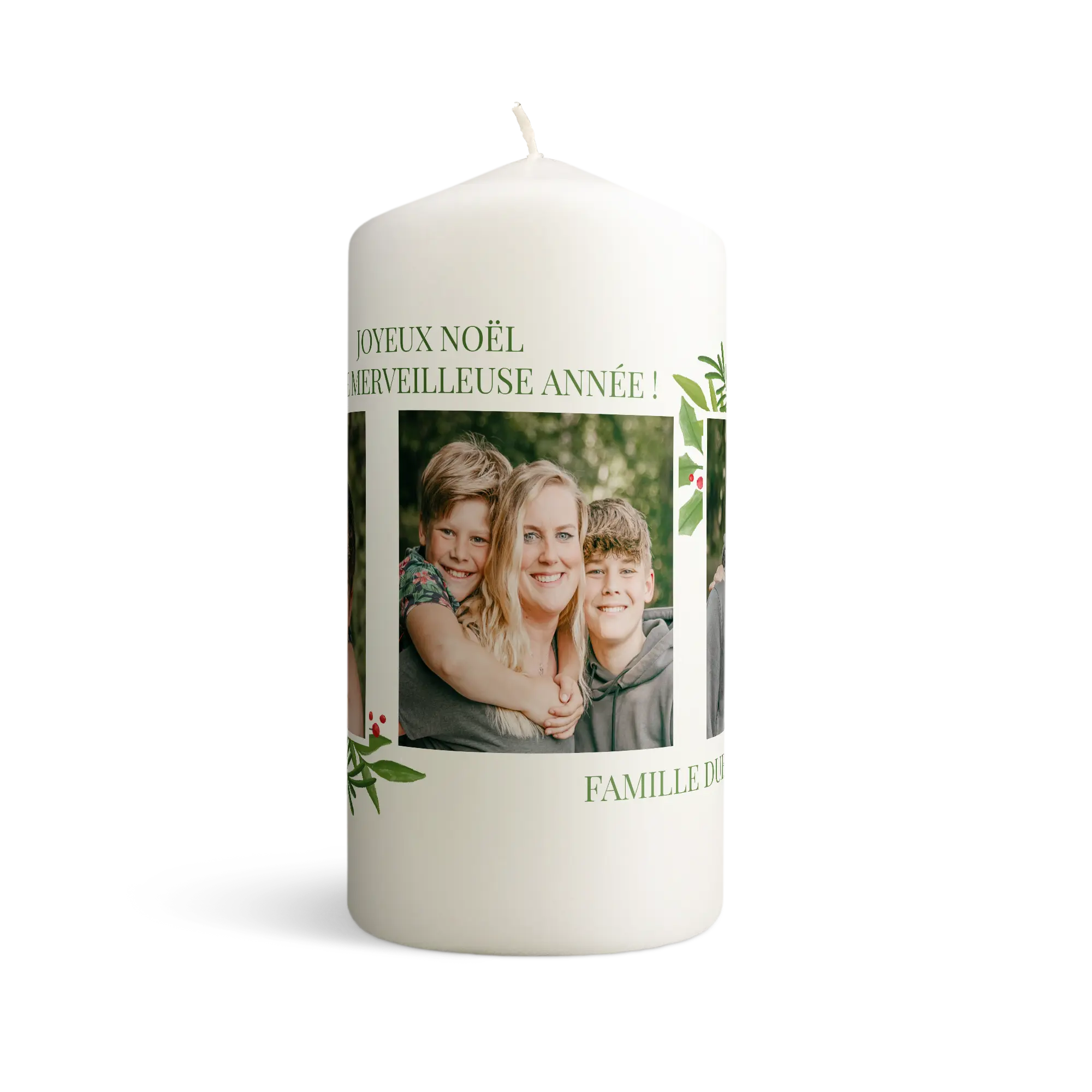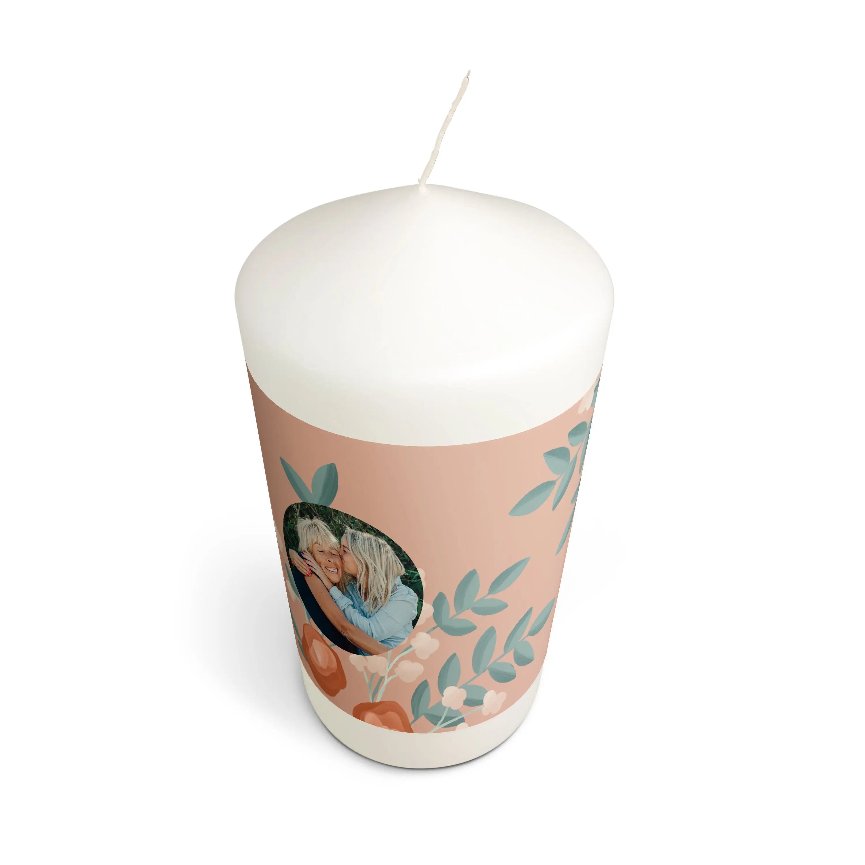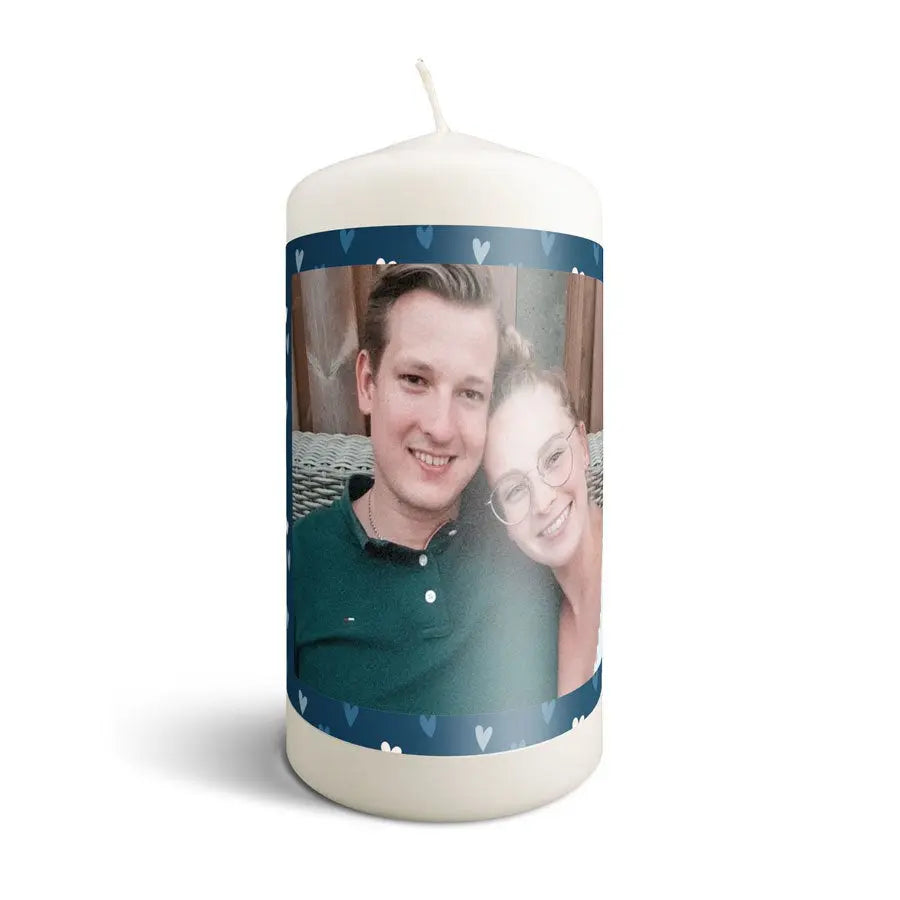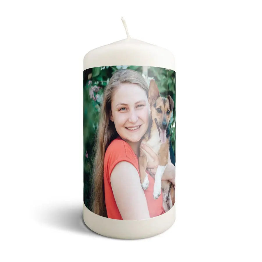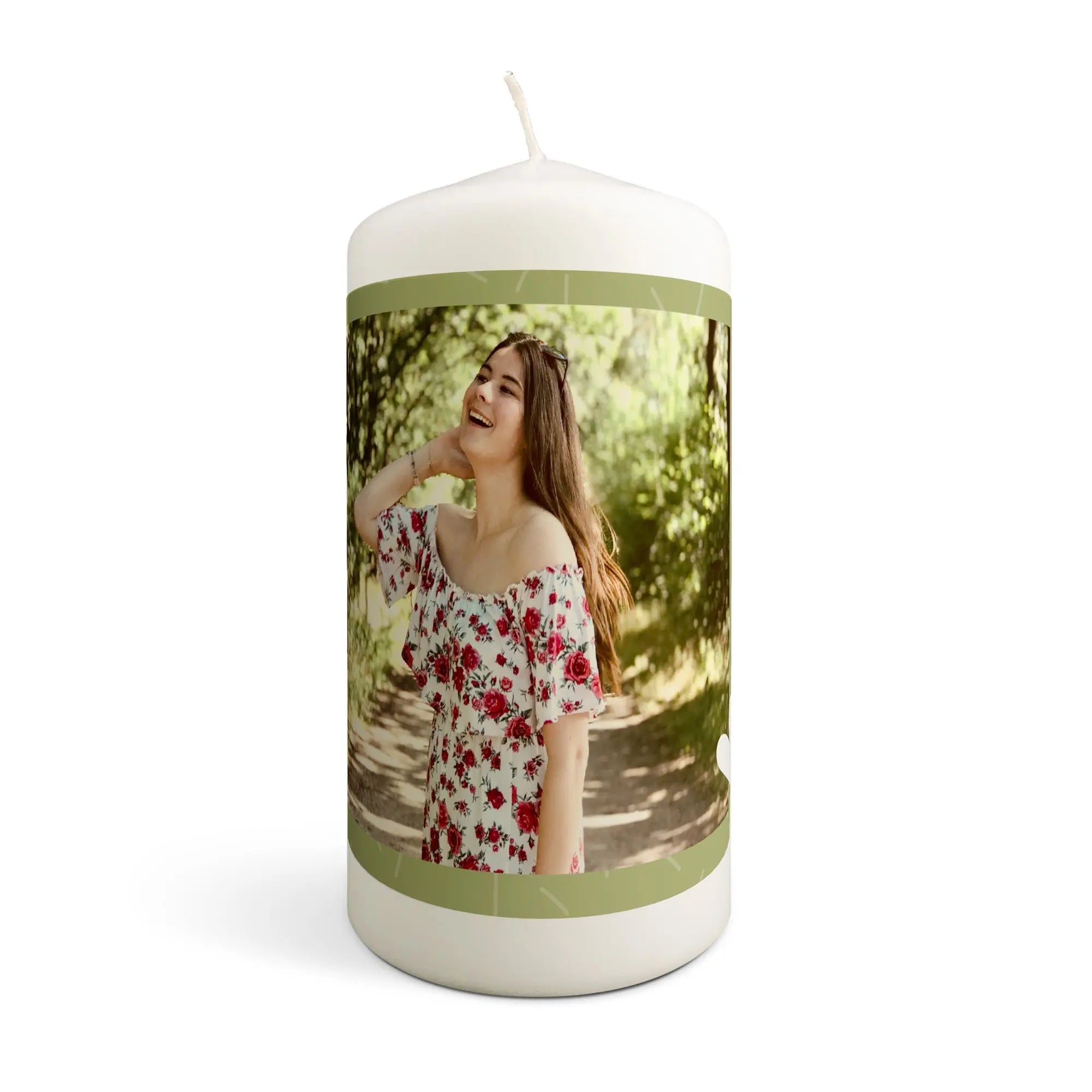 A personalised round candle with your own design, dimensions: 19 x 10 cm.More information about the candle:Height: 19 cmDiameter: 10 cmBurning hours: 60Personalisation: with photo, name and/or logo Print: picture perfect and in full colour