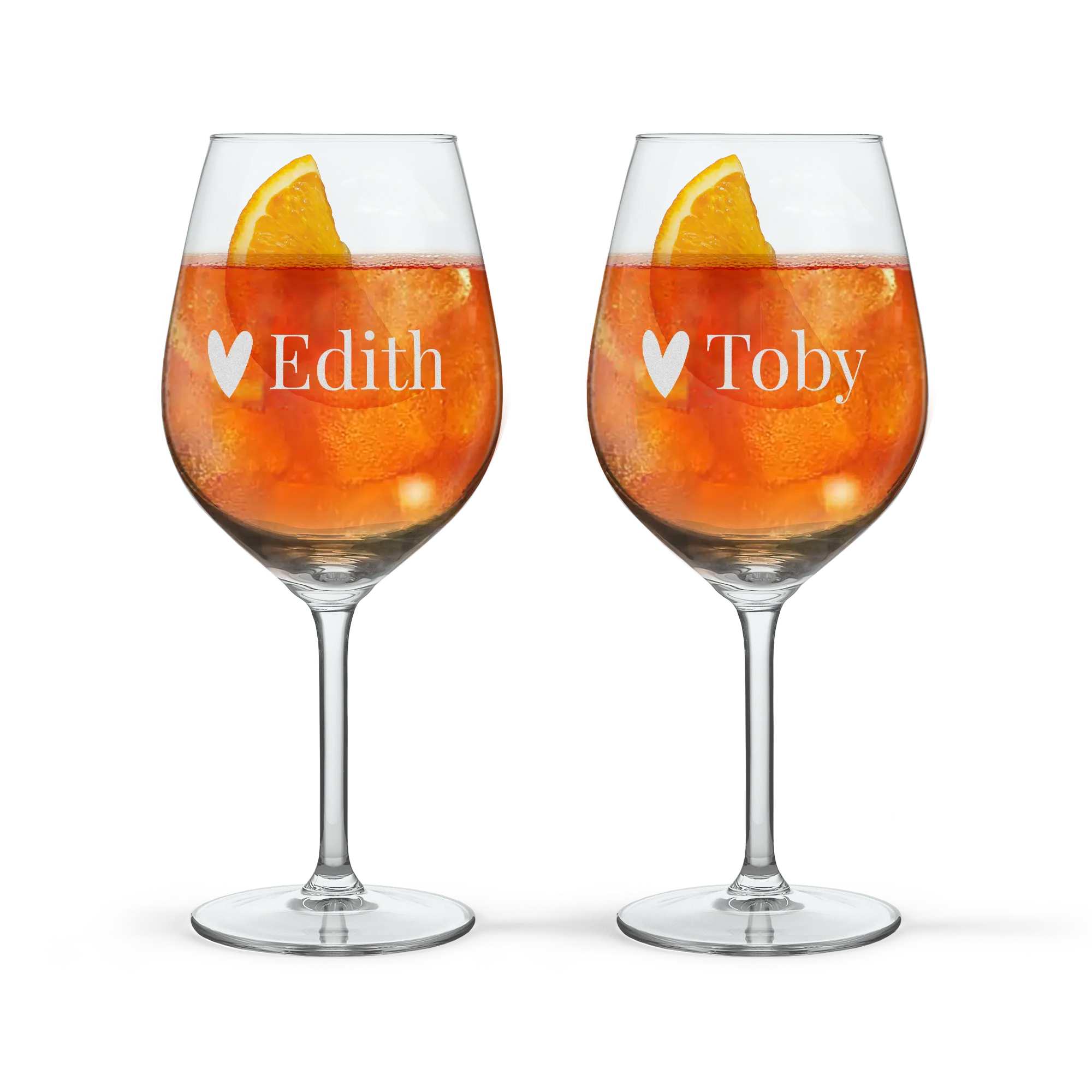 Aperol Spritz tastes best when enjoyed from personalised glasses. Have your glasses engraved with the name or text of your choice. Cheers!More information on the Aperol Spritz glasses:Quantity: 2Brand: Royal LeerdamType: L' EspritDiameter: 9 cmHeight: 22 cmWeight: 180 gramsCapacity: 530 mlPersonalisation: name or textPersonalisation method: high-quality laser-engravingEngraving colour: white, which means your gift will differ from the preview image shownAdditional information: dishwasher safeIf you are interested in placing a large order, please contact our business department for further information.