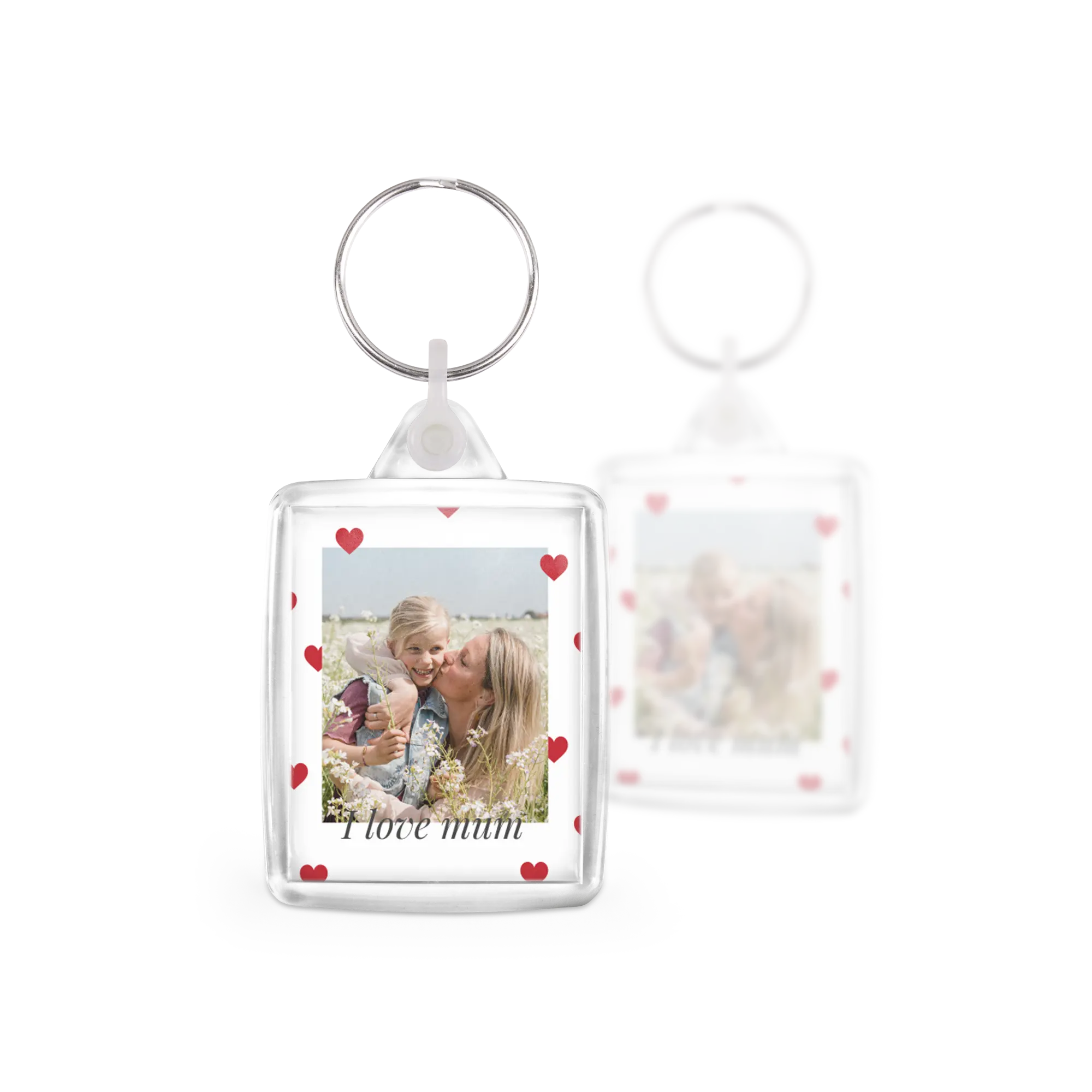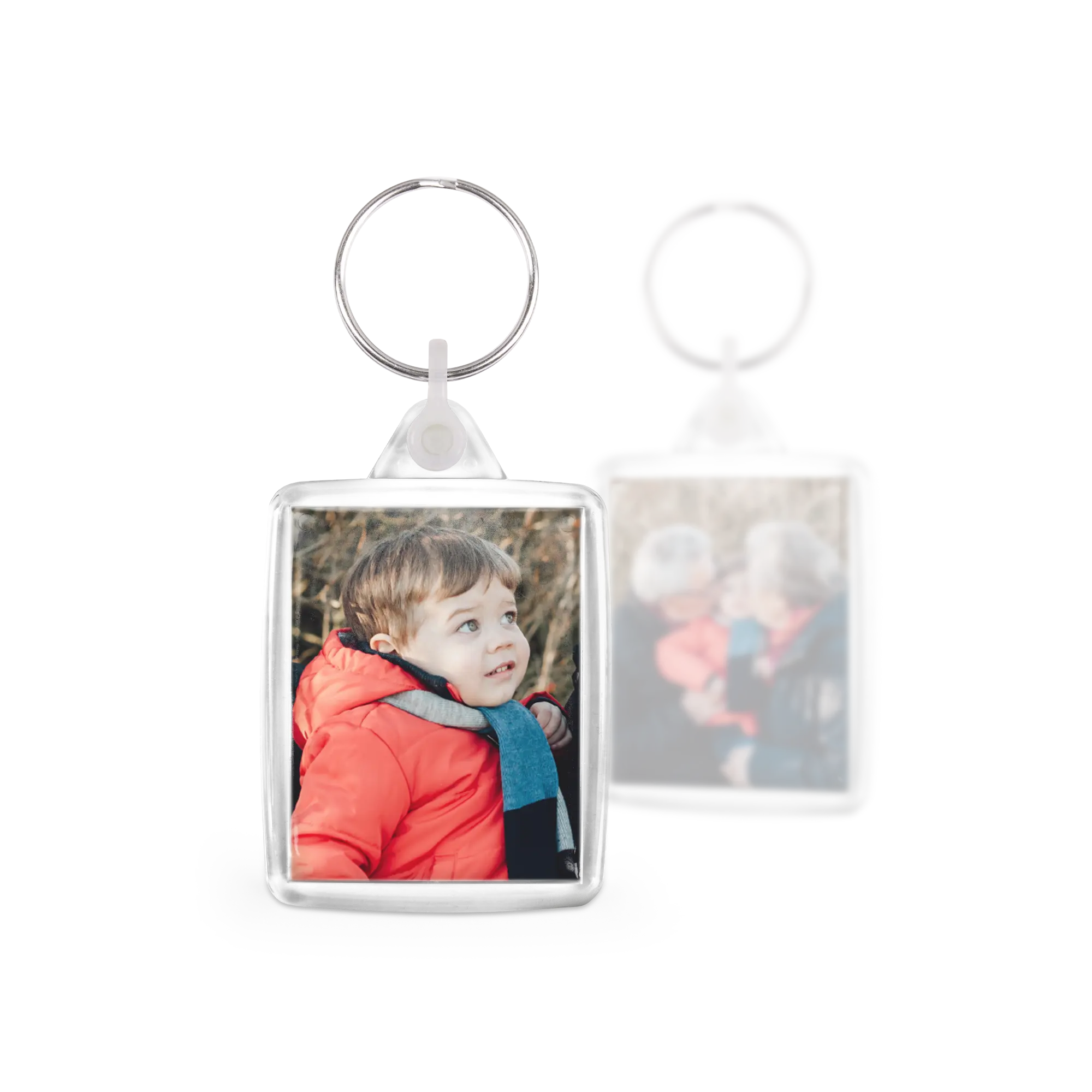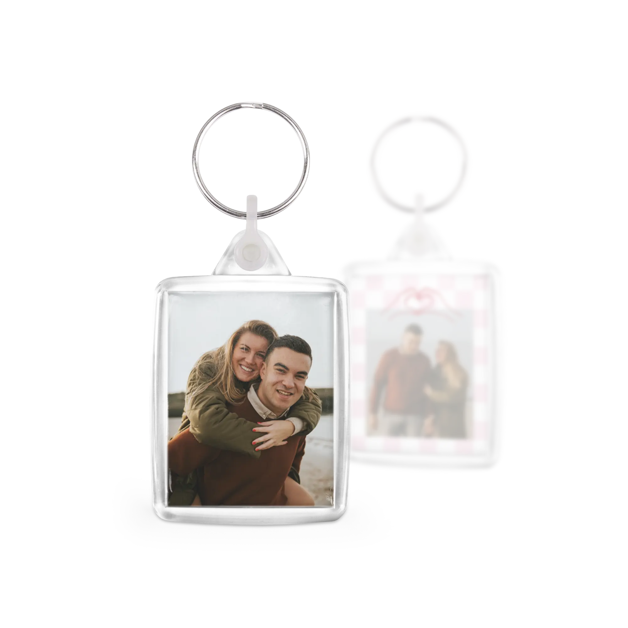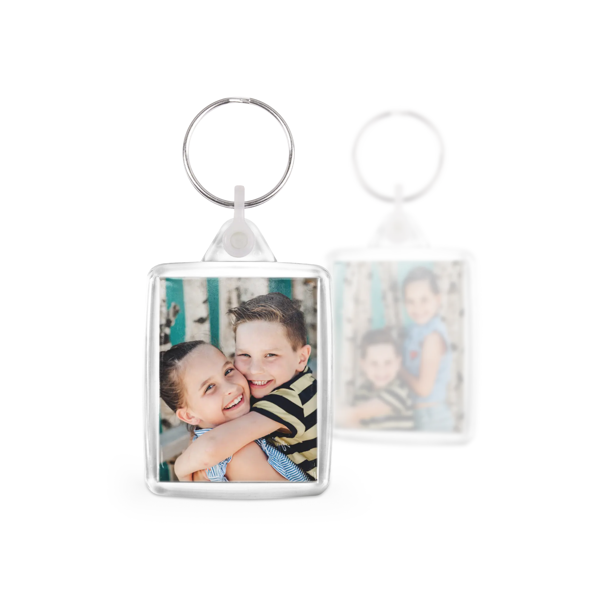 Rectangular keychains with photo. Your favourite photos displayed double-sided on the keychain. Lovely to look at — and practical too!More information on the printed set of keychains:Quantity: 3 pieces Material: high-quality, scratch-resistant plasticPersonalisation: double-sided photoPrinting: vibrant clarity and full colour Size of keychain: 4.1 x 9 x 0.6cmPrint size: 3.5 x 4.4cm