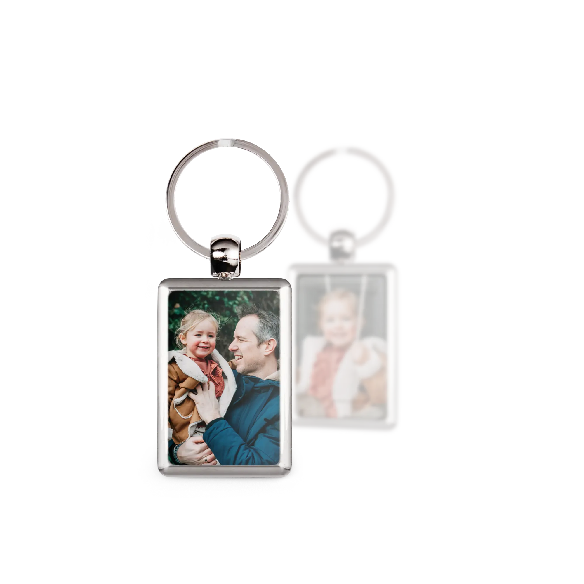 A key ring for Father’s Day! Surprise your dad with a practical gift that also looks amazing with your favourite photos.More information on the key ring: Shape: rectangular Material: Stainless steelDimensions: 8,3 x 5 cm (incl. ring)Personalisation: with photo or text Dimensions print: 4 x 2,5 cm Amount of photos: 2Print: picture perfect and in full colour