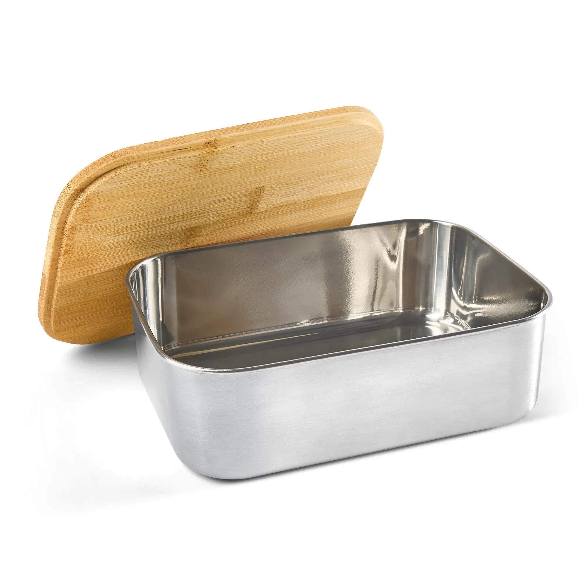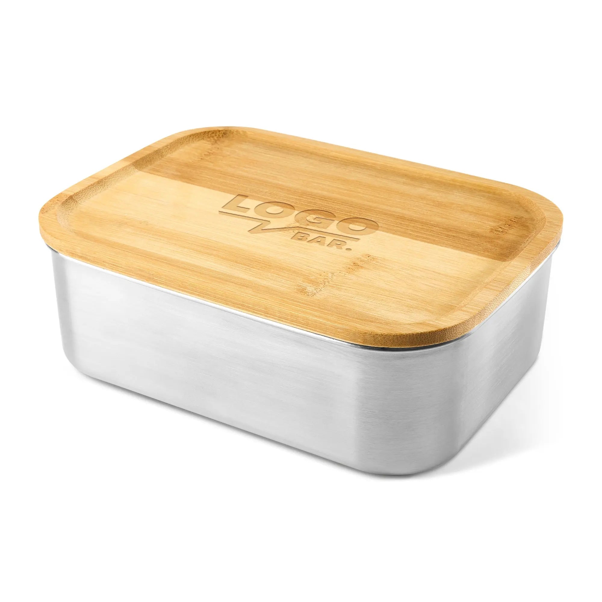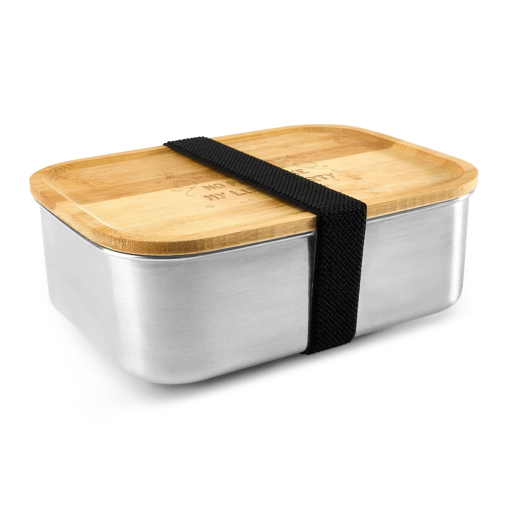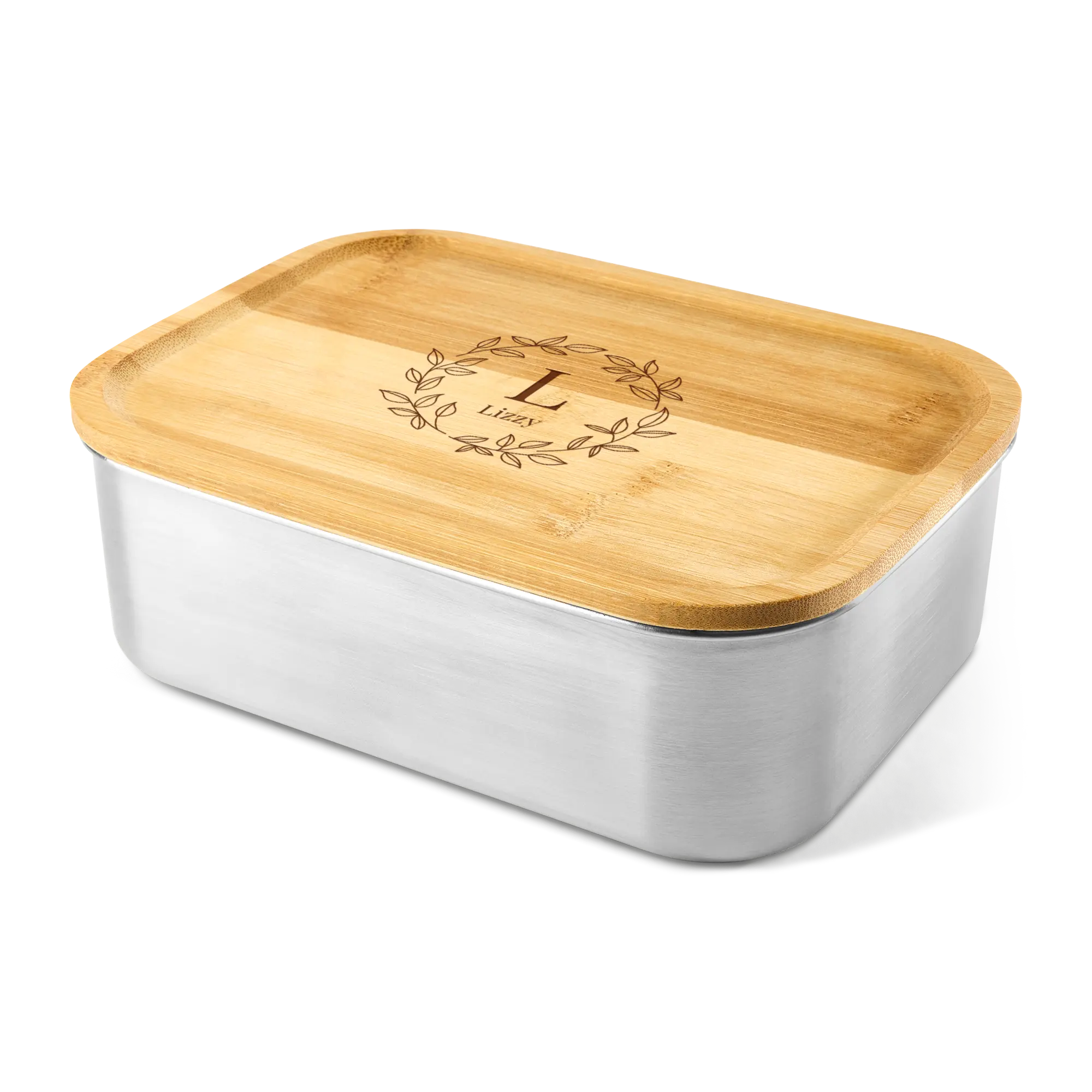 A personalised lunch box with name or text. Stainless steel with bamboo lid.More information on the lunch box:Lid material: bambooBox material: stainless steelDimensions: 19 x 14 x 6.5 cmPersonalisation: with name or textPersonalisation method: high-quality engravingEngraving colour: woodAdditional information: FSC-certified wood, hand-wash onlyPlease note that wood is a natural product, which means your gift may look different than shown in the preview images. For technical reasons, it is not possible to add Cyrillic, Asian, Arabic, Greek, Turkish or special characters.