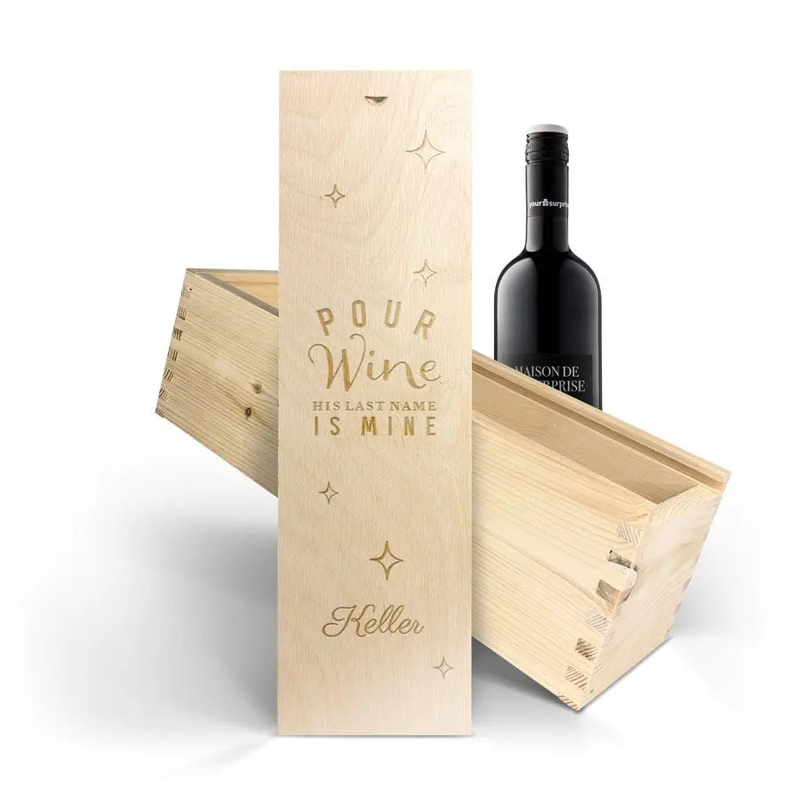 Delicious Maison de la Surprise wine in deluxe wooden case featuring the name and/or text of your choice. Create yours now!