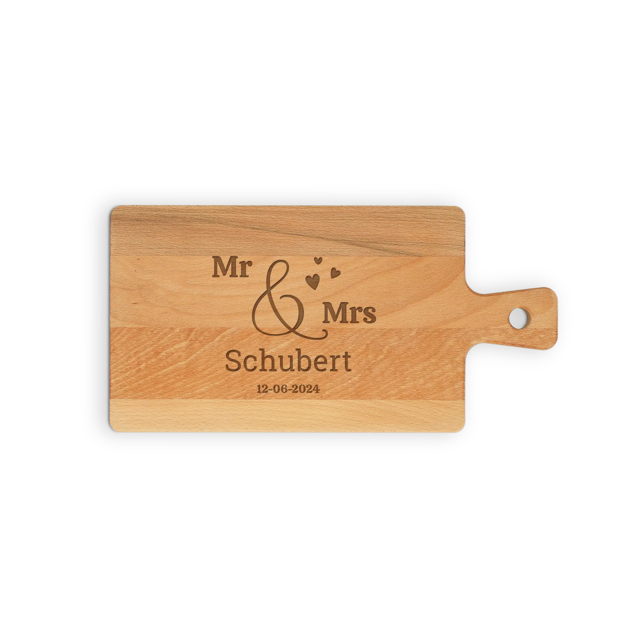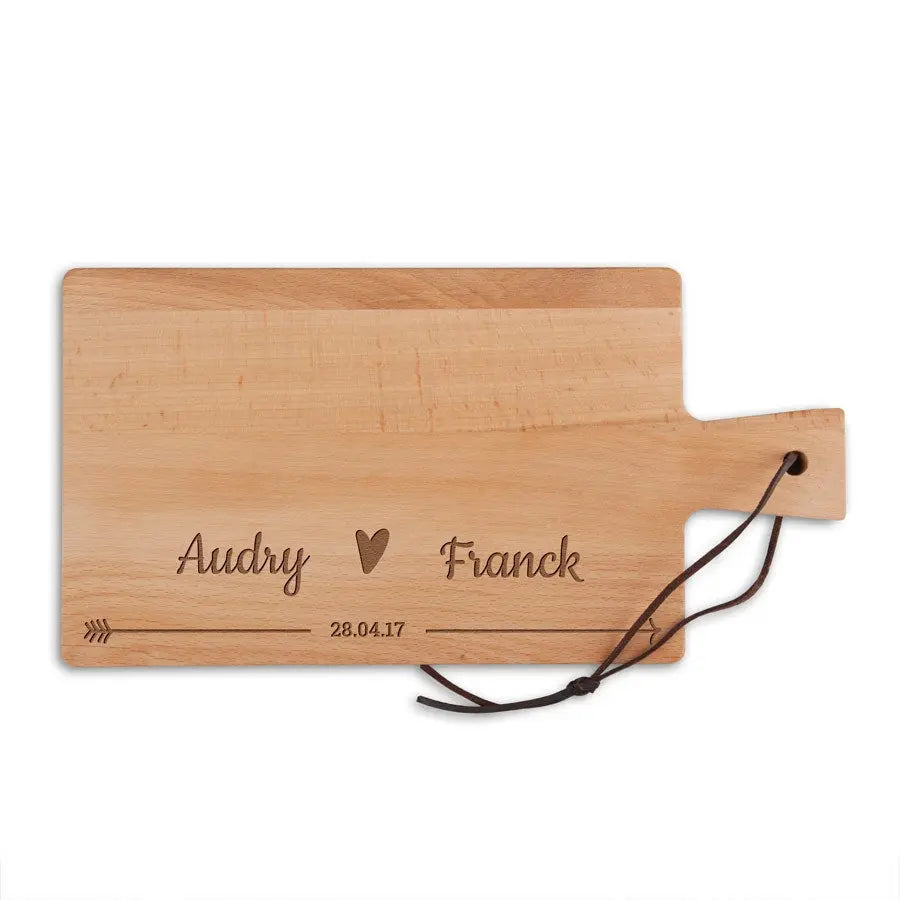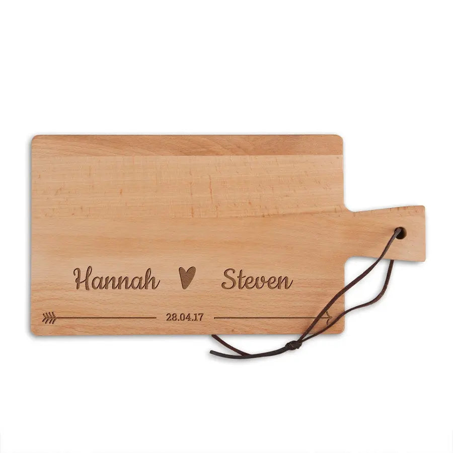 Create a unique beech wood serving board. A personal gift with name, text and designs. In different formats!