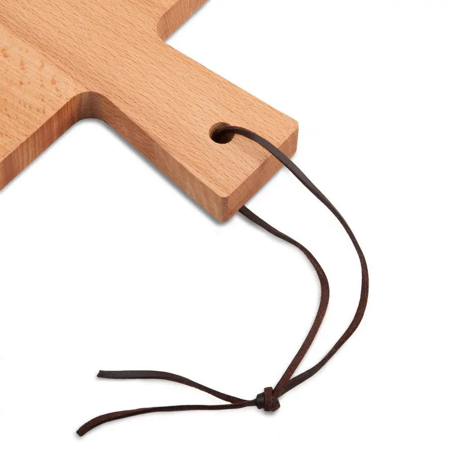 More information about the wooden serving platter:Material: high-quality solid beech wood Finish: Oiled and includes a leather cord Dimensions: 31,5 x 16 x 1,5 cm Weight: +/- 450 grams Personalisation: text engraving Colour engraving: wood Extra: - Made with FSC-certified wood - Not suitable for the dishwasher!- Wood is a natural product. This means that your gift may differ slightly from the example photo.Unfortunately, for technical reasons, it is not possible to process Cyrillic, Turkish or special characters.