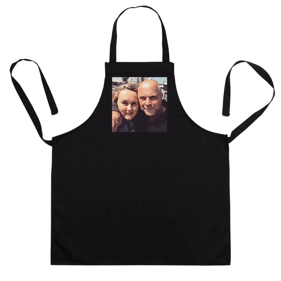 A lovely kitchen apron with your own photo and text! For women and men!More information on the personalised kitchen apron:Colour: blackMaterial: 100% cottonDimensions: 80 x 70 cmPersonalisation: with photo and/or textPrint: 20 x 20 cm, full colour in HD qualityExtra:a little mess is allowed! The apron can be washed at 40°C