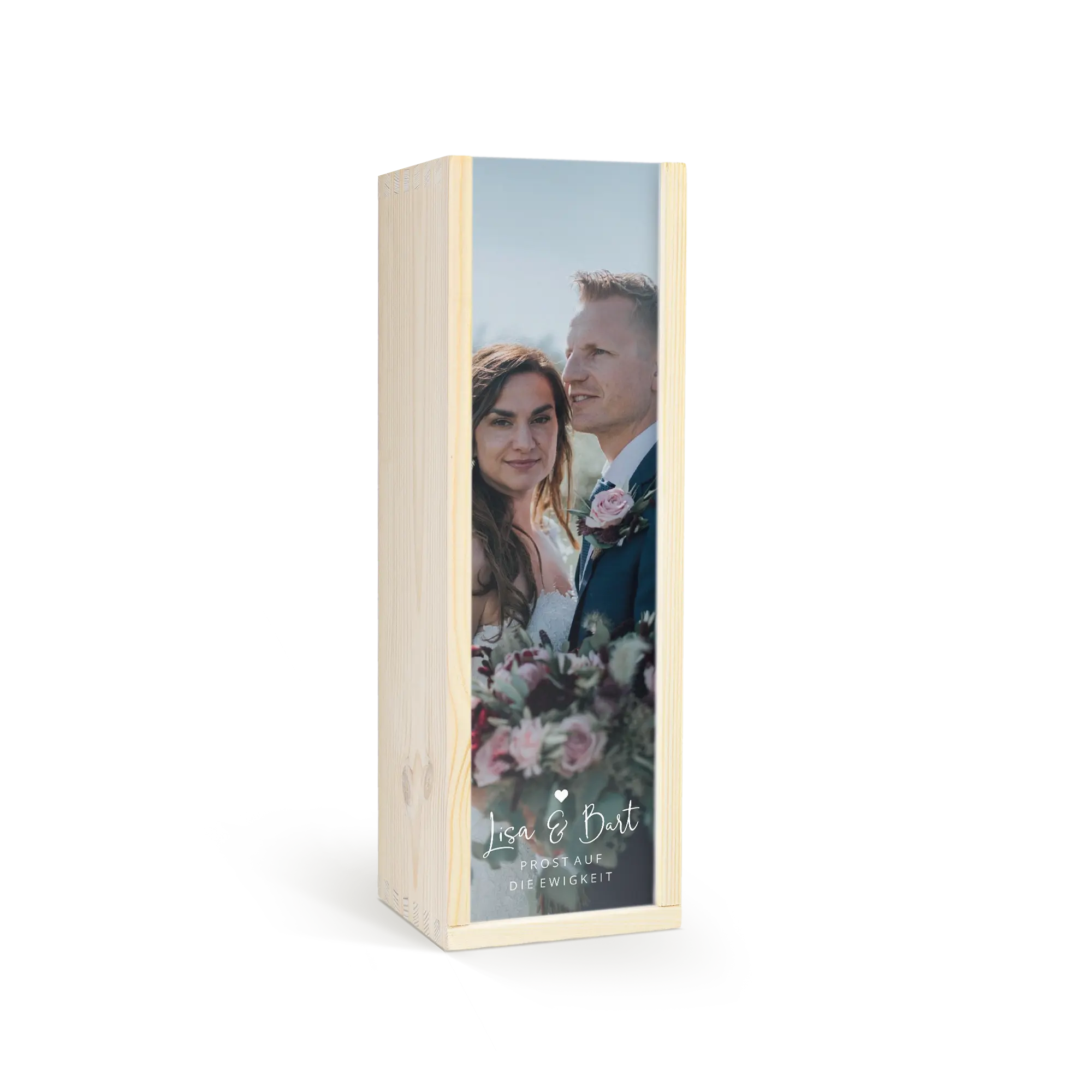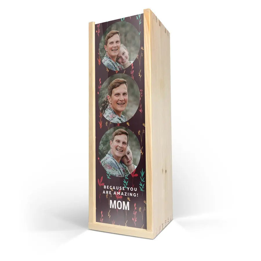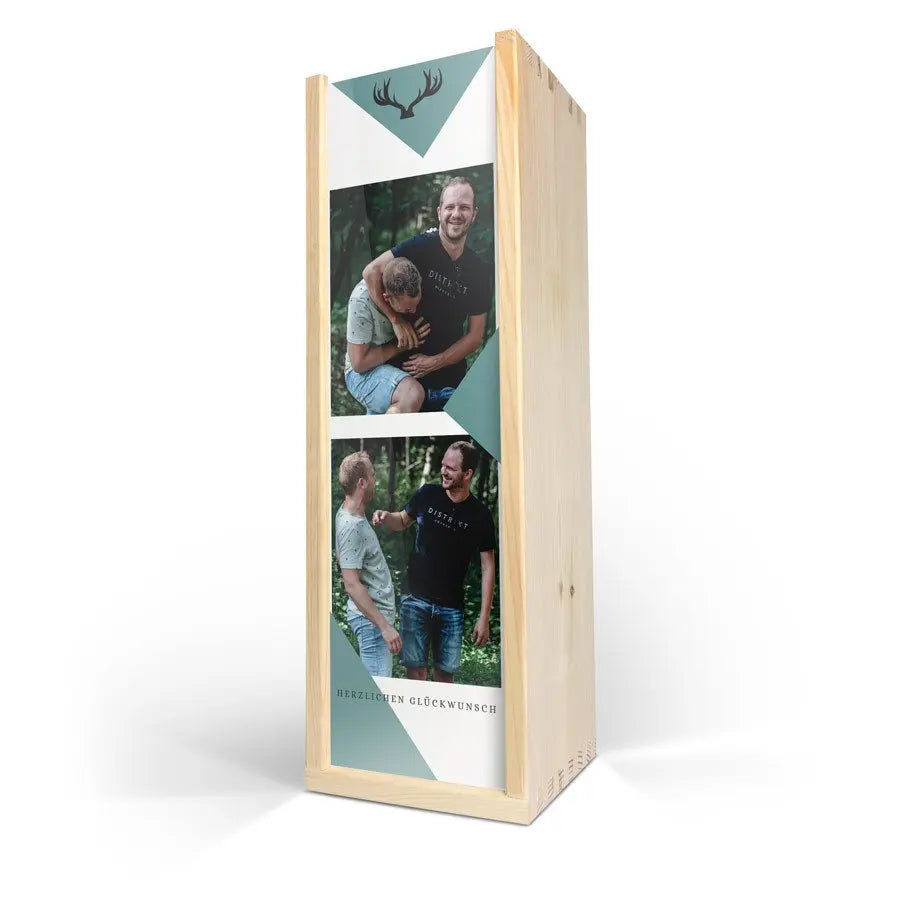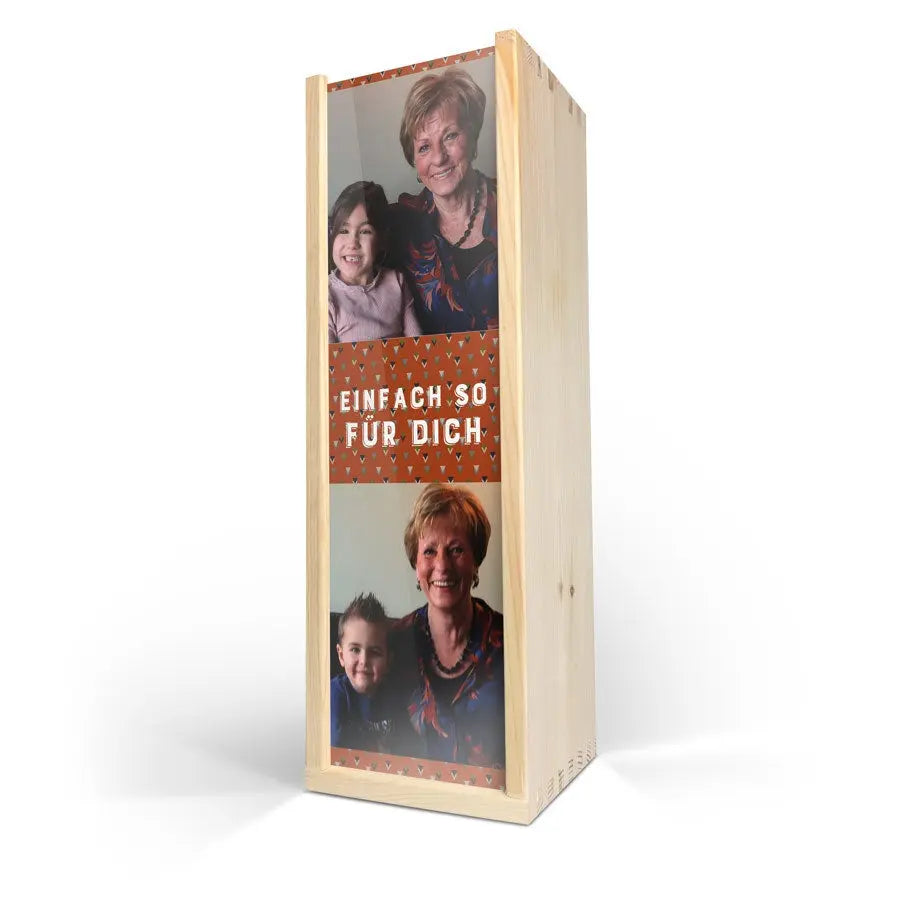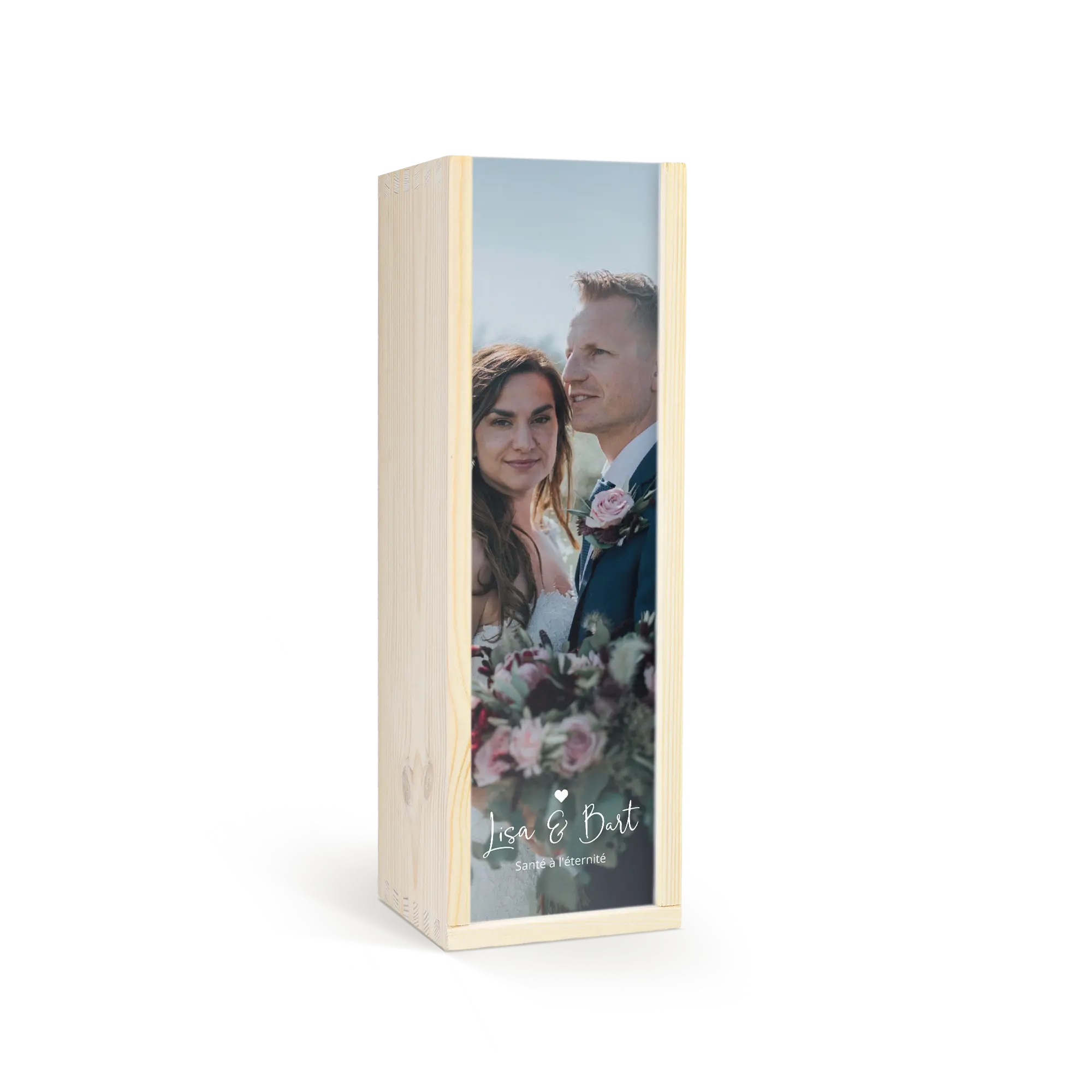 Delicious Maison de la Surprise wine in deluxe wooden case featuring the photo, logo and/or text of your choice. Create yours now!More information on the deluxe wooden case:Personalisation: with photo, text and/or logoPersonalisation placement: on wooden case lidPrint: picture-perfect and in full colourCase dimensions: 36.5 x 12 x 11 cmLid dimensions: 35.6 x 10.2 x 0.3 cmAdditional information: the deluxe wooden case is made with FSC-certified woodMore information on the wine:Brand: Maison de la SurpriseType: whiteContents: 750 mlCountry of origin: FranceGrape: ChardonnayCharacter: Maison de la Surprise Chardonnay has notes of jasmine, white peach and citrus. Pairs well with salads and seafood.