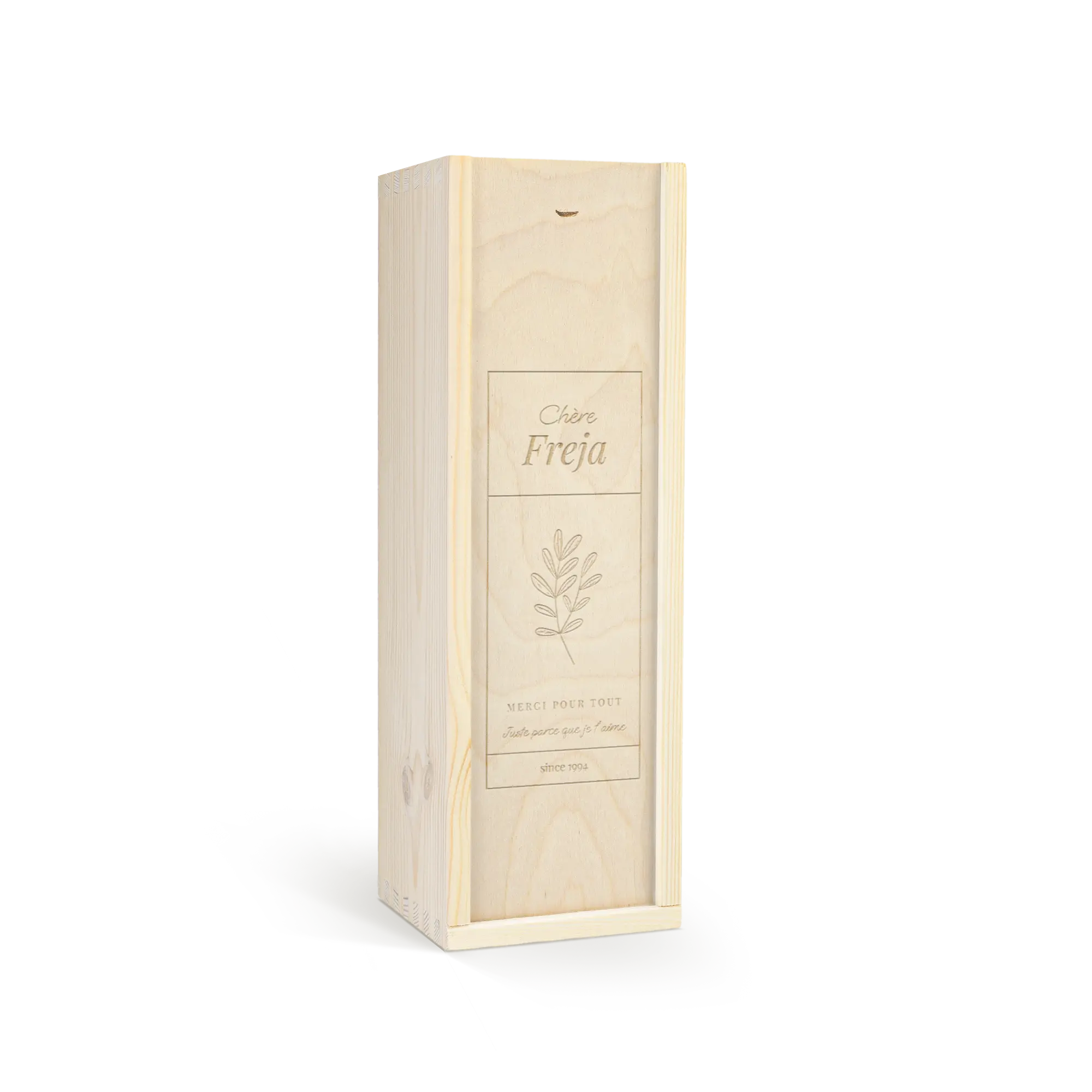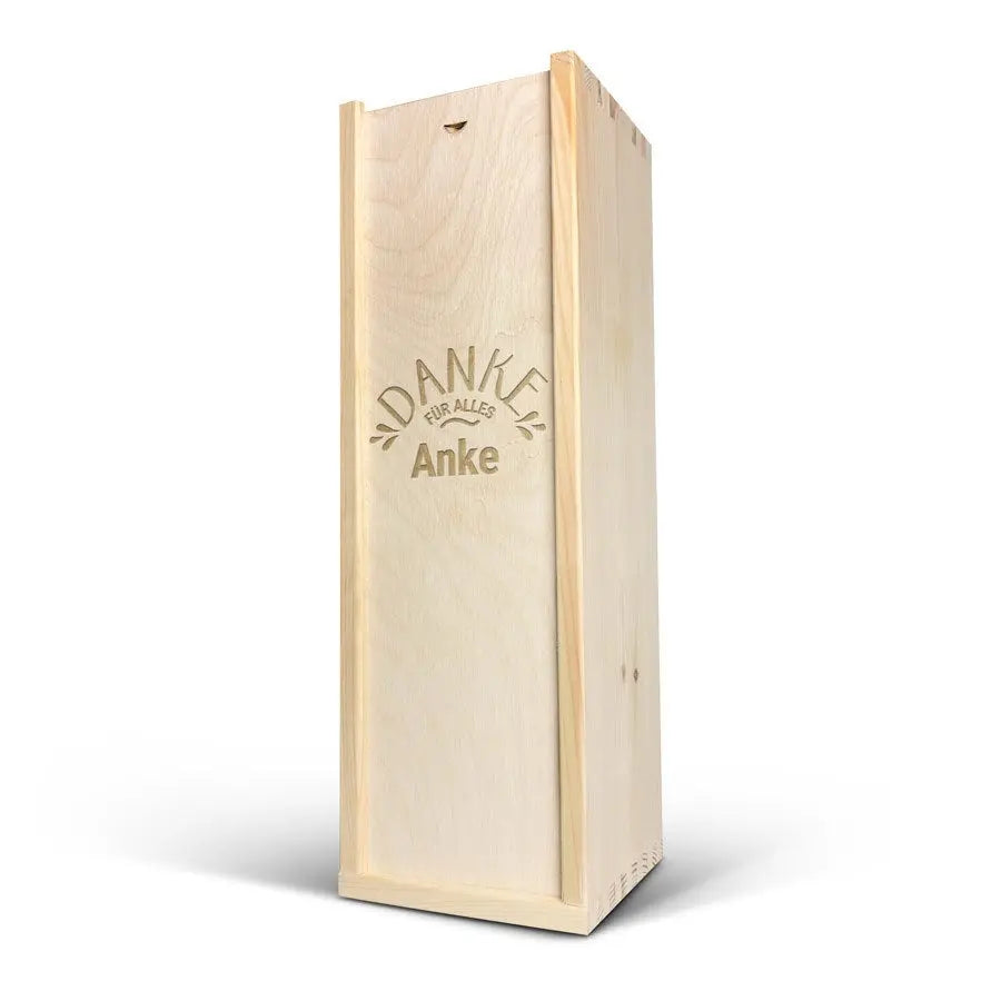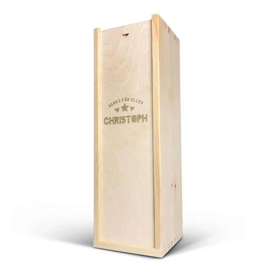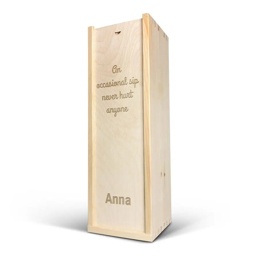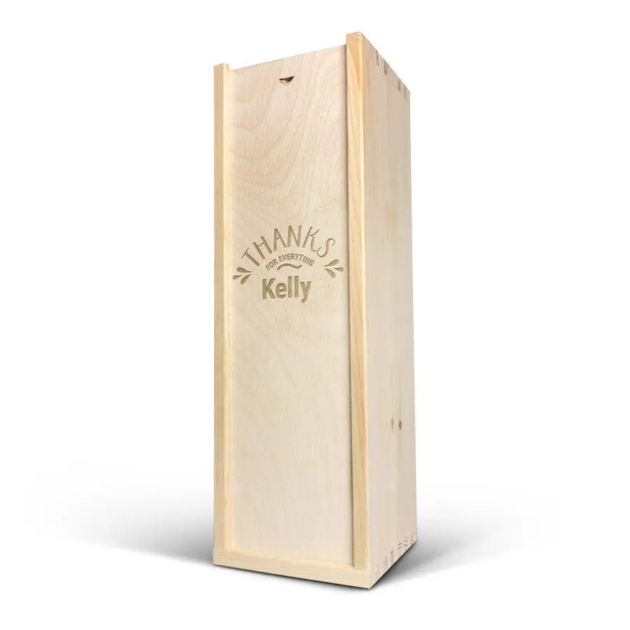 A delicious bottle of Cava Palau Gazo sparkling wine in engraved case. Personalise as you wish with your text in a unique design!More information on the luxurious wine case:Personalisation: with name or textPersonalisation placement: on the wooden case lidPersonalisation method: high-quality laser-engravingCase dimensions: 36.5 x 12 x 11 cmLid dimensions: 35.6 x 10.5 x 0.3 cmExtra: the wooden case is FSC-certifiedMore information on the sparkling wine:Brand: Palau GazoType: cavaContents: 750 mlCountry of origin: SpainGrape: Parellada, Macabeo and Xarel-LoCharacter: Fine bubbles, fruity with aromas of green apple. A soft, round aftertaste. Perfect for parties