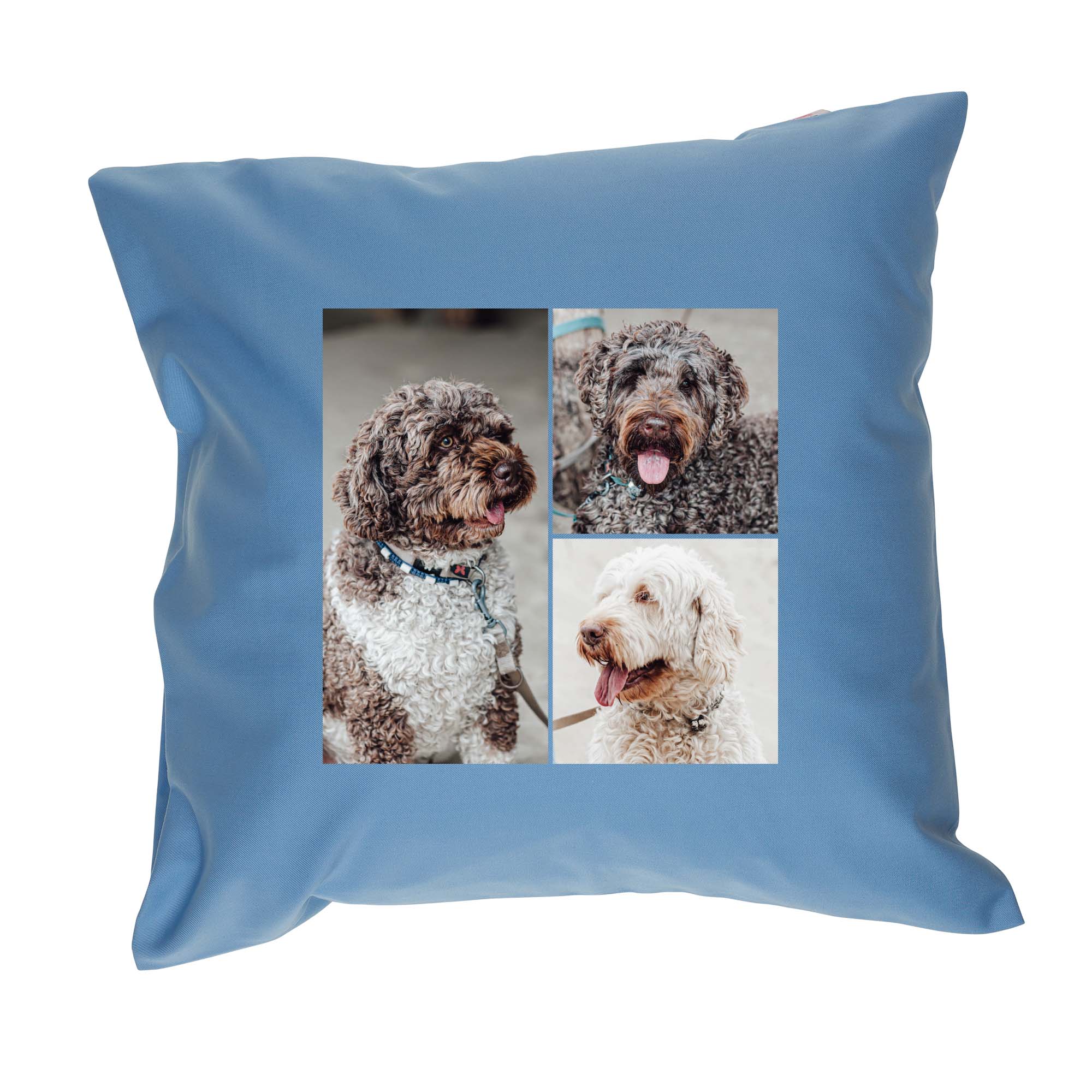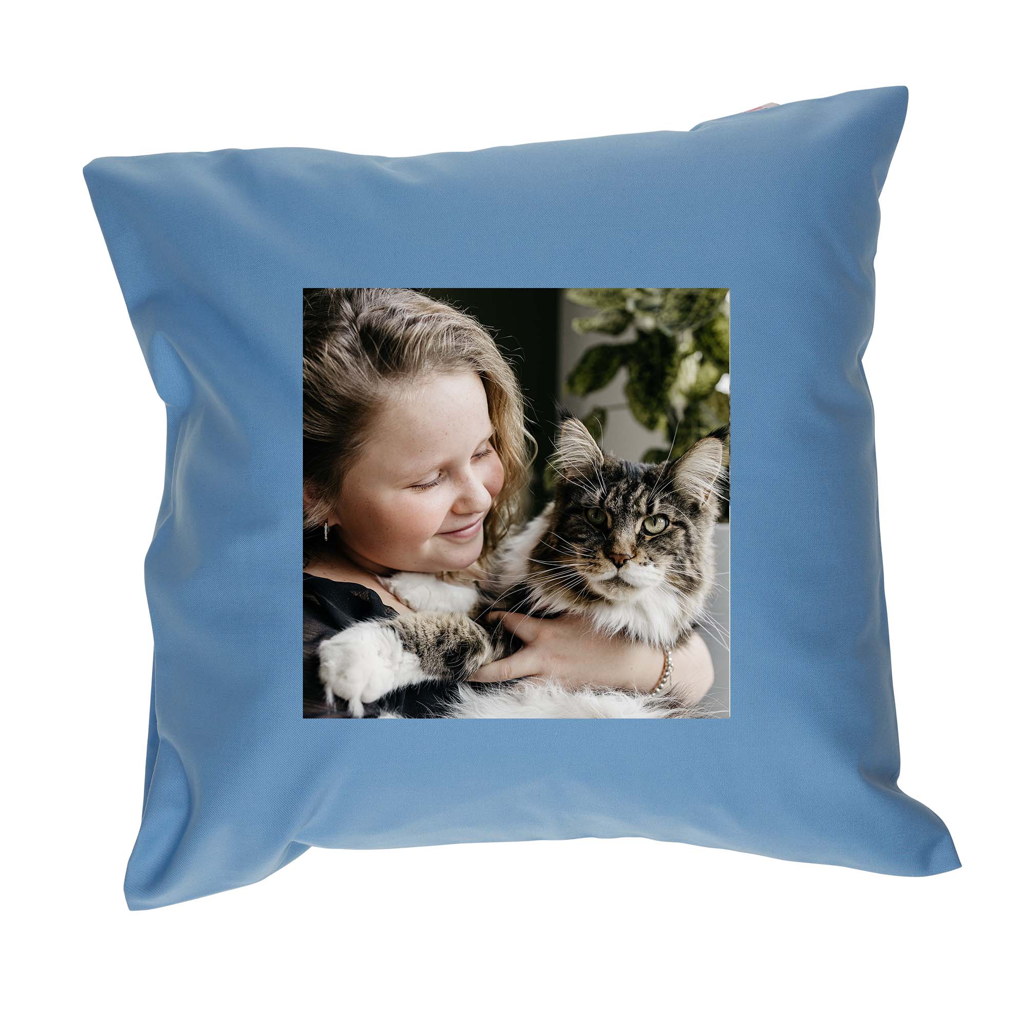A cushion featuring your favourite photo. Available in a selection of different colours and designs.