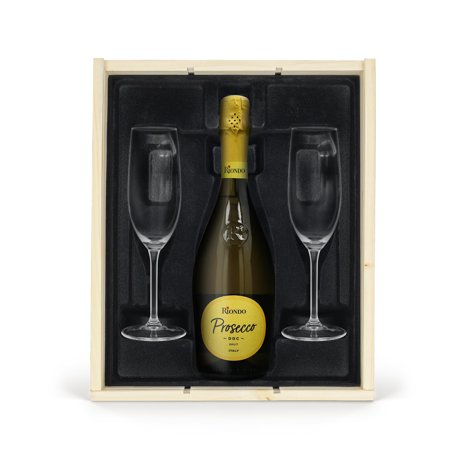 Champagne gift set with glasses - Riondo Prosecco Spumante - Engraved lid