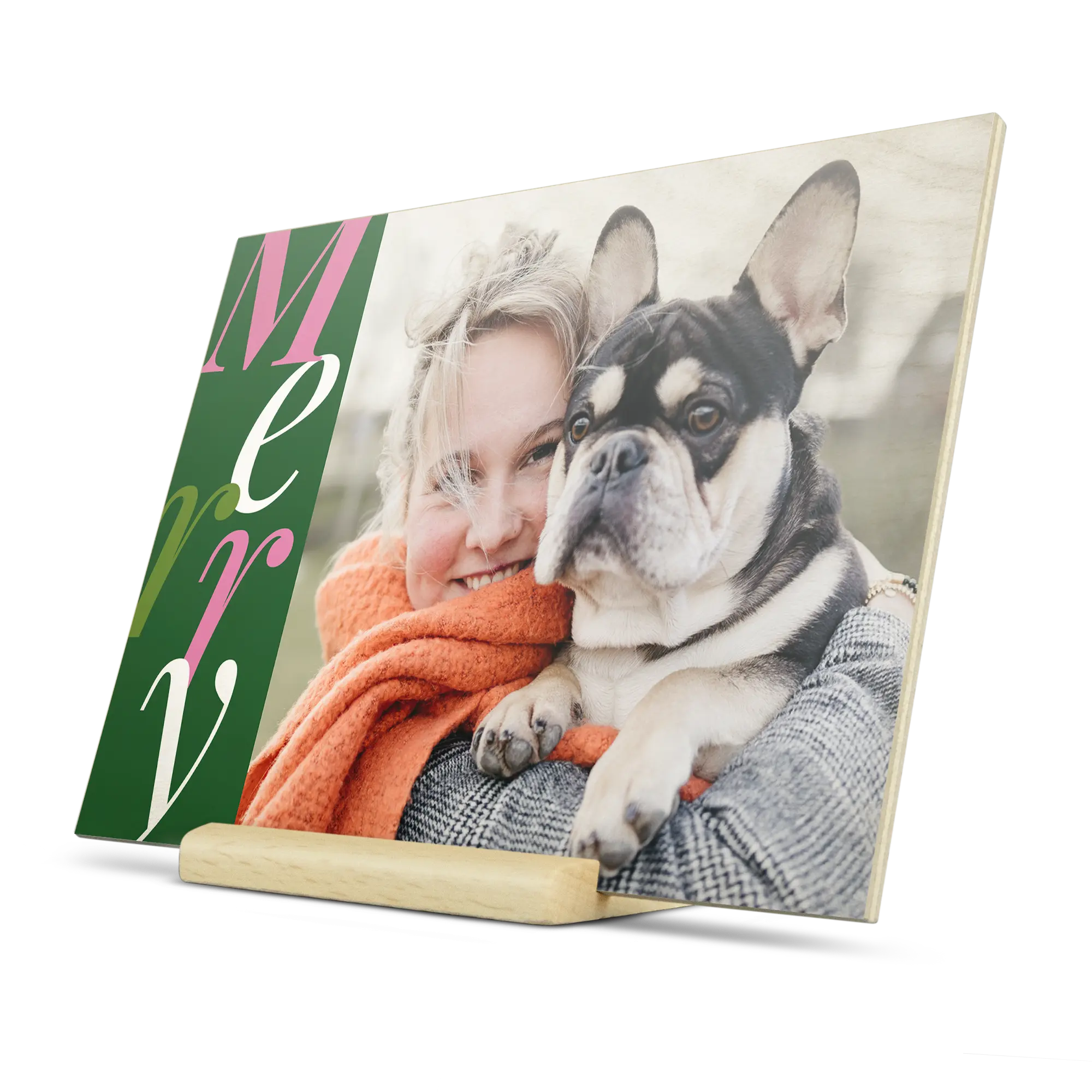 Wooden greeting card with a personal message. Printed with your own design, photo or text.