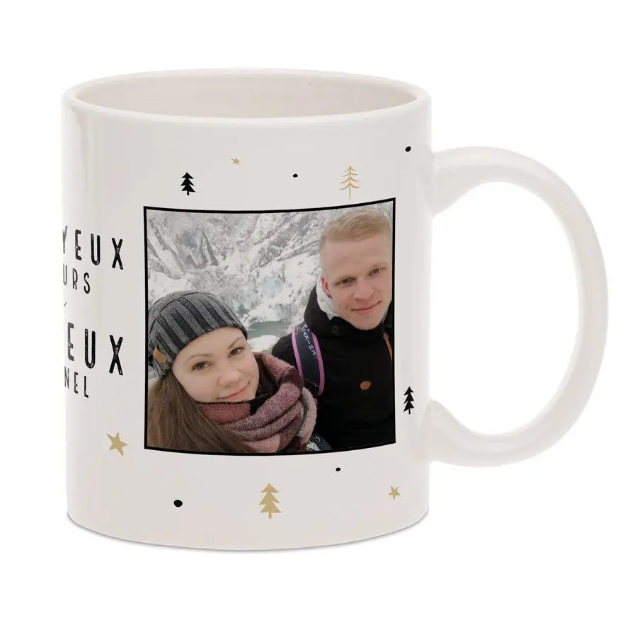 Have a unique Christmas mug printed with photo and/or text. A truly original Christmas gift for young and old. Dishwasher-proof.More information on the personalised Christmas mug:Colour: white inside and handleMaterial: high-quality glossy ceramicHeight: 9.5 cm / 3.7"Diameter: 7.5 cm / 3"Capacity: 325 ml Personalisation: with photo and/or textPrint: high quality and in full colourExtra: the mug is dishwasher and microwave safe