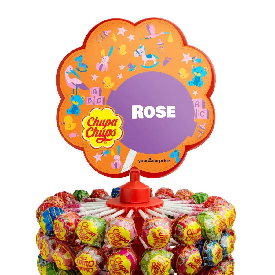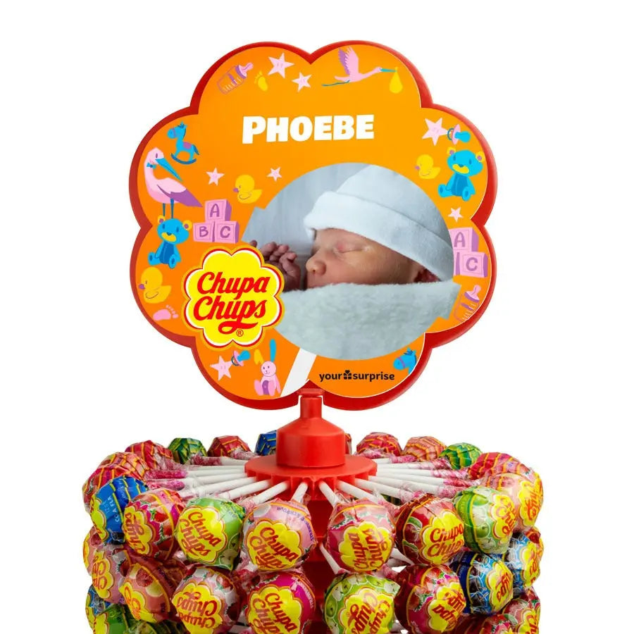 A tasty gift with no less than 200 Chupa Chups lollipops! Personalise yours with the photo, name and/or text of your choice now.More information on the Chupa Chups tower:Quantity of lollipops: 200Flavours: strawberry, cherry, apple, cola, strawberries & cream and raspberry & vanillaTower dimensions: 50 x 21 cmPersonalisation: photo, name and/or textPrint: picture perfect and in full colourFor technical reasons, we are unable to print Cyrillic, Turkish, Asian, Arabic, Greek or any other special characters.Ingredients for strawberry, orange, cherry and raspberry flavours: sugar, glucose syrup, fruit puree (3%) (apple, cherry, raspberry, pineapple, lime, lemon, strawberry, peach, banana, orange, blueberry, blackberry, mango, watermelon, kiwi), acids (lactic acid, malic acid, citric acid), flavourings, colours (E100, E160c, E162, E163) Ingredients for cola flavour: sugar, glucose syrup, acids (lactic acid, malic acid, citric acid), flavourings, colour (E150d) Ingredients for strawberry-cream flavour sugar, glucose syrup, whey powder, fruit puree (3%) (apple, cherry, raspberry, pineapple, lime, lemon, strawberry, peach, banana, orange, blueberry, blackberry, mango, watermelon, kiwi), whole milk powder (2%), cocoa butter, colour (E162), flavourings (for vanilla flavour): sugar, glucose syrup, whey powder, whole milk powder (2%), cocoa butter, flavourings, colour (E100).
