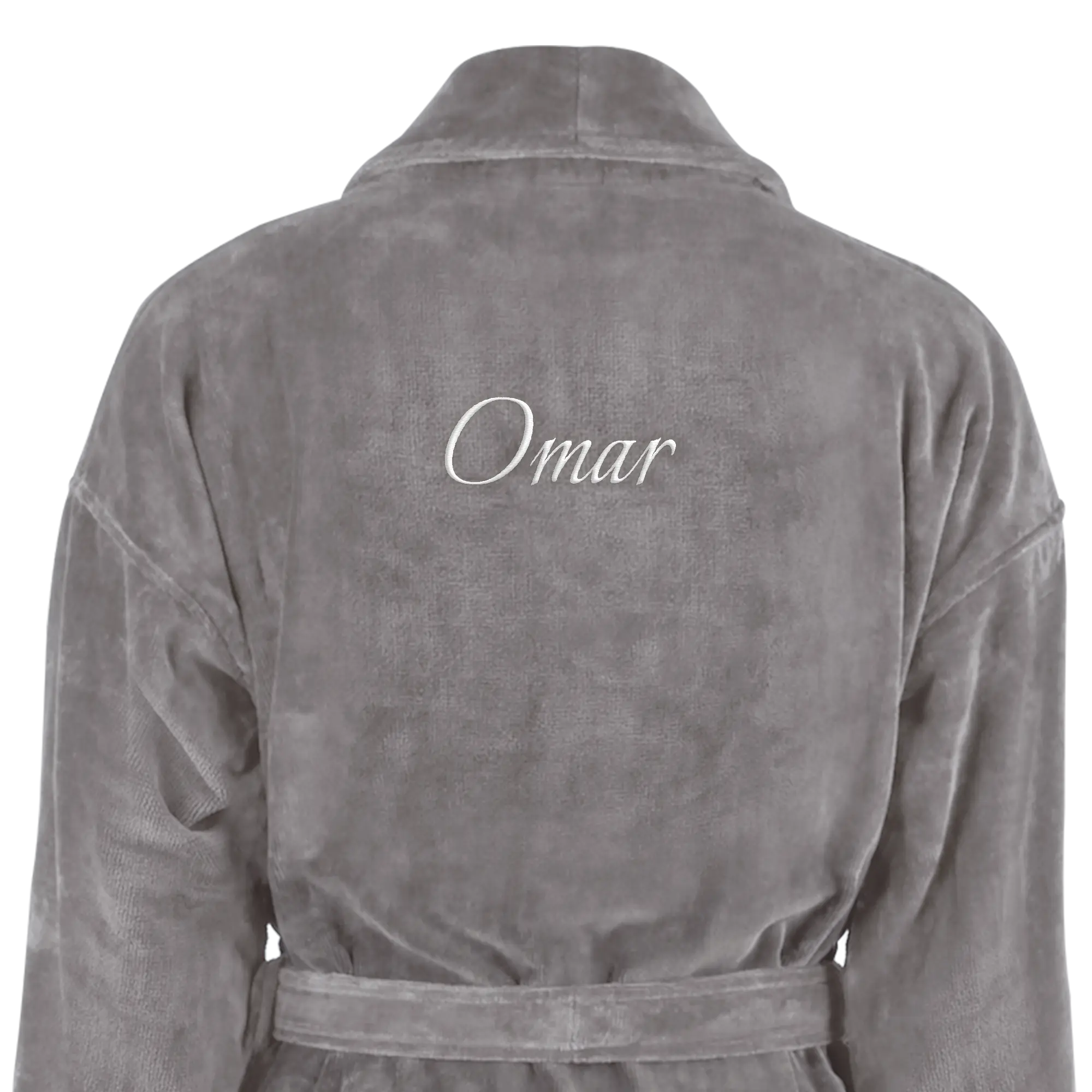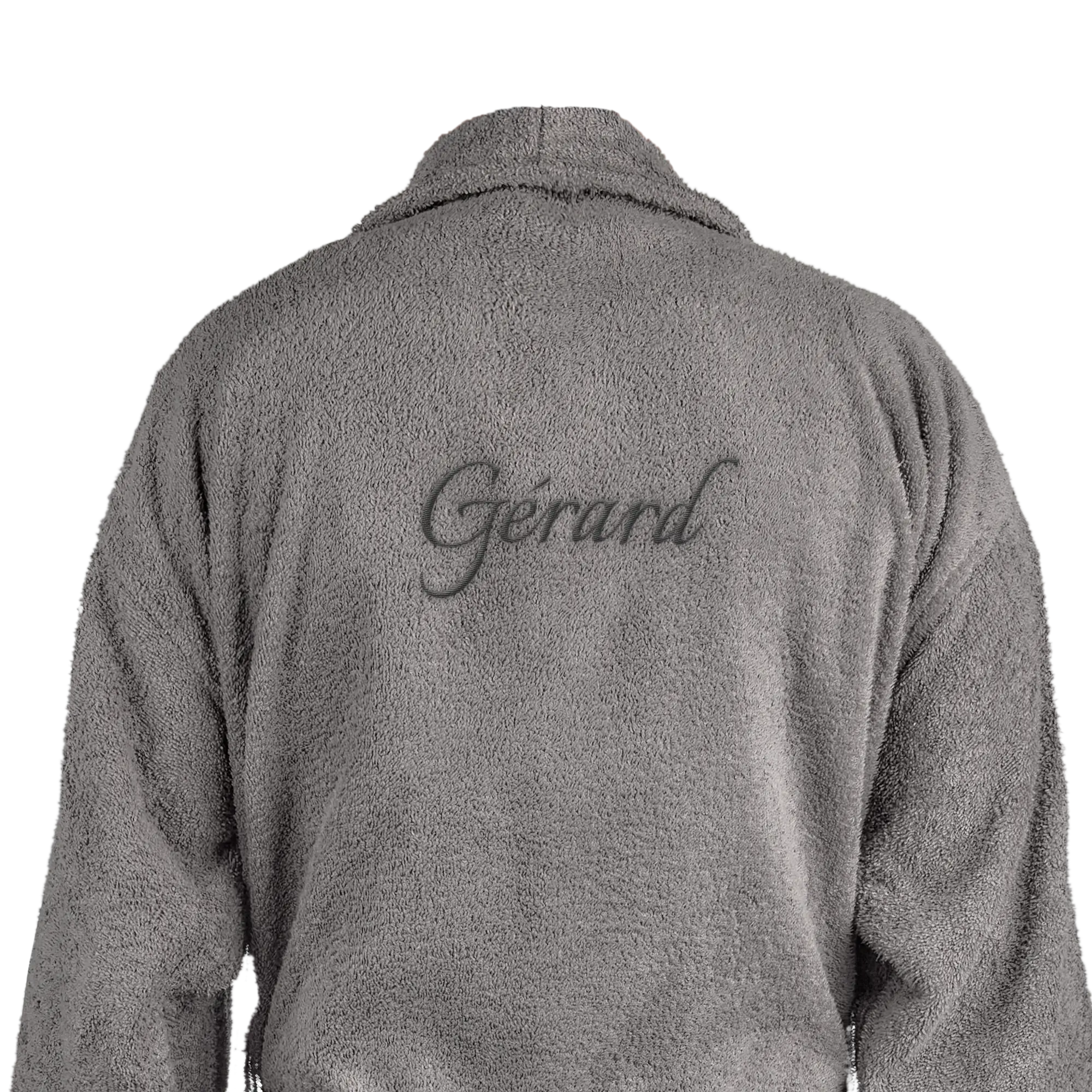 A very soft and original bathrobe embroidered with your own text or name! A classic bathrobe for men made of 100% cotton terry cloth.