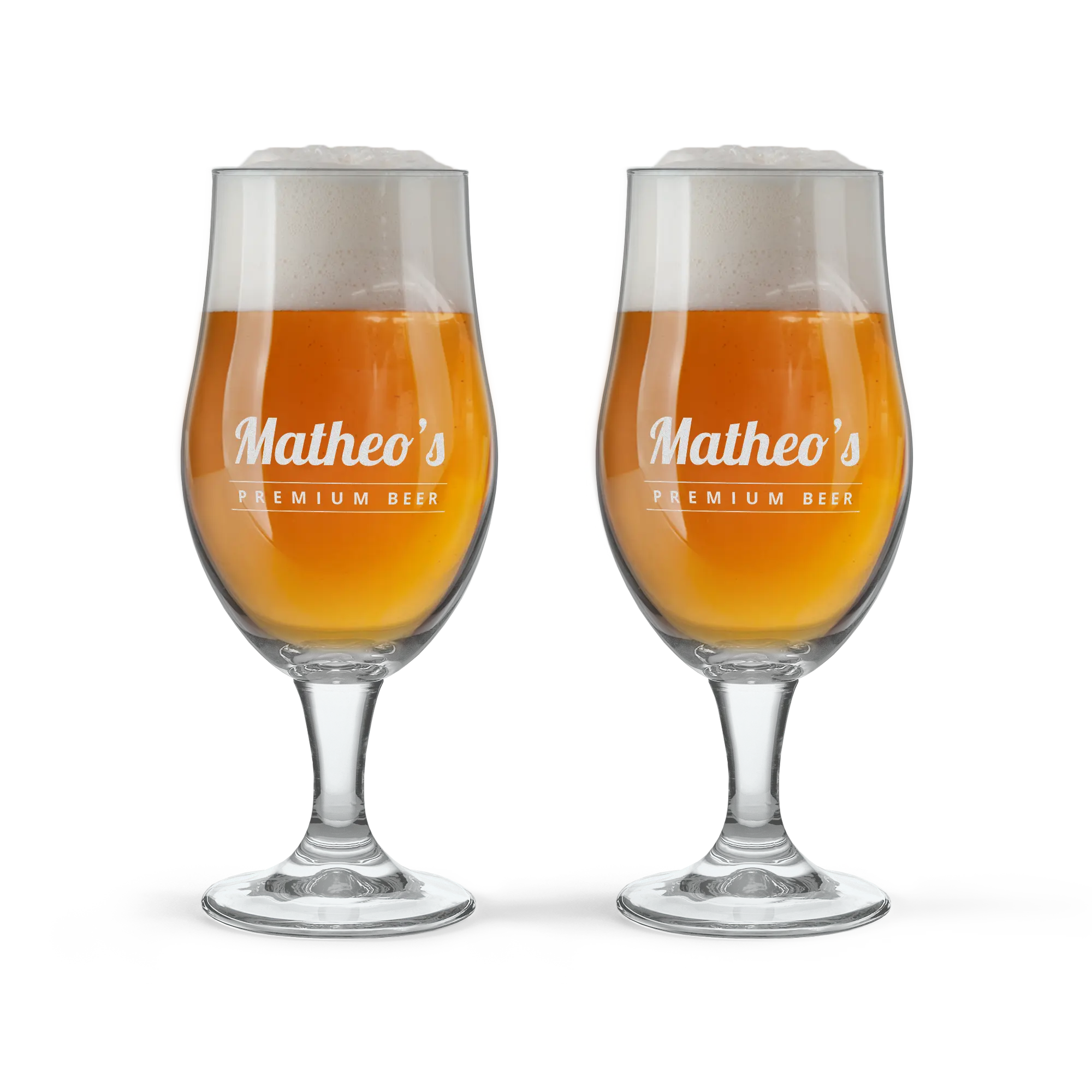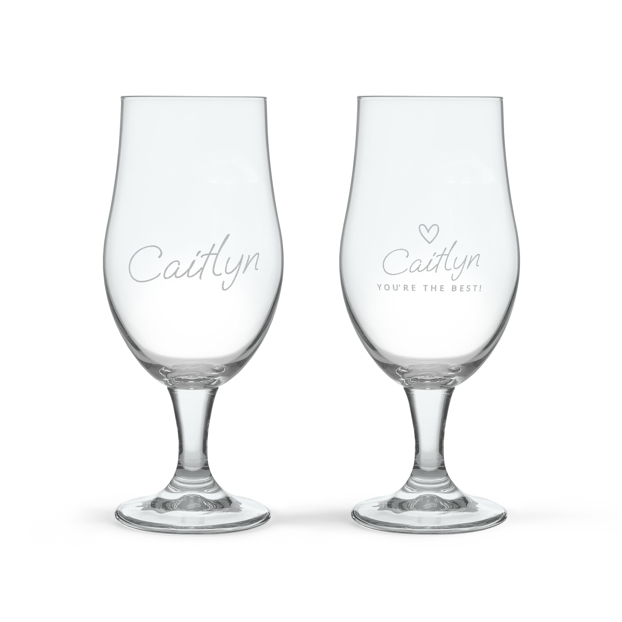 Personal beer glasses on feet, engraved with the name or text of your choice!