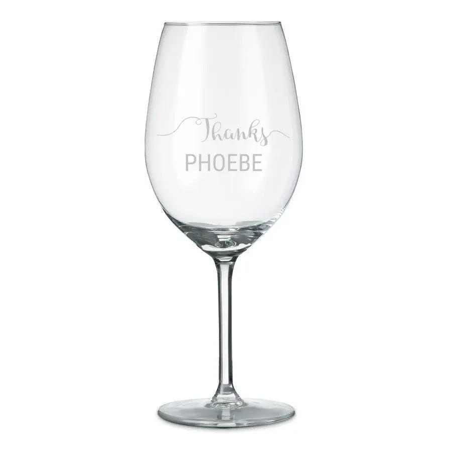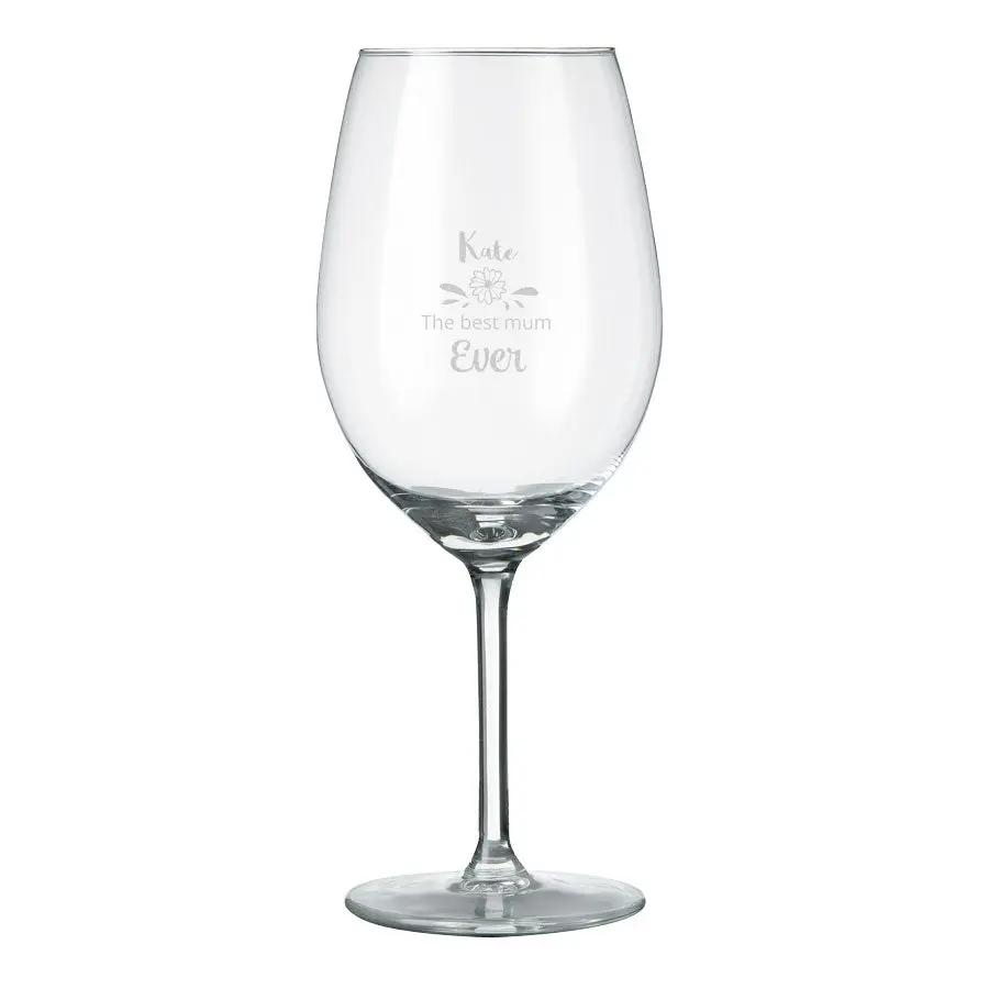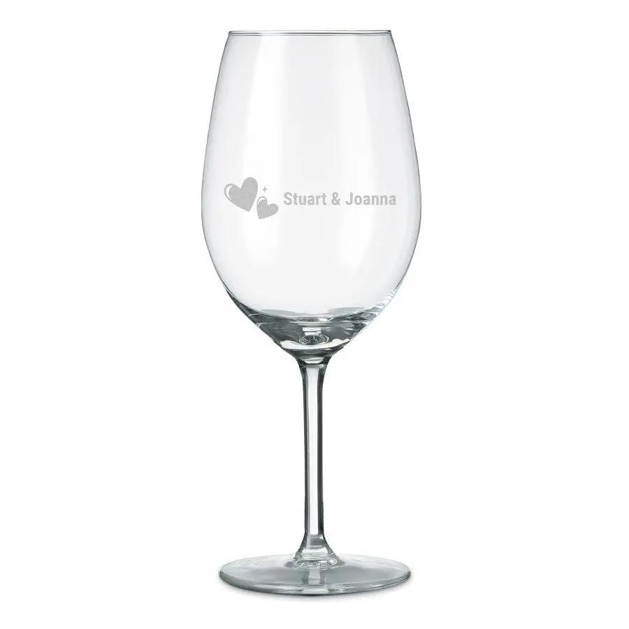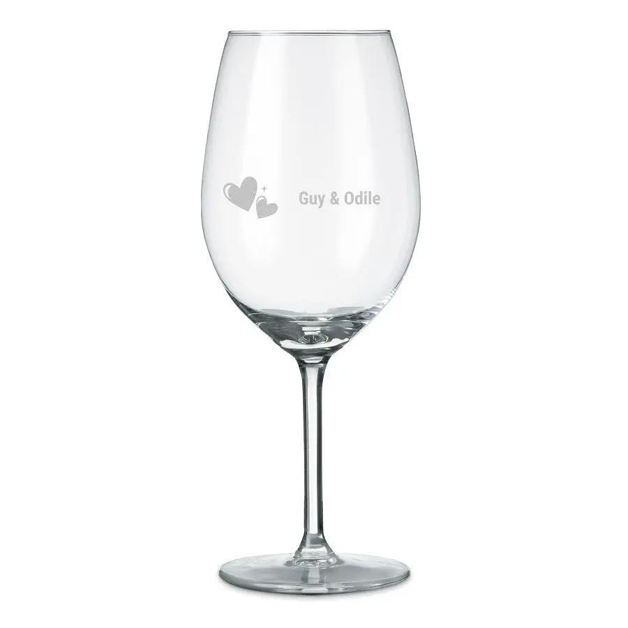 Beautiful wine glasses engraved with your own text or name.Additional information:Brand: Royal Leerdam Type: L'Esprit Engravement: white, the end-result may differ from the image shown Glass Diameter: 9cm Glass Height: 22cm Weight: 180 gram Volume: 53cl Wine: red Personalisation: name or textPersonalisation method: high quality laser engravingExtra: Dishwasher safeDo you want to engrave a logo on a glass, or order 18 or more glasses? Please contact our fantastic B2B team