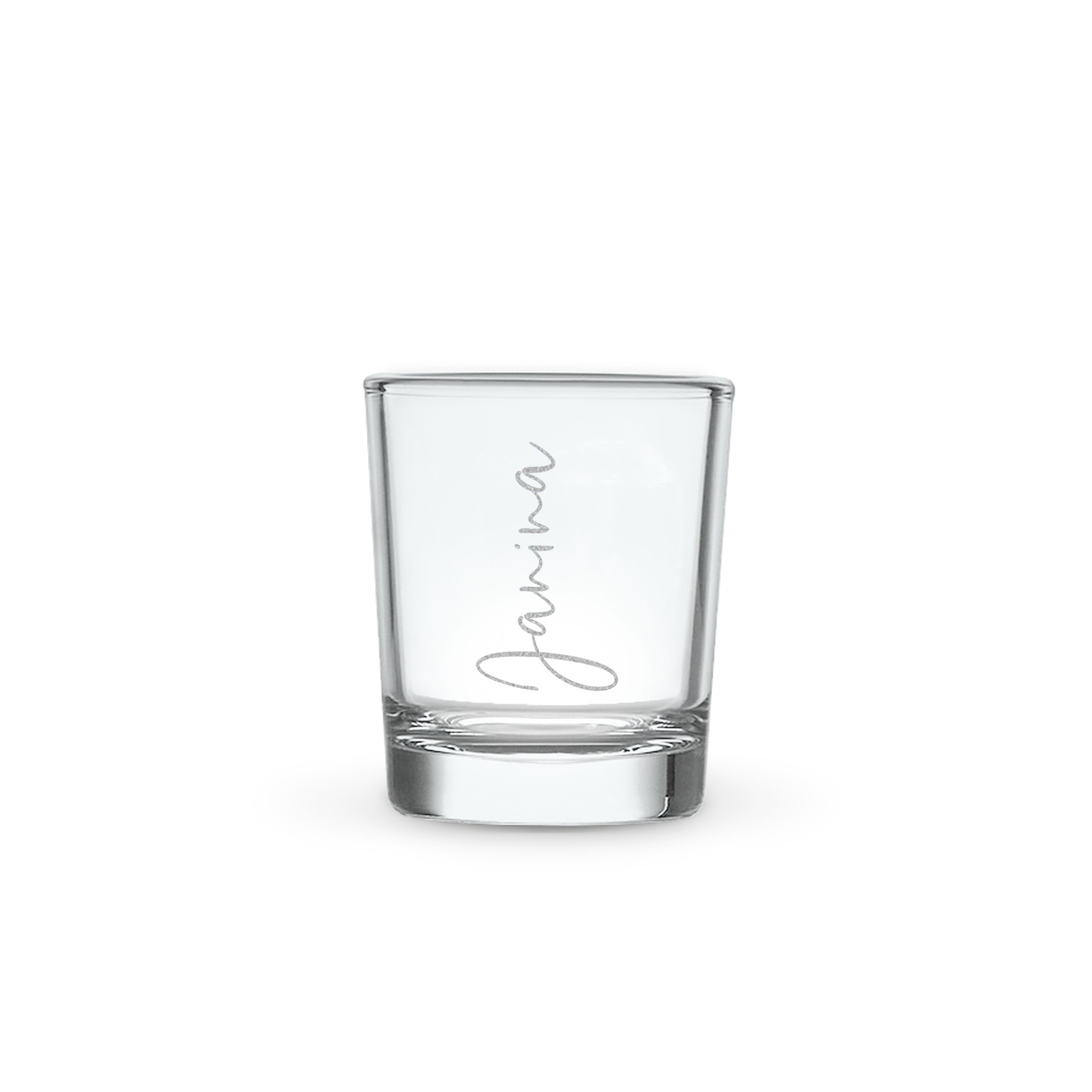 Have a shot glass engraved with a name or text. A unique and personal gift for those who love a shot in time.More information on the engraved shot glass:Diameter: 4,5 cm Height: +-5 cm Contents: 5cl Personalisation: With a name and/or text Engraving: white, the end result thus varies from the preview image Extra: Dishwasher safe