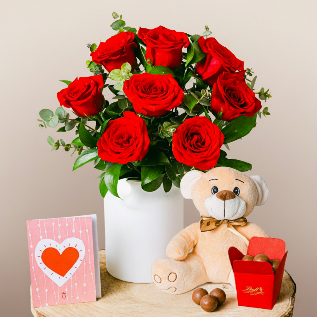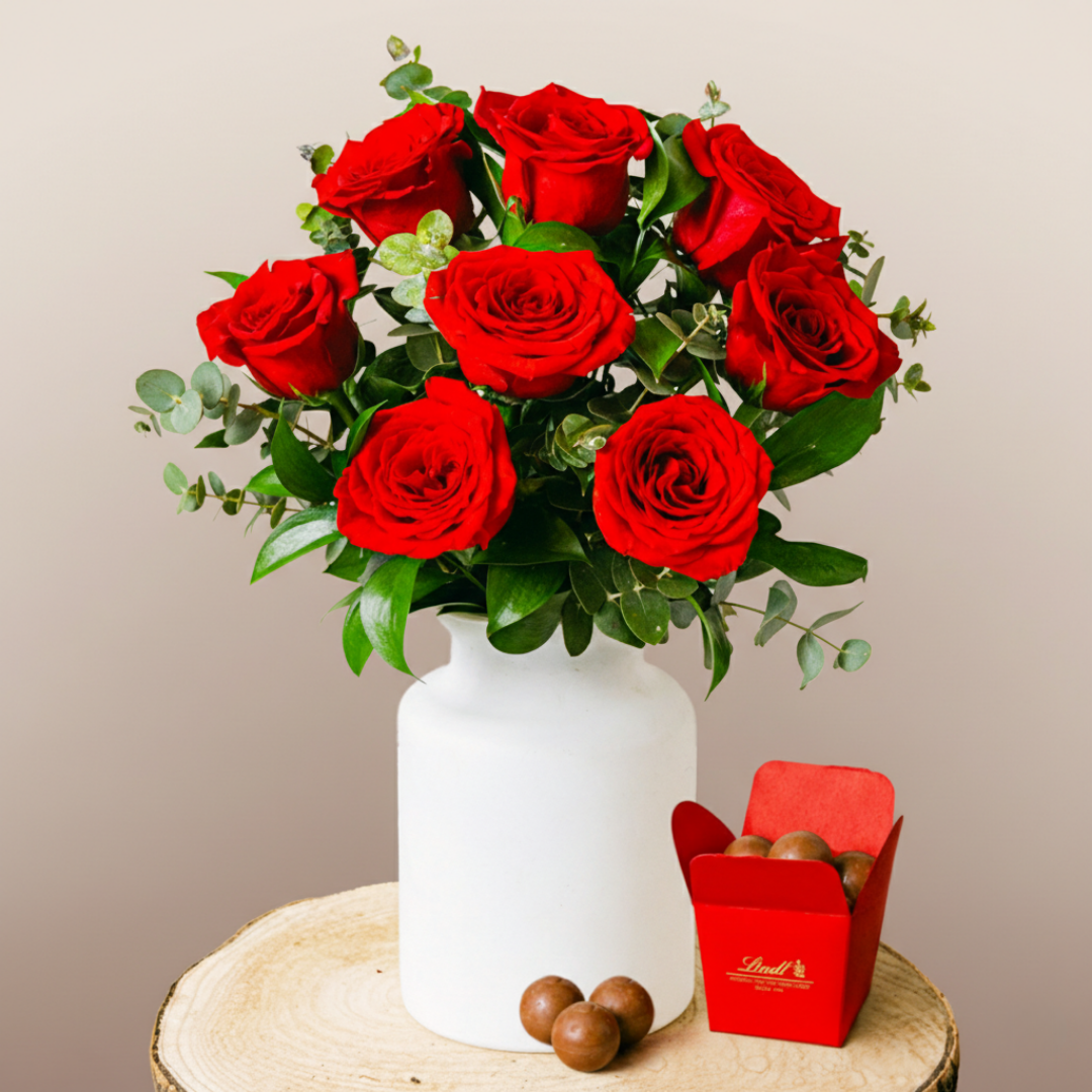 You know that person is meant for you when you continue to enjoy each outing as much as the first day you made plans. This delicate bouquet of red roses captures the essence of romance in its purest form. Each rose symbolizes a deep, sincere love filled with passion. With its vibrant color and enveloping fragrance, this bouquet is a beautiful way to express genuine feelings on any special occasion. Perfect for birthdays, anniversaries, or simply to surprise that special person in your life. Add the finishing touch to your next date with this lovely design of red roses and aspidistra. Choose any excuse you want, add this romantic detail… and enjoy!