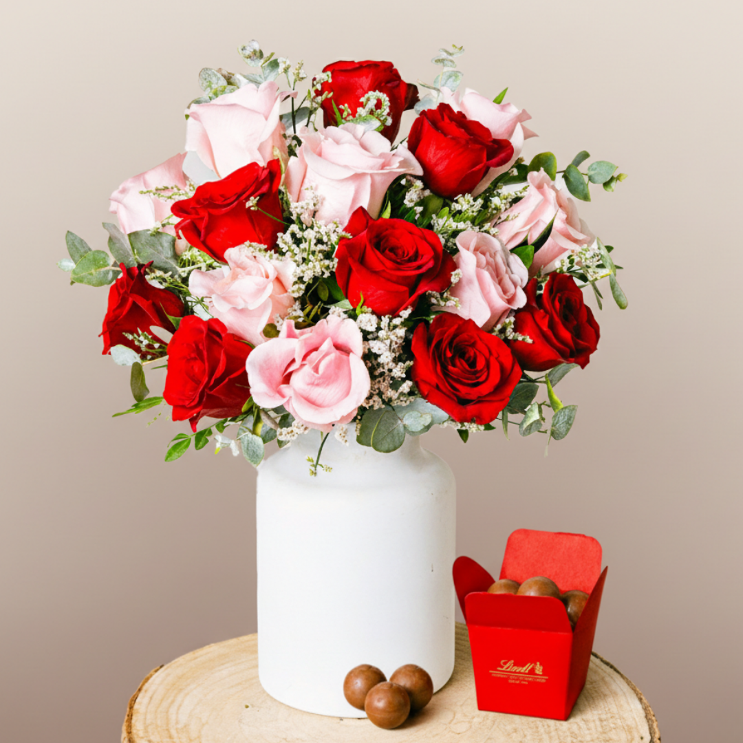 A beautiful bouquet of red and pink roses to express your love.